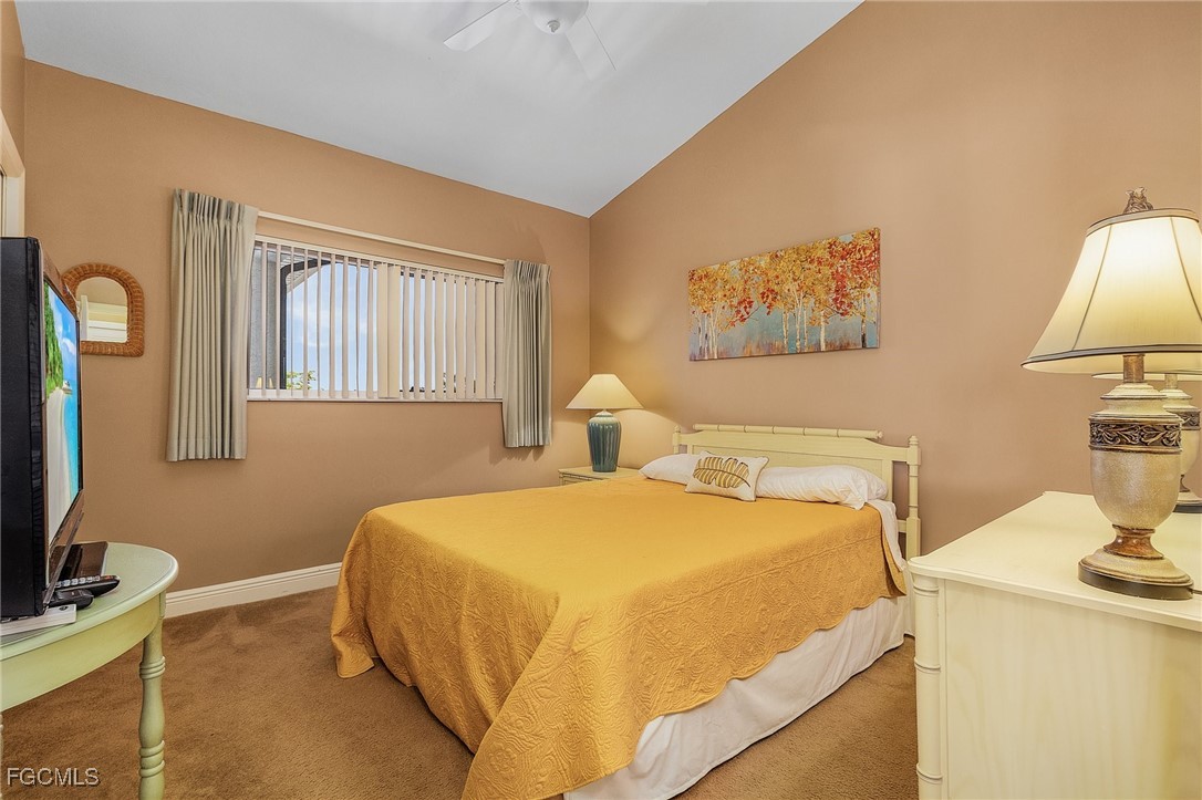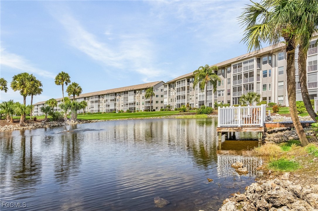 This 2BR 2 BA CORNER PENTHOUSE CONDO in Muirfield @ Golfview is Back on the Market after a little rest & relaxation. Now, it's YOUR TURN to come inside and do the same. The natural light from the extra windows, the fantastic western views over the #6 fairway, golf course and ponds, along with the vaulted ceilings give this condo the WOW FACTOR needed to enhance your escape to PARADISE! The wide baseboards accent the lovely neutral palette and 24" diagonal tile floors. The movement of the neutral granite countertops flows effortlessly and is complemented by a lovely marble backsplash. Even while standing at the kitchen sink w/under mount stainless steek sink w/gooseneck faucet one can partake of the breathtaking sunset views. Golfview Golf & Racquet Club is a bundled golf course community with a par 3 - 9 hole course that is challenging but FUN w/lighted tennis & pickleball courts for off-days. It is a community that is very active w/numerous golf, tennis, pickleball activities and it is NOT 55+. Nearby attractions include Lakes & WaKaHatchee Parks, BBMANN Performing Arts Hall & Suncoast CU Arena on FSW campus, Bell Tower Shops, Medical, Worship, Library, and loads of shopping and dining choices are within a few minutes and of course the fabulous beaches of Sanibel/Captiva & Fort Myers are just a short car ride away. No extra green or tees fees required. Reasonable HOA fees INCLUDE GOLF, water, sewer, expanded cable, WIFI, and much more! Call today for a private showing or click on the video link to take your own private 'walk-through' tour.