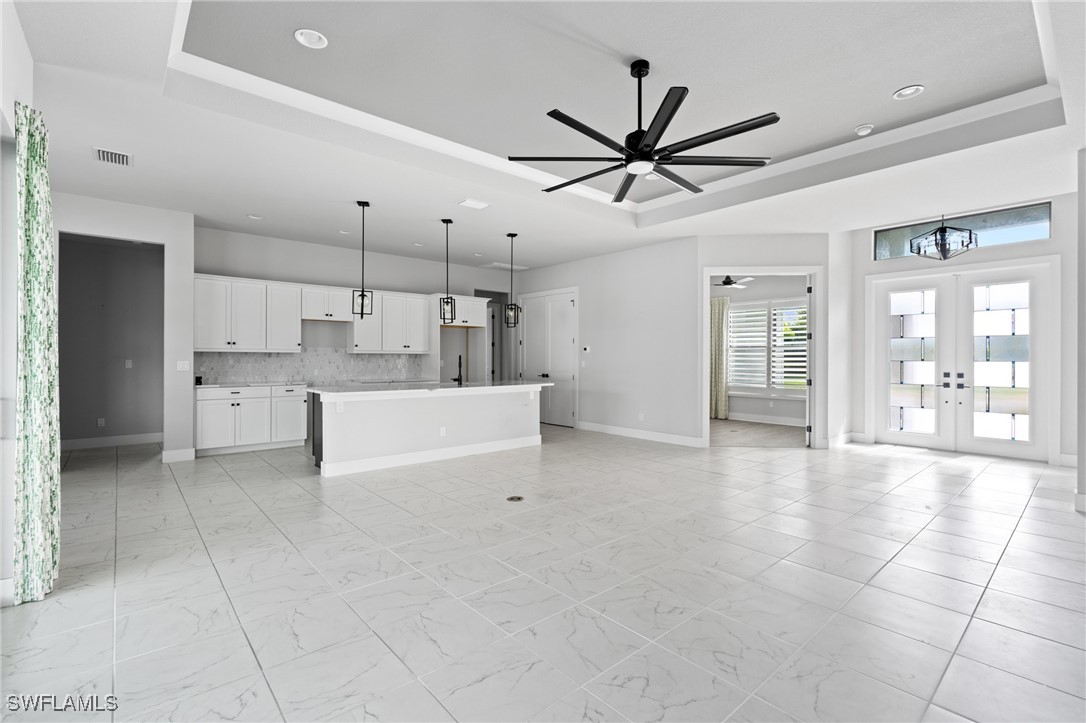 Boasting 2,161 square feet of luxurious living space and 3,340 total square feet, this property seamlessly combines elegance and practicality. From the moment you arrive, the striking exterior draws you in, while the grand covered entryway sets the stage for what lies beyond. Inside, you'll be captivated by soaring 11-foot coffered ceilings, 8-foot doors, and hurricane-impact glass throughout—delivering both style and peace of mind.