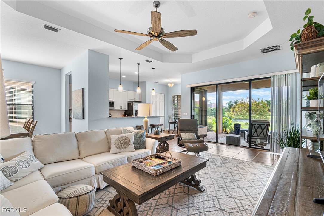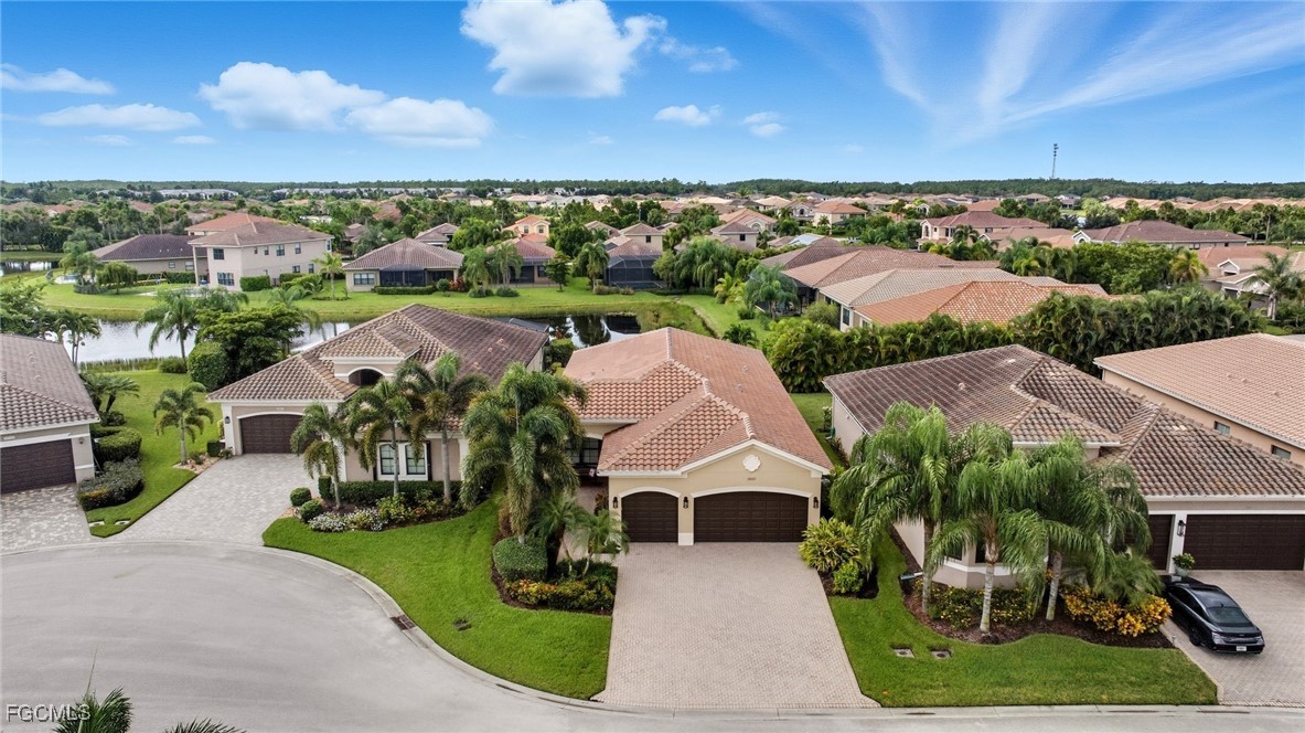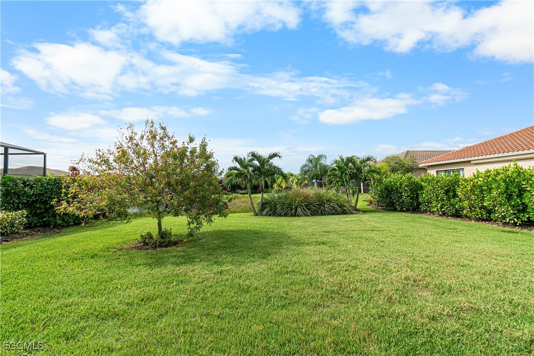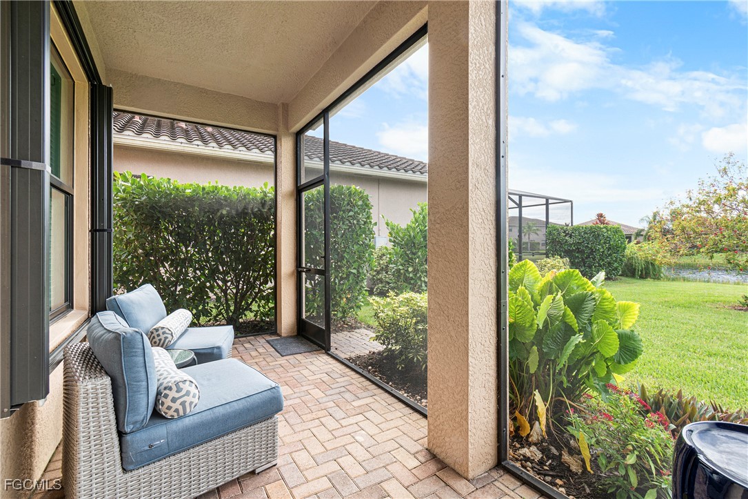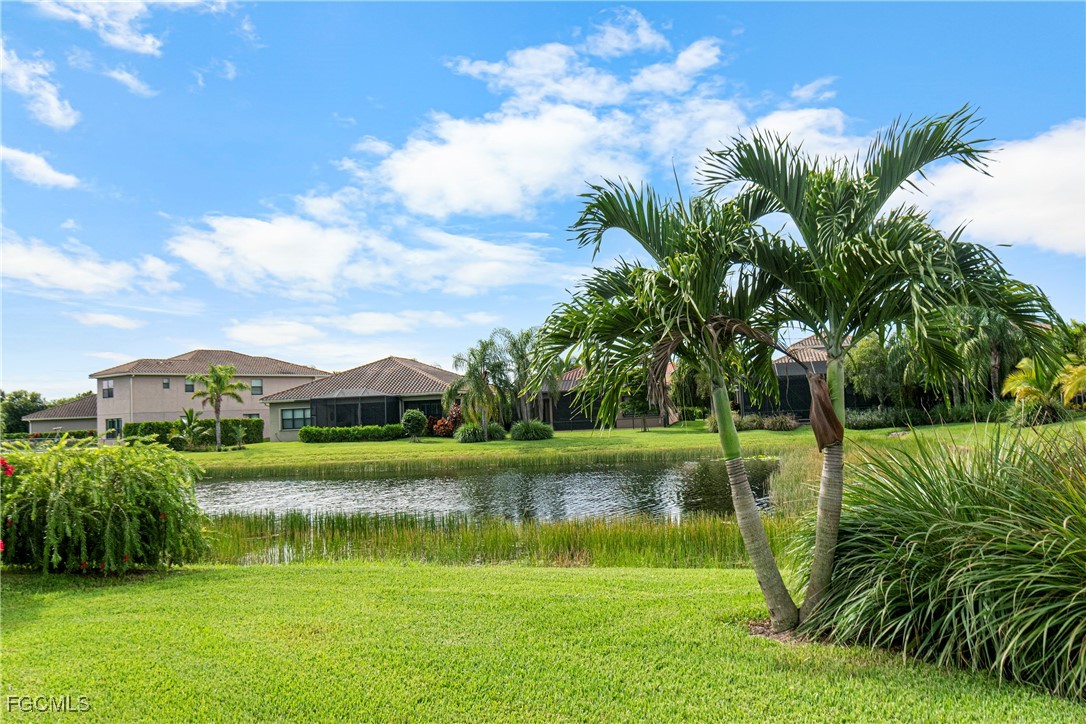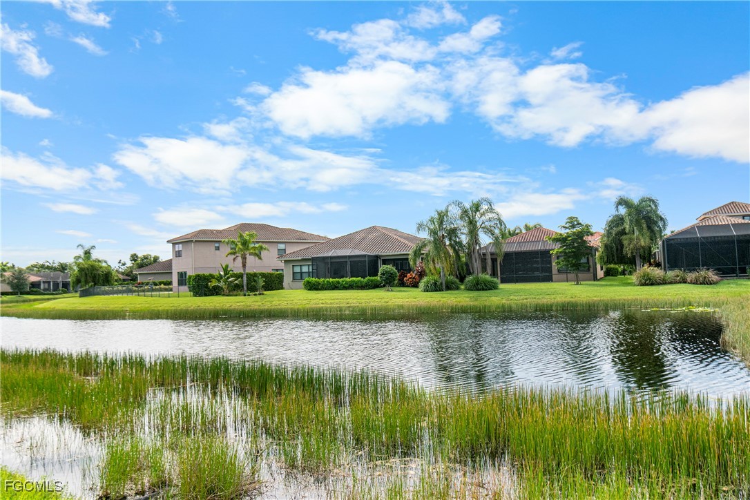 Welcome home to this stunning Grenada model by GL Homes, perfectly situated on a quiet cul-de-sac! Meticulously maintained with thoughtful upgrades, this home offers over 2,100 square feet with three bedrooms, a den, three full bathrooms, serene lake views, a rare THREE-car garage, and a long driveway for plenty of parking. Highly desirable southern exposure means the home is filled with natural light all day long. The spacious kitchen is a dream for both cooking and entertaining, featuring abundant cabinetry, a pantry, stainless steel appliances, quartz countertops, a tile backsplash, and a breakfast bar. The open layout flows seamlessly into the dining and family rooms, perfect for gatherings and everyday living. The primary suite is a peaceful retreat with dual sinks, a soaking tub, and separate shower. The split-bedroom floor plan ensures guests have privacy, while the versatile den with French doors is ideal for a home office, study, or even a fourth bedroom. Additional highlights include tile floors, engineered hardwood in the bedrooms, tray ceilings, an oversized laundry room with cabinetry and sink, accordion hurricane shutters, and a brand-new roof. Enjoy tranquil lake views from the spacious screened lanai, surrounded by lush tropical landscaping. Take advantage of the larger backyard, ideal for pets, play, or entertaining. All of this is located in Marina Bay, a resort-style community for all ages. You’ll have access to a clubhouse, fitness center, resort and lap pools, splash zone, playground, tennis, pickleball, basketball, and more. Plus, you’re just minutes from beaches, shopping, dining, entertainment, hospitals, and I-75. This home truly has it all, don’t miss your chance to make it yours!