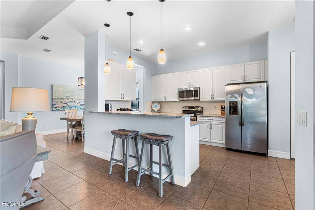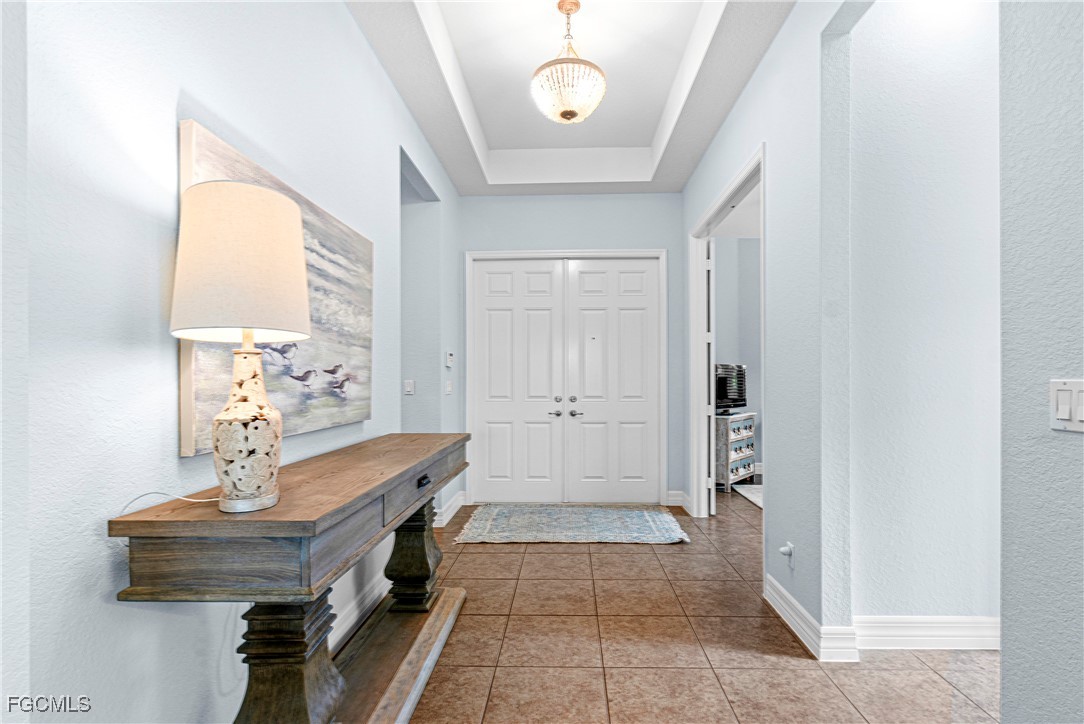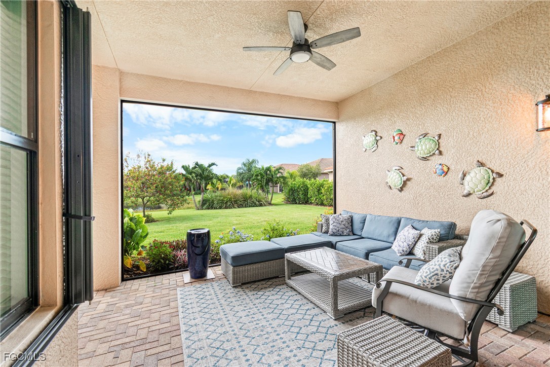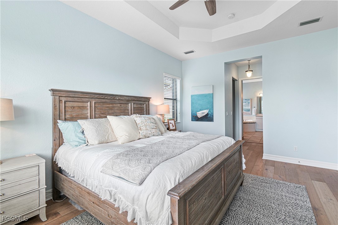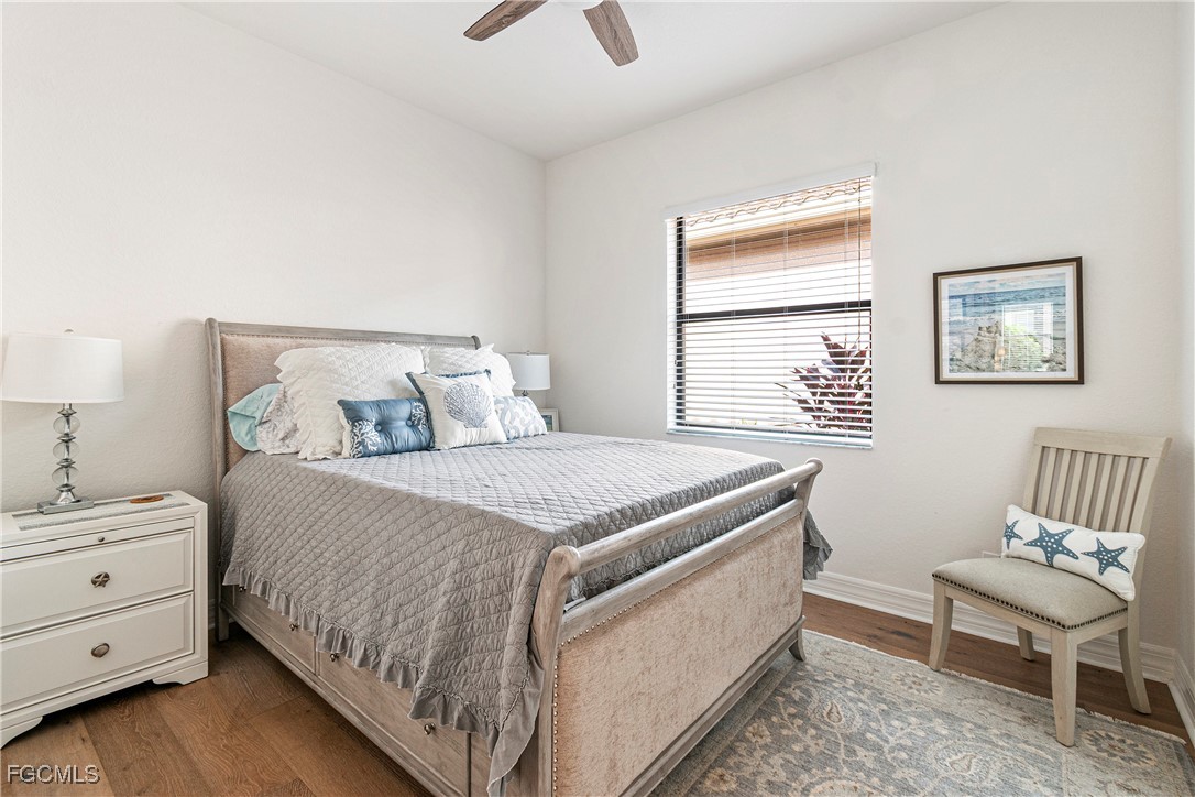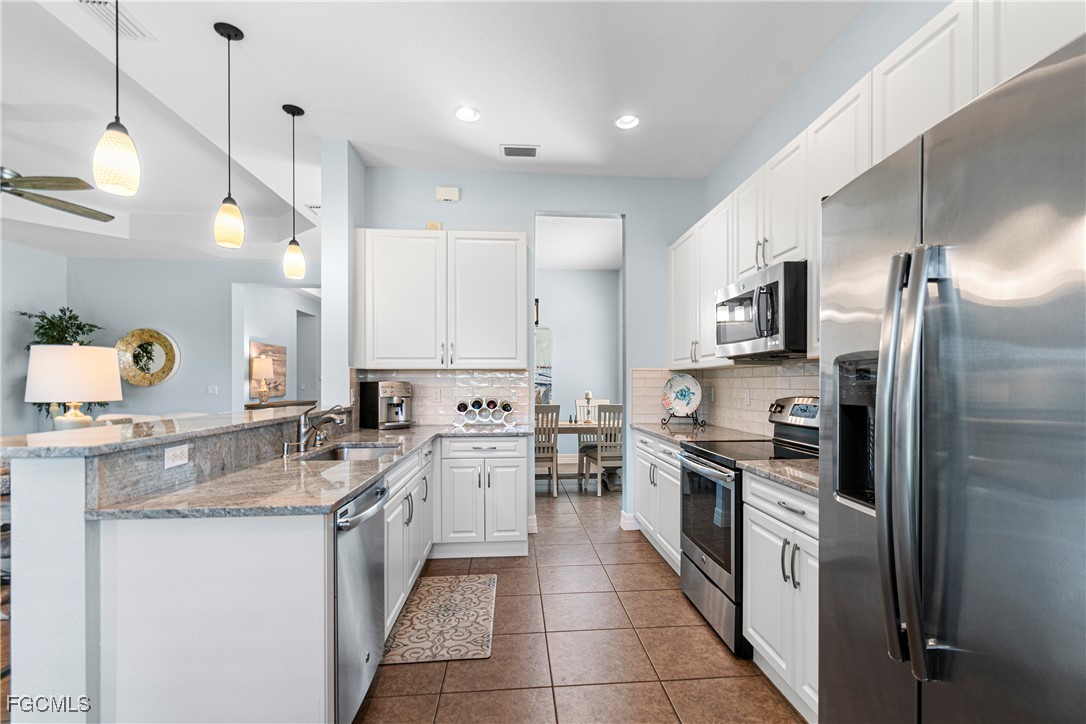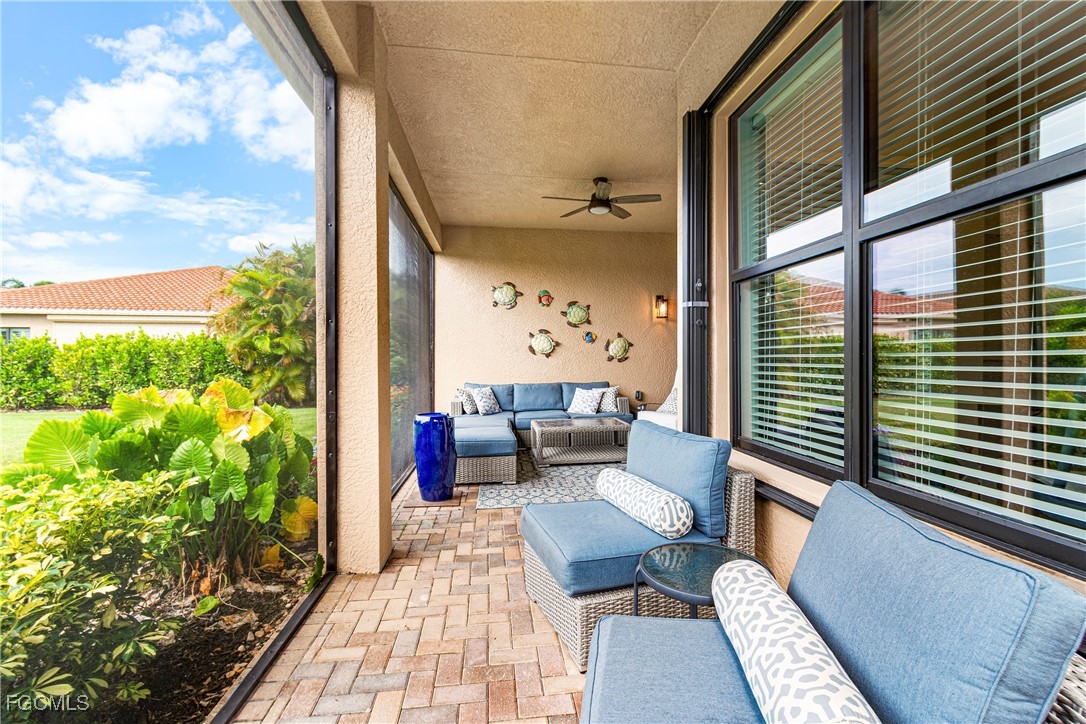 Welcome home to this stunning Grenada model by GL Homes, perfectly situated on a quiet cul-de-sac! Meticulously maintained with thoughtful upgrades, this home offers over 2,100 square feet with three bedrooms, a den, three full bathrooms, serene lake views, a rare THREE-car garage, and a long driveway for plenty of parking. Highly desirable southern exposure means the home is filled with natural light all day long. The spacious kitchen is a dream for both cooking and entertaining, featuring abundant cabinetry, a pantry, stainless steel appliances, quartz countertops, a tile backsplash, and a breakfast bar. The open layout flows seamlessly into the dining and family rooms, perfect for gatherings and everyday living. The primary suite is a peaceful retreat with dual sinks, a soaking tub, and separate shower. The split-bedroom floor plan ensures guests have privacy, while the versatile den with French doors is ideal for a home office, study, or even a fourth bedroom. Additional highlights include tile floors, engineered hardwood in the bedrooms, tray ceilings, an oversized laundry room with cabinetry and sink, accordion hurricane shutters, and a brand-new roof. Enjoy tranquil lake views from the spacious screened lanai, surrounded by lush tropical landscaping. Take advantage of the larger backyard, ideal for pets, play, or entertaining. All of this is located in Marina Bay, a resort-style community for all ages. You’ll have access to a clubhouse, fitness center, resort and lap pools, splash zone, playground, tennis, pickleball, basketball, and more. Plus, you’re just minutes from beaches, shopping, dining, entertainment, hospitals, and I-75. This home truly has it all, don’t miss your chance to make it yours!