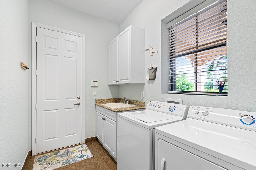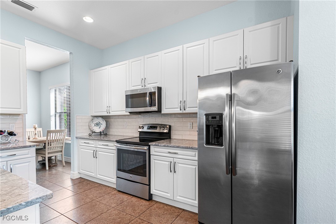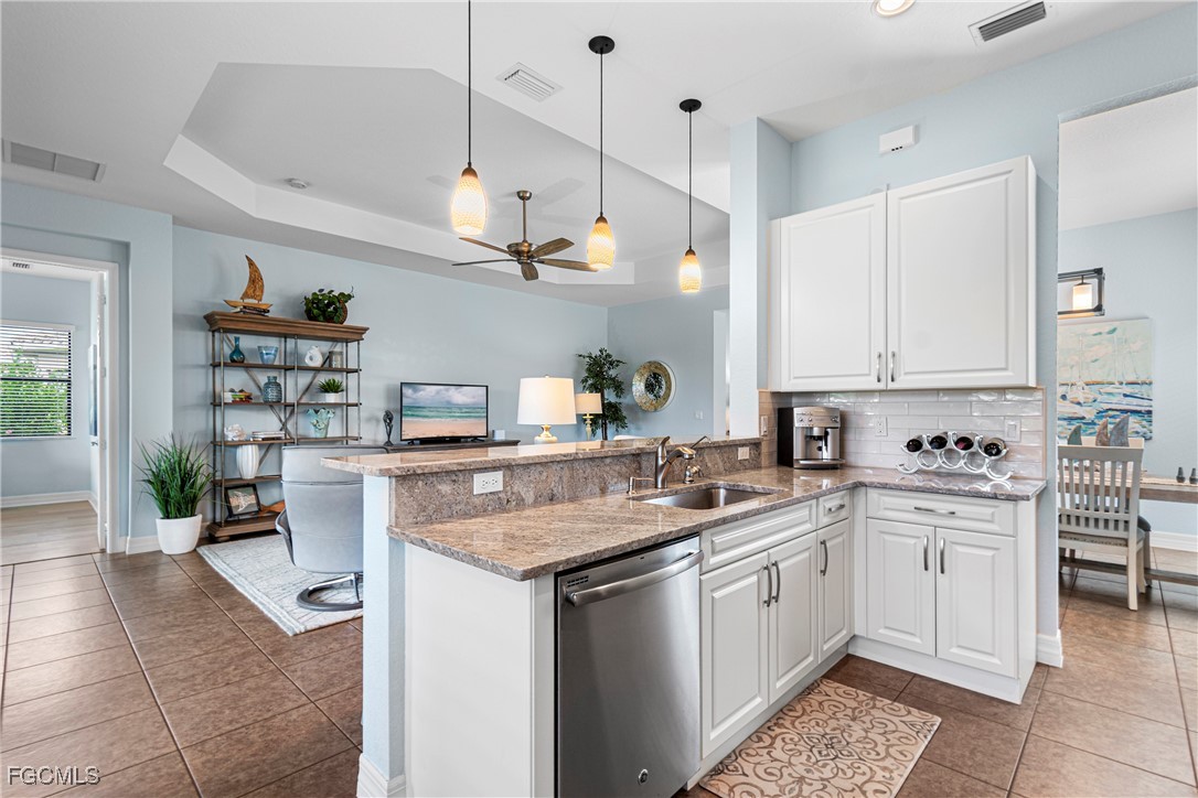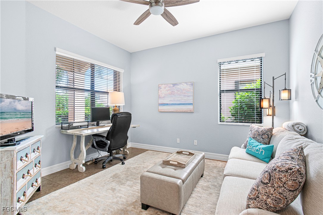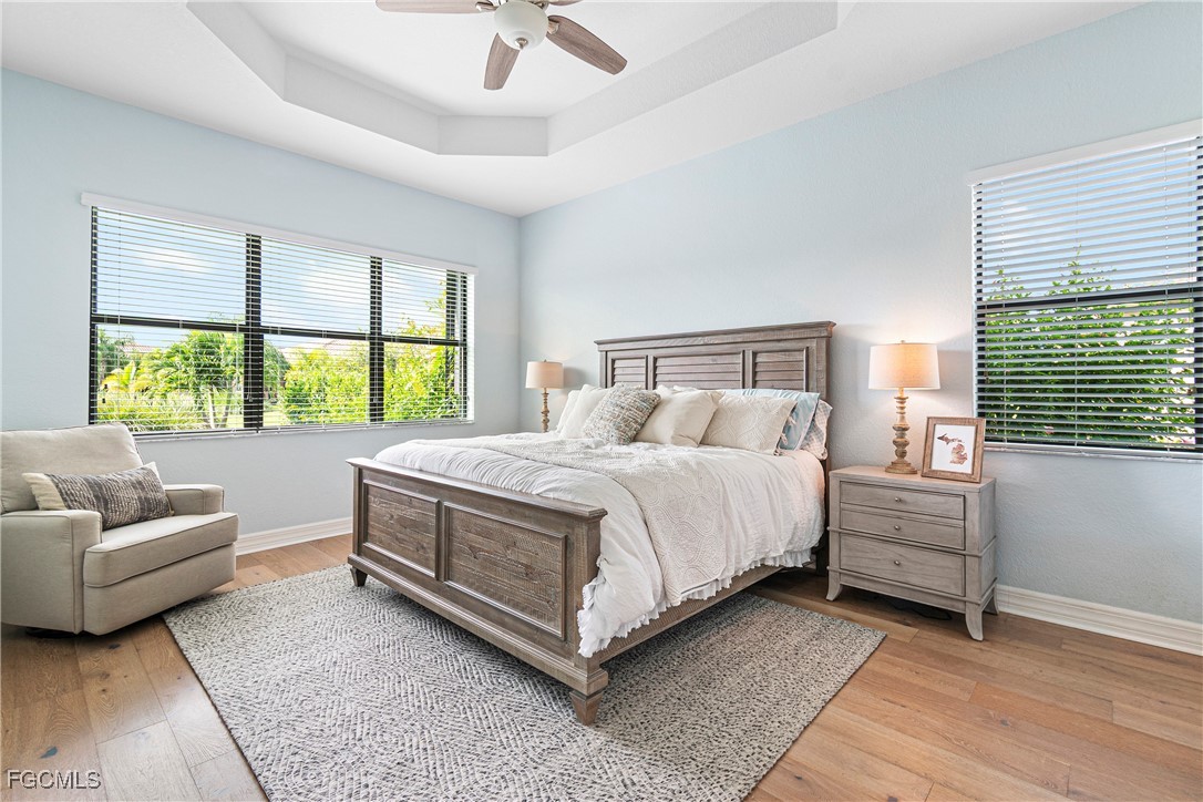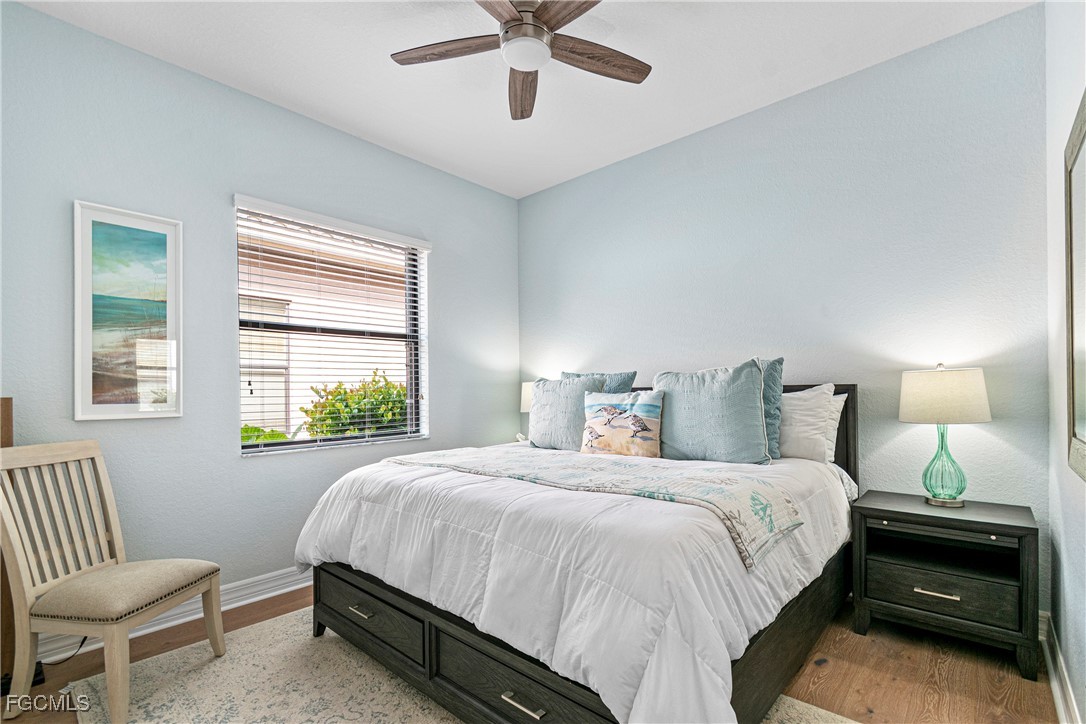 Welcome home to this stunning Grenada model by GL Homes, perfectly situated on a quiet cul-de-sac! Meticulously maintained with thoughtful upgrades, this home offers over 2,100 square feet with three bedrooms, a den, three full bathrooms, serene lake views, a rare THREE-car garage, and a long driveway for plenty of parking. Highly desirable southern exposure means the home is filled with natural light all day long. The spacious kitchen is a dream for both cooking and entertaining, featuring abundant cabinetry, a pantry, stainless steel appliances, quartz countertops, a tile backsplash, and a breakfast bar. The open layout flows seamlessly into the dining and family rooms, perfect for gatherings and everyday living. The primary suite is a peaceful retreat with dual sinks, a soaking tub, and separate shower. The split-bedroom floor plan ensures guests have privacy, while the versatile den with French doors is ideal for a home office, study, or even a fourth bedroom. Additional highlights include tile floors, engineered hardwood in the bedrooms, tray ceilings, an oversized laundry room with cabinetry and sink, accordion hurricane shutters, and a brand-new roof. Enjoy tranquil lake views from the spacious screened lanai, surrounded by lush tropical landscaping. Take advantage of the larger backyard, ideal for pets, play, or entertaining. All of this is located in Marina Bay, a resort-style community for all ages. You’ll have access to a clubhouse, fitness center, resort and lap pools, splash zone, playground, tennis, pickleball, basketball, and more. Plus, you’re just minutes from beaches, shopping, dining, entertainment, hospitals, and I-75. This home truly has it all, don’t miss your chance to make it yours!