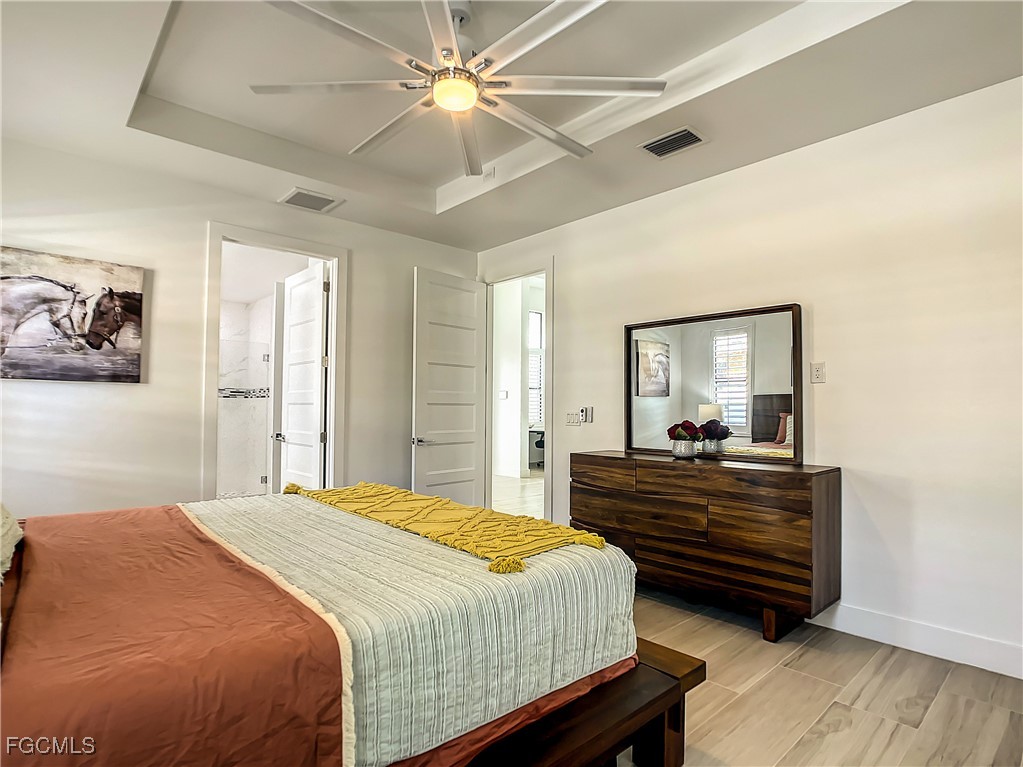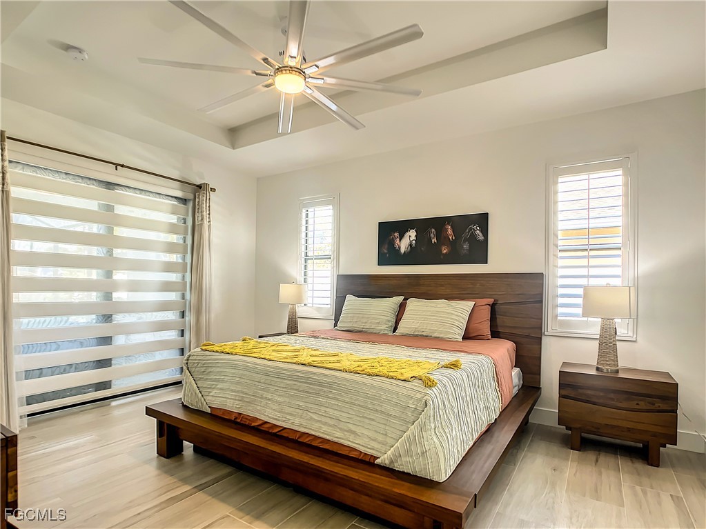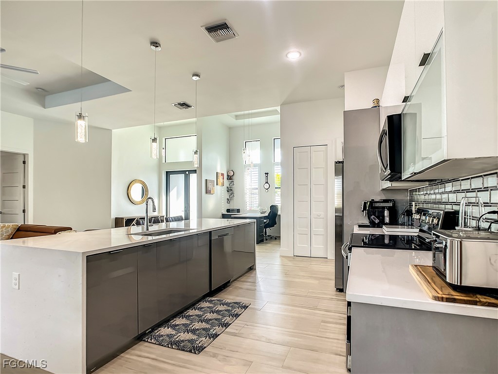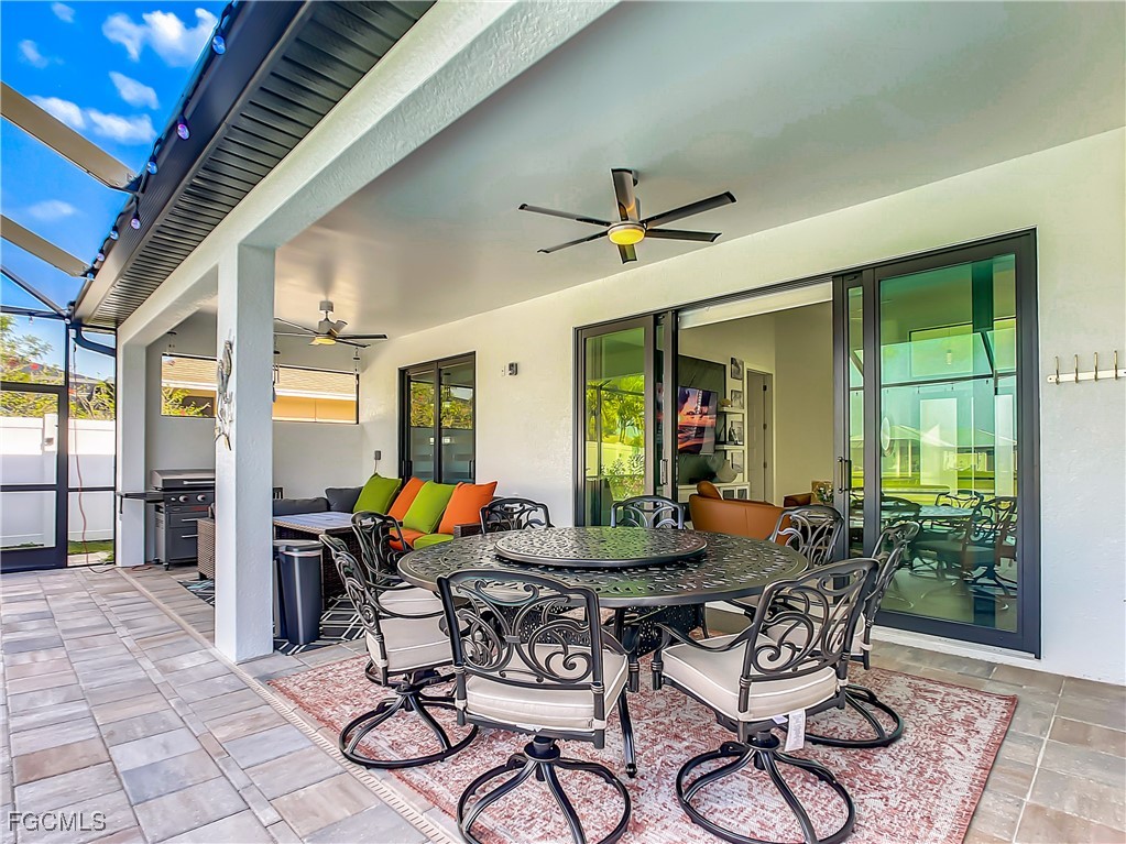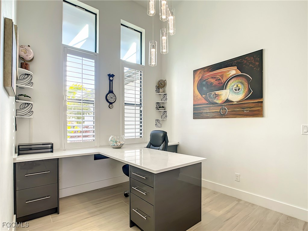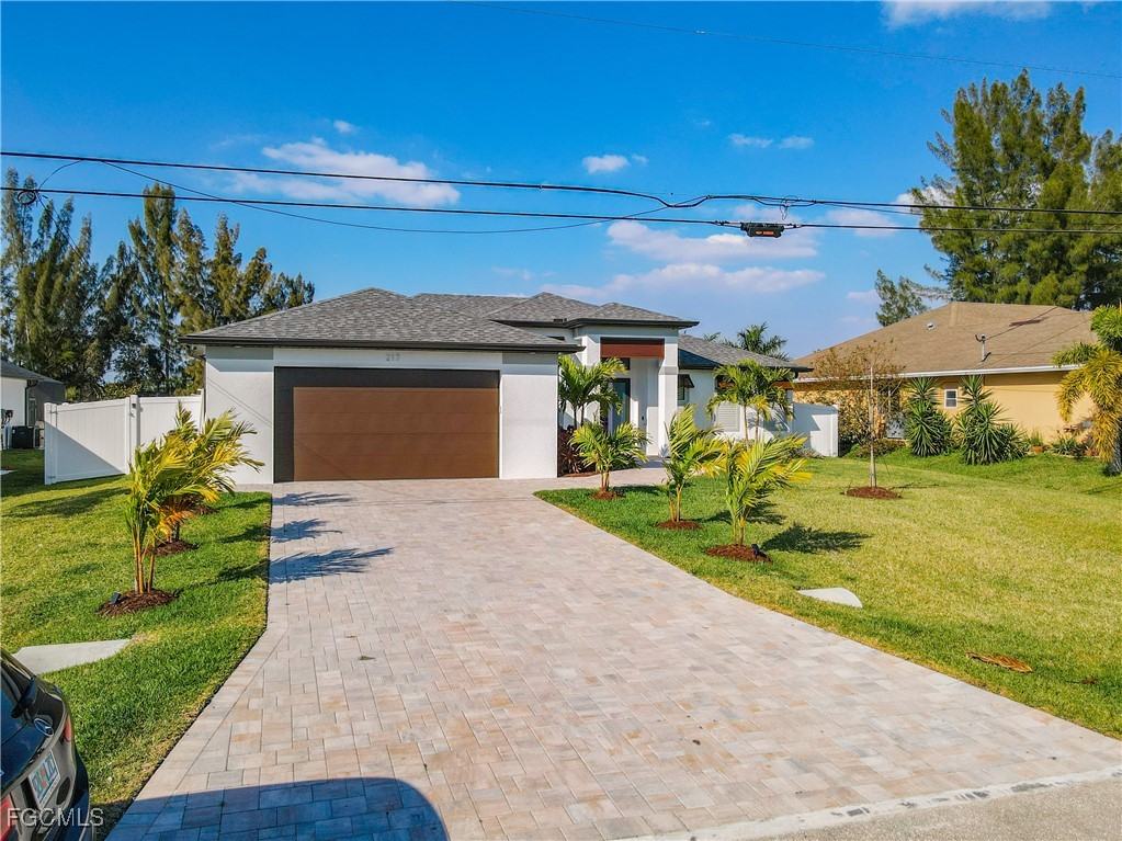 Ever dreamed of owning a waterfront home in SW Cape Coral? This stunning 4/3 pool home is equipped with all the modern amenities and luxurious features you could desire. Step inside, you'll be captivated by the fine touches and attention to detail. The kitchen boasts European-style cabinets and exquisite quartz countertops, creating a sleek and sophisticated atmosphere. 12-foot ceilings add an extra touch of grandeur, while the tile plank flooring throughout the home exudes elegance. Hurricane impact windows, ensuring your peace of mind. Plantation shutters add a touch of classic charm to every room. A built-in home office, allowing you to separate work and personal life. Built-in wet bar and modern entertainment center provide the perfect setting for hosting guests. Custom ceiling fans are installed throughout the home, ensuring optimal airflow. The heated saltwater pool offers a refreshing oasis for relaxation and enjoyment. One highlight of the property is the concrete dock, which overlooking the canal. Imagine sipping your morning coffee while taking in the serene beauty of the water. Don't miss out on the opportunity to make this dream home yours.