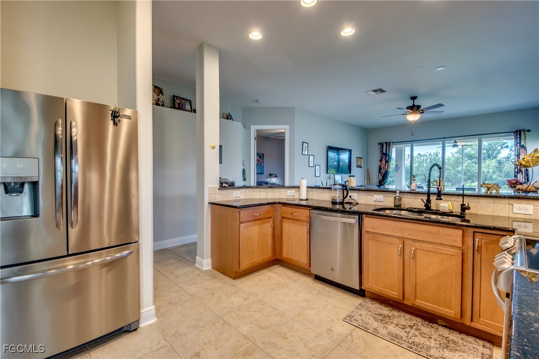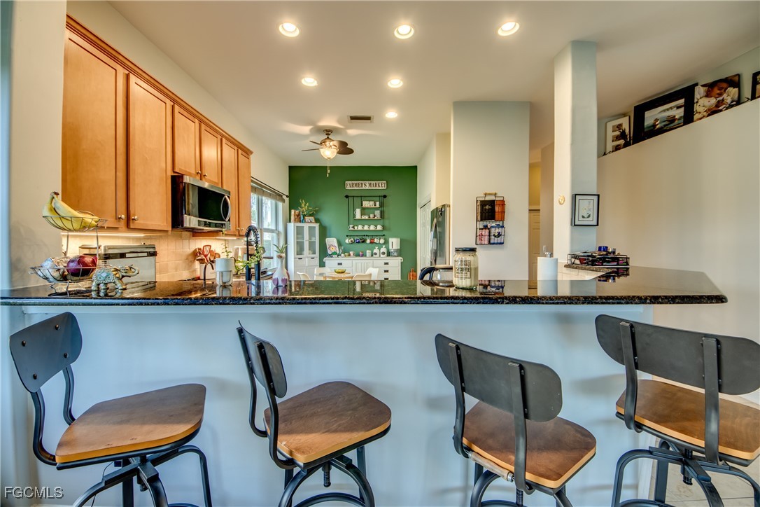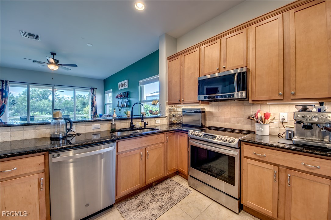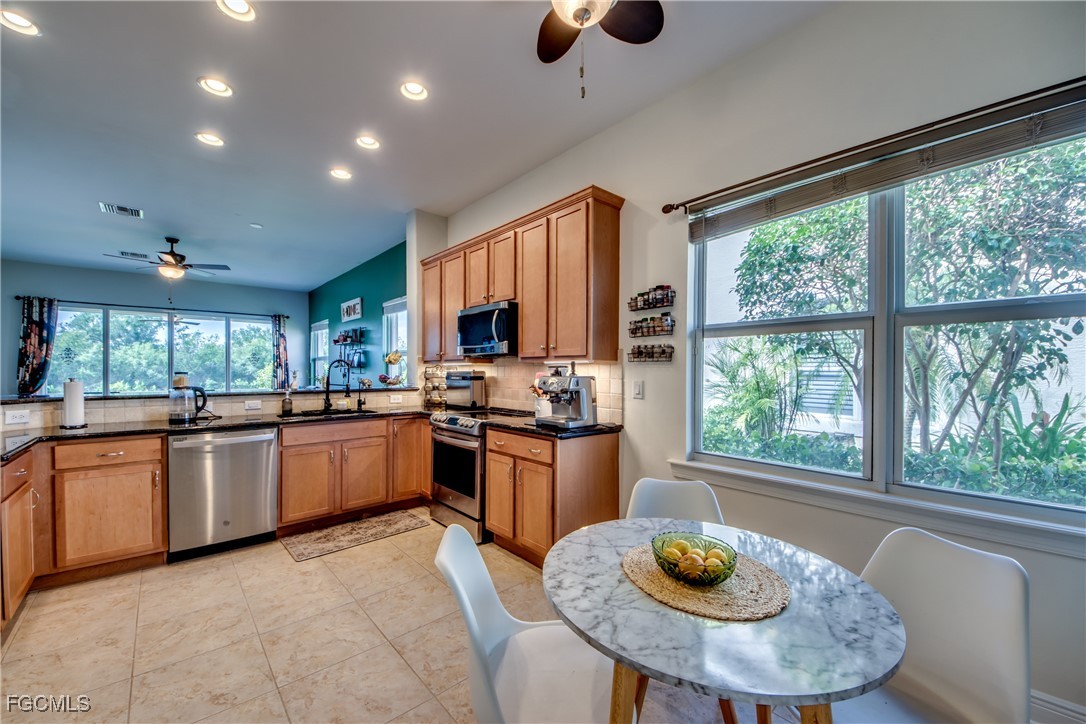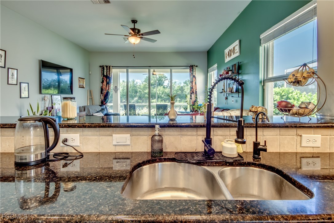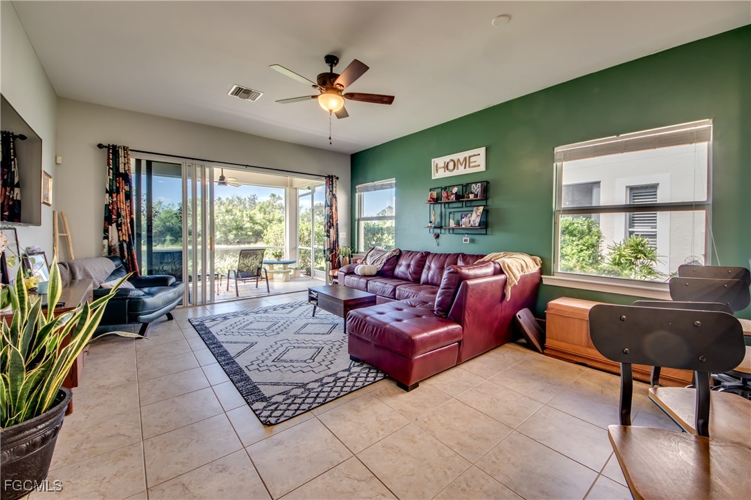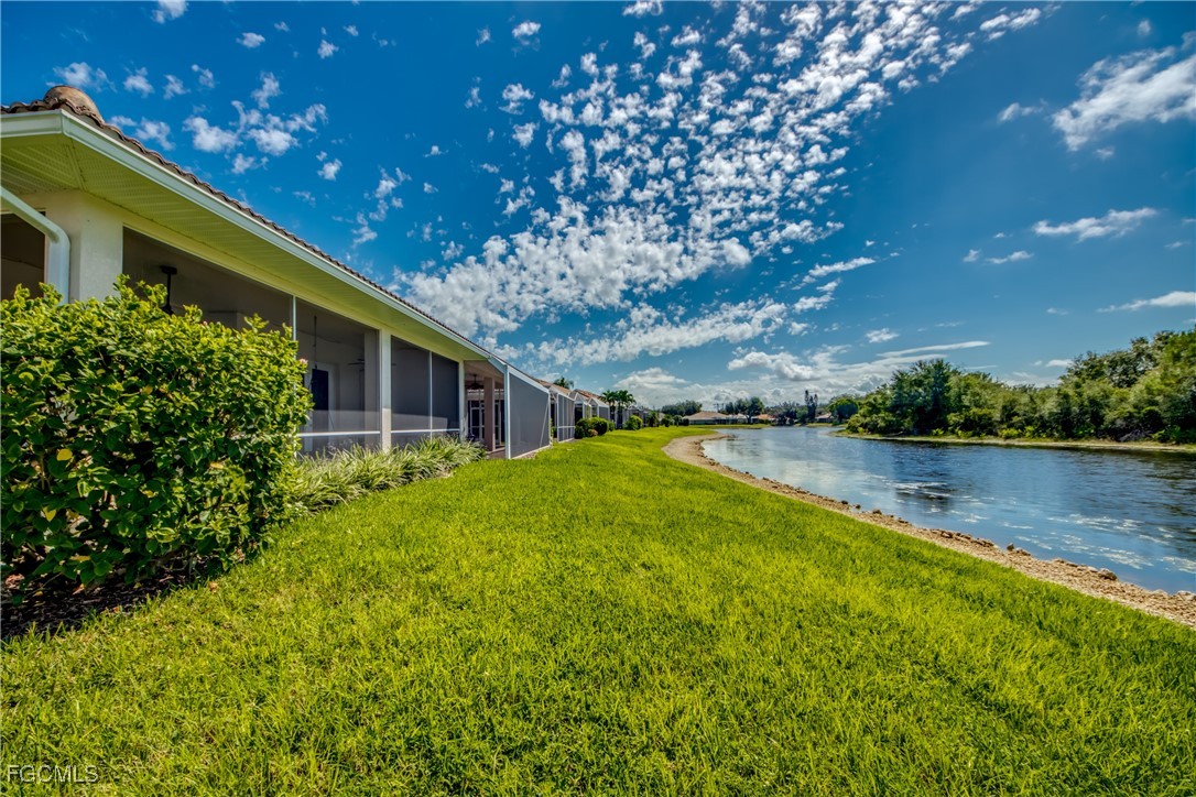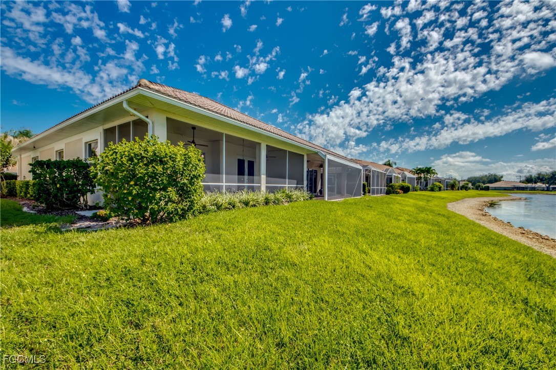 This hidden gem is the largest unit in Devonshire Lakes. This 3/2 is spacious and bright with amazing 180 degree lake and preserve views which exude comfort and relaxation. This home has impact resistant windows and doors, stainless steel appliances and granite counter tops. This roomy 1618 sq ft unit with extended lanai was owner designed and built in 2008. The lakefront views of deer, otter, and water fowl from the great room and the master bedroom are spectacular. The master is not only spacious but also has an unexpectantly enormous closet. The heated community pool is just a few doors away. The 2008 construction means many years remaining on the tile roof plus a new water heater 2025. No flood insurance needed in Gateway.