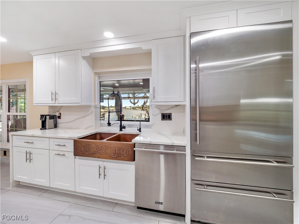 A Home That Stands Apart. This property has been thoughtfully updated in 2023, blending high quality finishes with long lasting improvements. The first floor is finished with Italian tile while the entire second story carries a light, beach style ceramic wood flooring that gives the home a bright and inviting feel. The kitchen and bathrooms have all been upgraded with quartz countertops, new cabinetry, and designer sinks. Two of the three bathrooms have been completely redone and the main bath offers a true spa experience. Fresh paint inside and out creates a clean modern look. Every practical upgrade has been addressed. The roof carries a 15 year color warranty. All windows, doors, and garage doors are hurricane rated. A whole home Generac generator with an in ground propane tank is serviced yearly, as are the air conditioning units. The home also includes blown in attic insulation and a water filtration system with sediment removal both outside and under the kitchen sink. Outdoor living is a highlight. The lanai has all new landscape view screening and the pool has been resurfaced with a newer pump. The driveway has been retiled, the dock and lift are new, and the yard has been landscaped with a new fence in place. The Viking appliance package stays with the home along with the washer and dryer, garage refrigerator and freezer, and the lanai bar table with stools. A gas line has also been run to the garage for a future pool heater replacement. This home has been updated with care and attention to detail, giving you peace of mind and a lifestyle ready to enjoy from the day you move in.