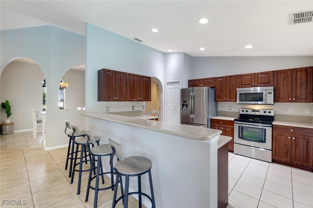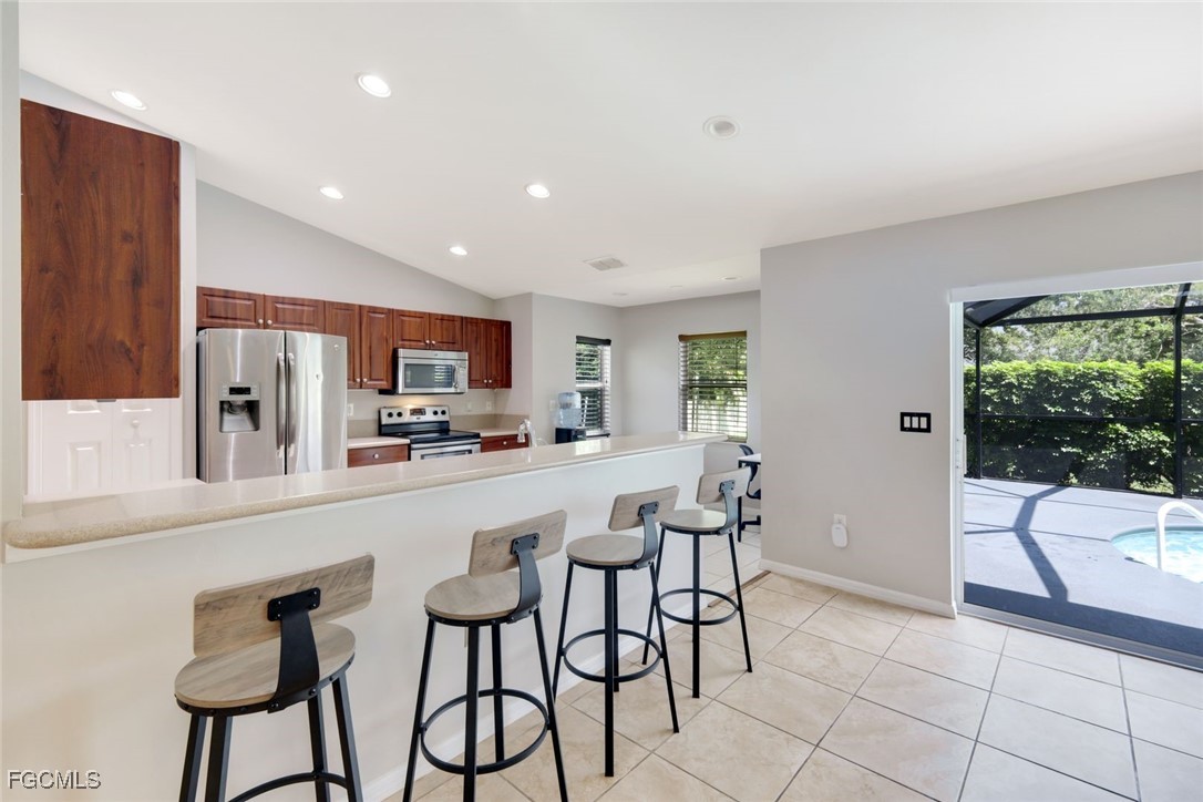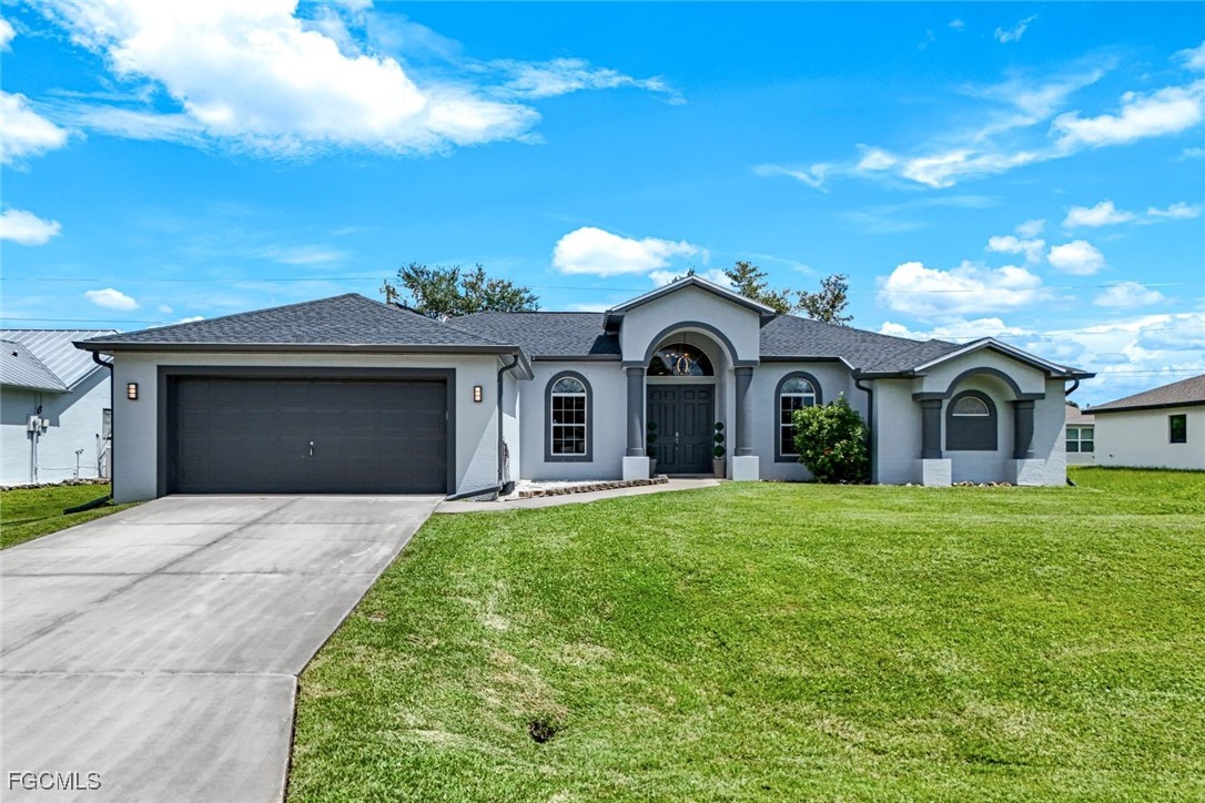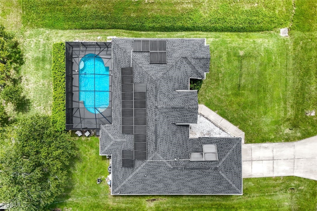 Welcome to your new home in highly desirable Northeast Cape Coral! This spacious 3-bedroom + den, 2-bathroom pool home offers the perfect blend of comfort and Florida lifestyle living. With over 2,000 sq ft., this open floor plan is ideal for entertaining, while the private screened-in pool area provides a relaxing retreat for family and friends. Enter the house through elegant double entrance doors, into the large and appealing living area with sliding doors to the lanai and pool area. With a versatile den that can serve as a home office, guest space, or playroom, this property adapts to your needs. The kitchen features large countertops for durability, pantry, stainless steel appliances and large breakfast nook as well as a family size dining room. The primary suite has two walk-in closets, in master bathroom the focal point is a gorgeous and large tub, with a large walk around shower behind it. It also has 2 separate vanities/sinks and a private toilet closet. Outside you will find your own tropical oasis and will enjoy the best sunrises that Florida has to offer. This incredible home also offers a brand-new roof, solar panels that greatly reduce your monthly expenses, new well pump, new pool pump and new cartridge for filter and an UV filter for the AC. The house has a security ADT alarm system and the front door with a code panel and hurricane shutters for safety. No Flood Insurance Required!!!! Do not miss this opportunity on this amazing home, starting the next chapter in your life.