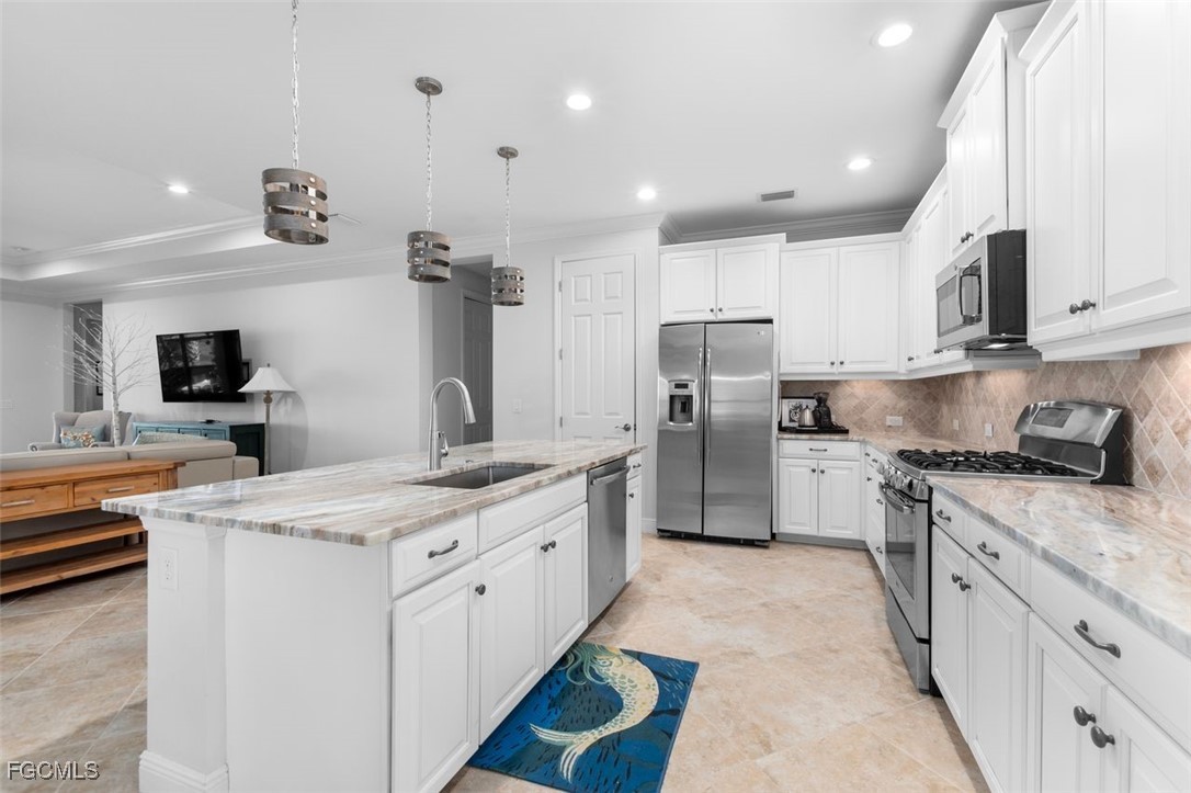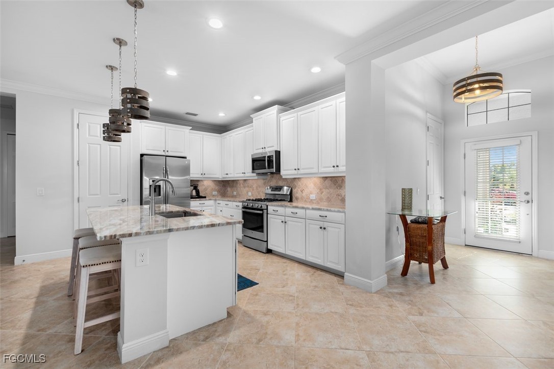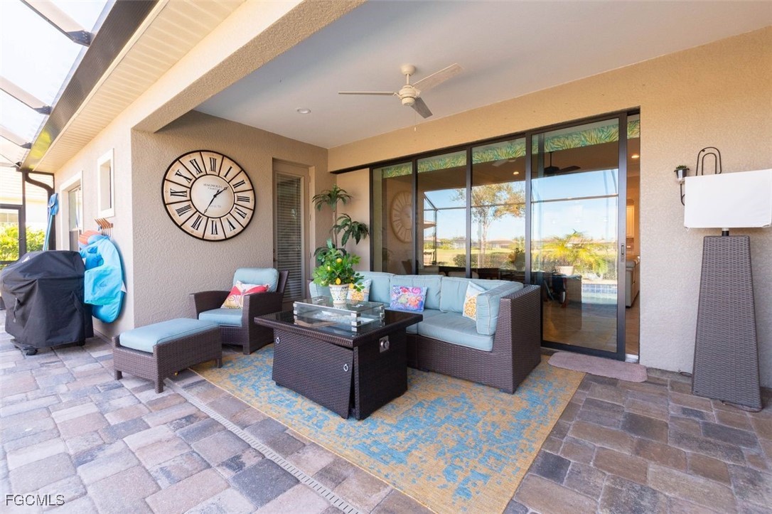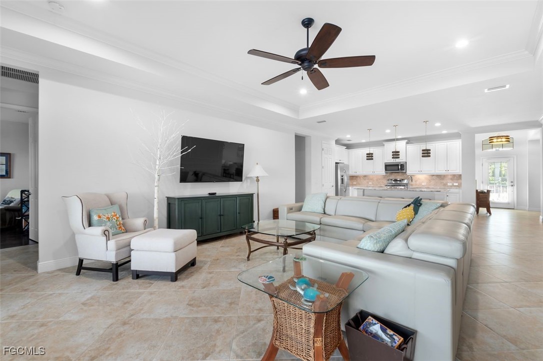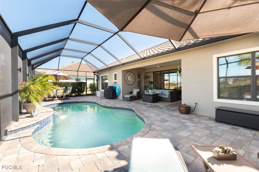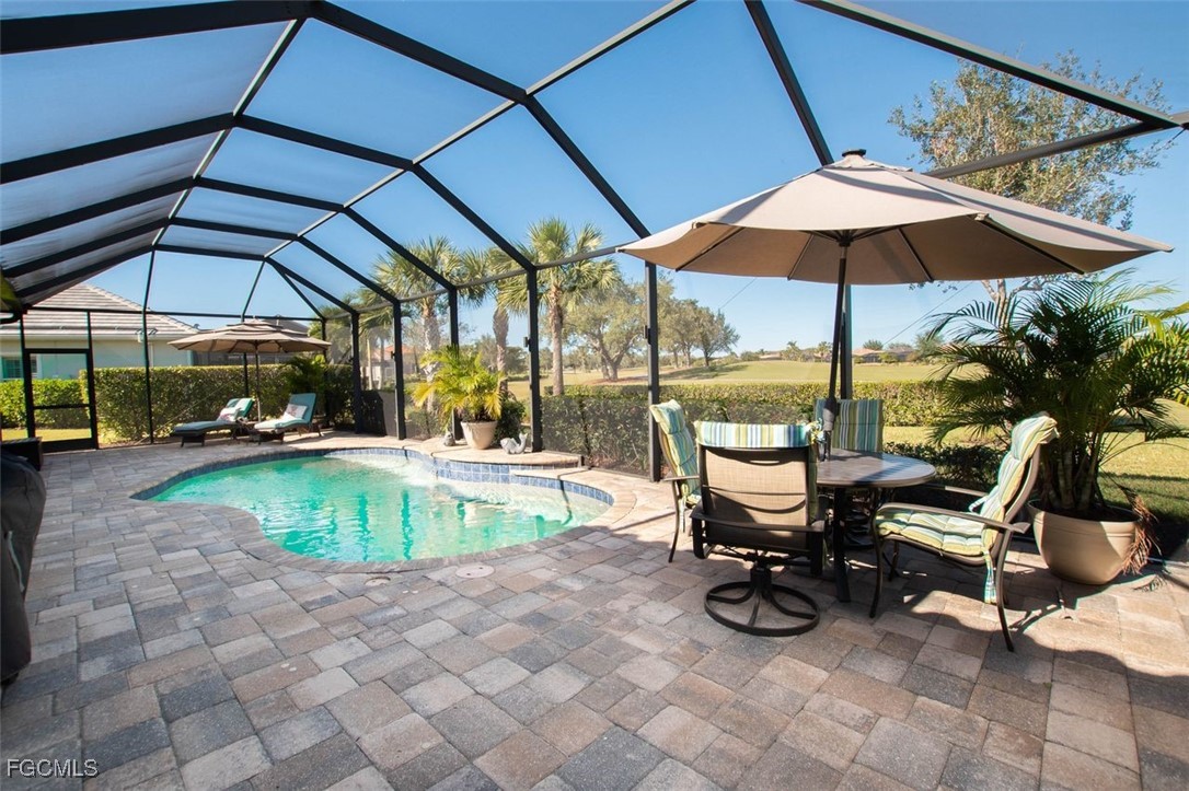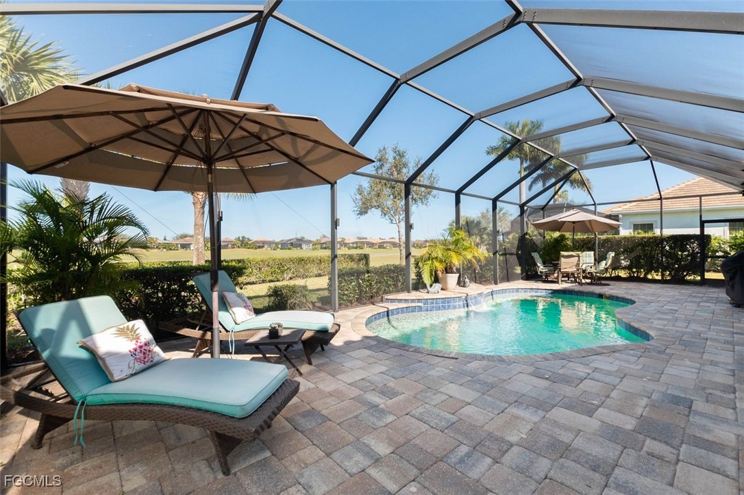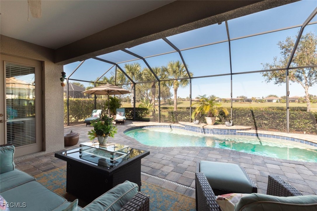 Highly maintained Arthur Ruthenberg pool home featuring over 2400 sq ft under air. This beauty features a three (3) car attached garage with an epoxy floor and extra storage, a renovated kitchen with Quartz counters and stainless steel appliances, a separate sitting room and a wide open floor plan. The view has a northern exposure of the golf course and fresh water lake is spectacular. This home is being offer furnished and has newer furniture, barely used, and is included in the purchase price. The owner put a lot of money into this house with full intent on staying there forever, but heath issues have interfered in their plan. Verandah has created a wonderful lifestyle with two 18-hole championship golf courses, tennis courts, a state-of-the-art fitness center, a community pool, pickleball, and bocce ball courts....there's even a Doggy Park for man's best friend. For those who love outdoor activities, how about venturing out and KAYAKING on the adjacent ORANGE RIVER, or going for a nice bike ride or walk on the 9+ miles of trails? Verandah is conveniently located to downtown Ft Myers, the Caloosahatchee River and both the Ft Myers and Punta Gorda Airports.