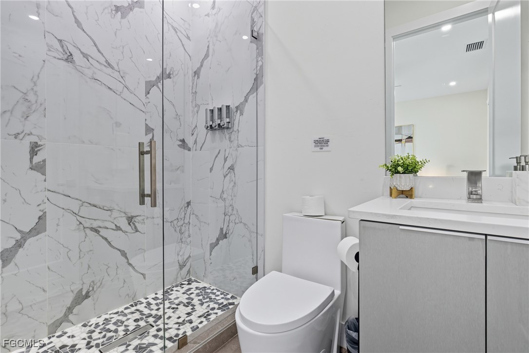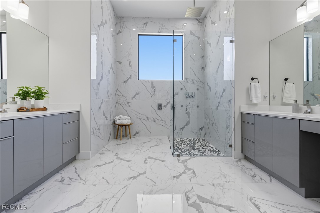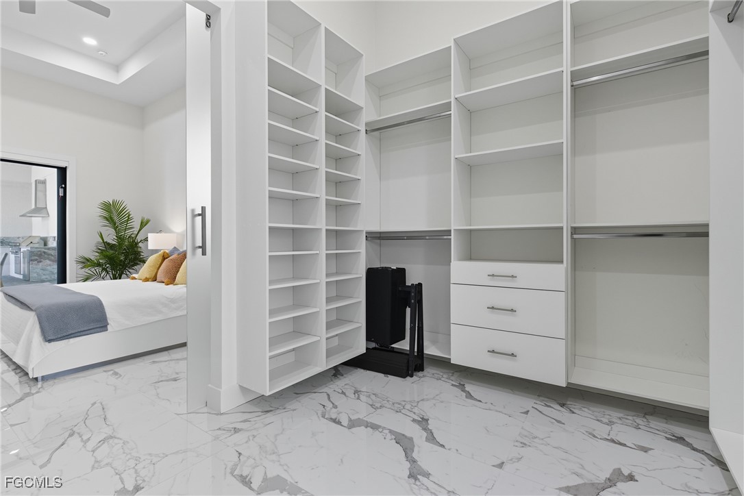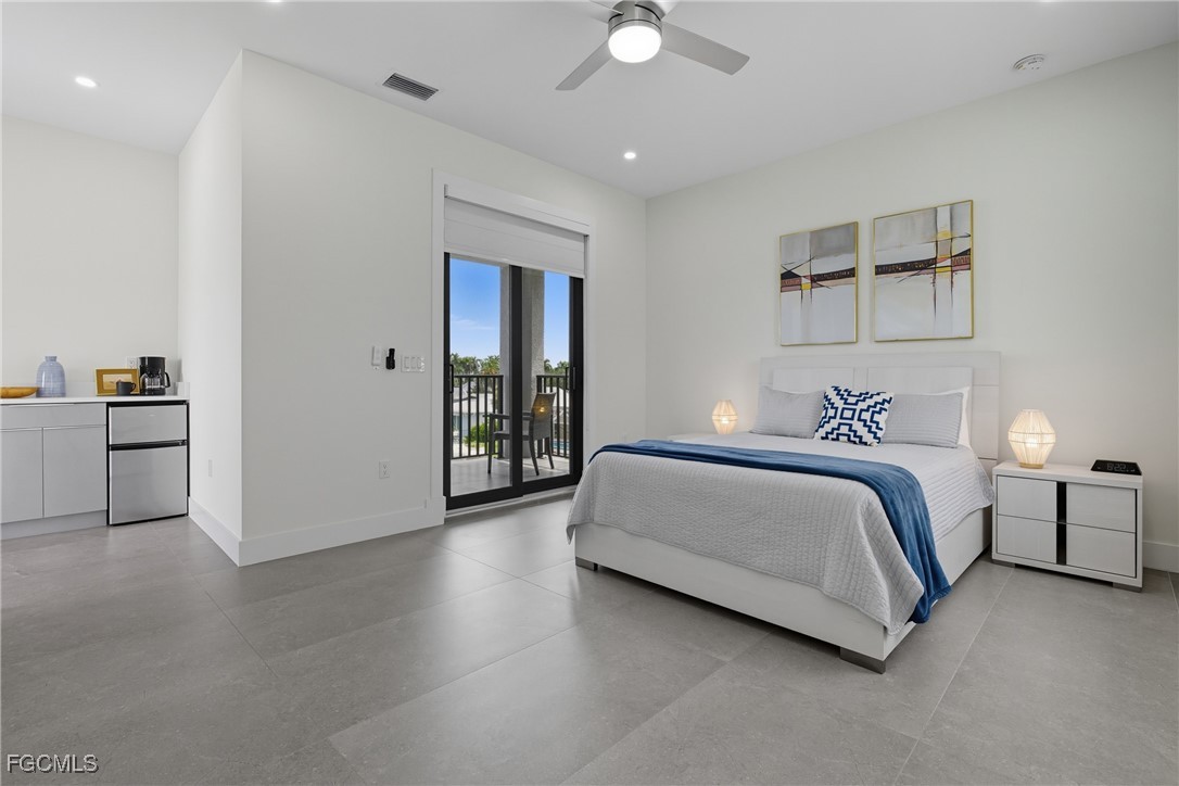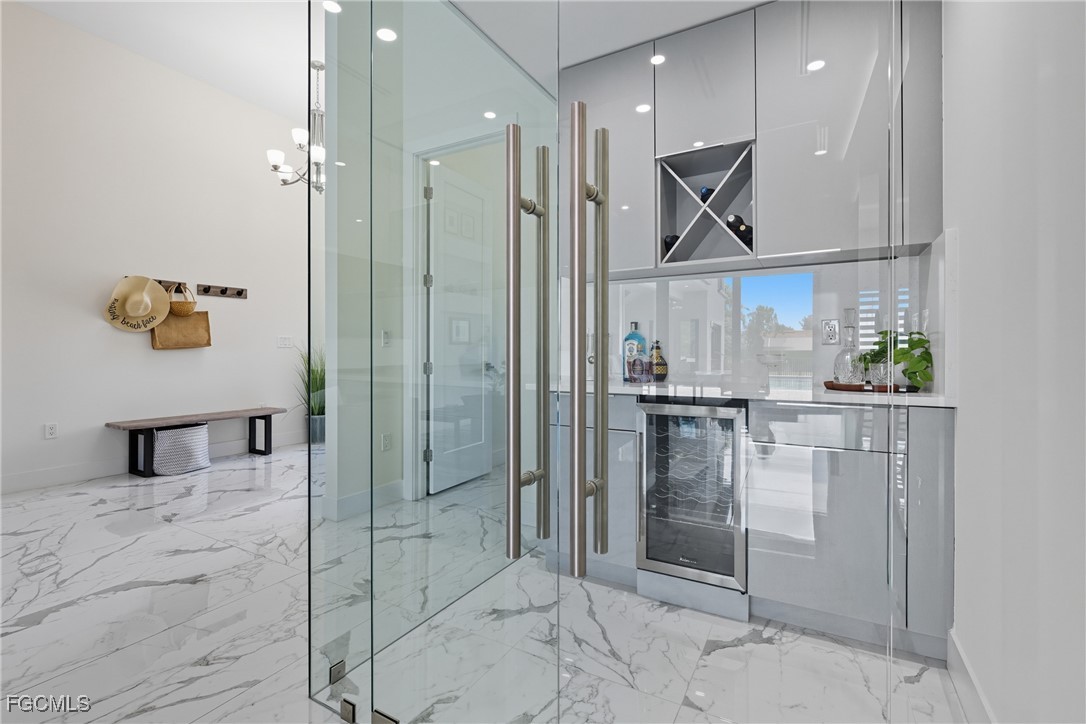 Inside, the home is contemporary yet comfortable, with an open-concept layout, soaring ceilings, impact windows, and a wine room ready for uncorking. The owner’s suite comes with a massive walk-in closet that feels more like its own zip code. With 5 bedrooms total — including a full guest house setup with efficiency kitchen — there’s room for everyone.