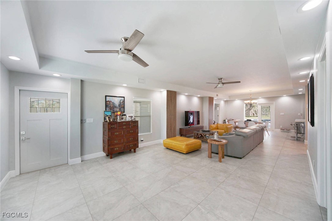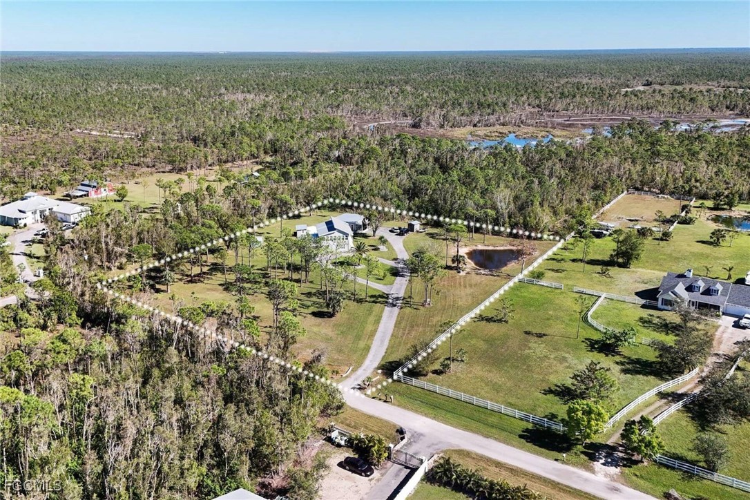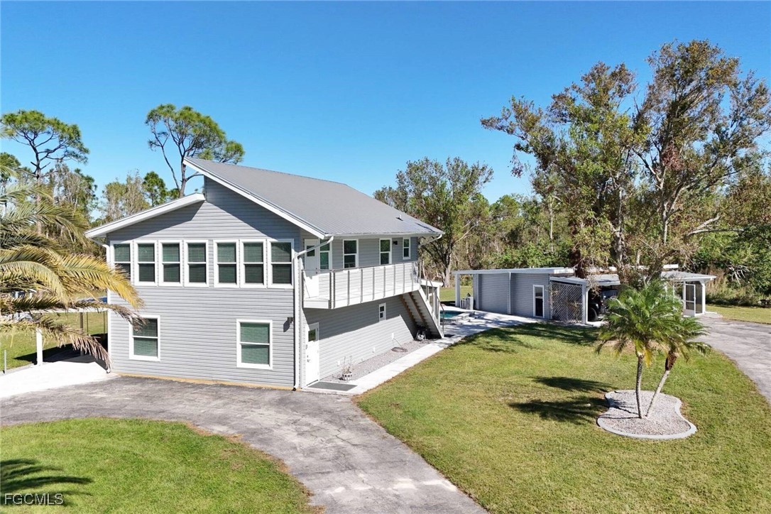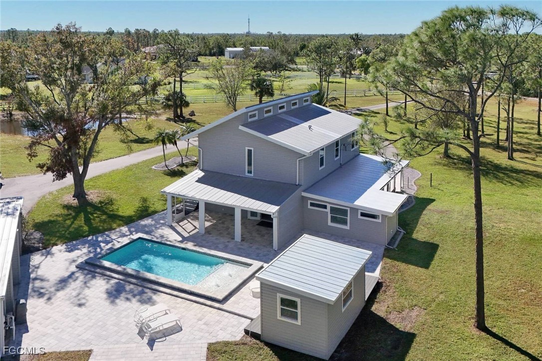 Wow! One kind of an estate on 2.66 acres with 2 homes and a saltwater pool. Discover this beautifully renovated 2- story house (2552sqft) plus a separate guest house (770sqft ). Perfect for extended family, guests, or income potential. The main house features: modern tile and wood- look vinyl floors. New Shaker kitchen cabinets with quartz counters and high-end appliances. Completely updated bathrooms with tile showers and glass doors. Extra large living room with stunning views to the pool, nature and the lake. Enjoy your private outdoor oasis: Large saltwater pool with sundeck and paver patio (approx.2500sqft).Pool house and additional shed . All new plumbing, electrical, impact windows and doors, metal roofs, and more. Remodeled inside and out (not storm damage-related). The property is zoned AG2. Bring your horses, animals, or even run you business from home. Located in unincorporated Lee County (lower taxes and fewer restrictions) with a Cape Coral address. Dream big with space, privacy, and endless possibilities. Contact today to schedule a private showing.