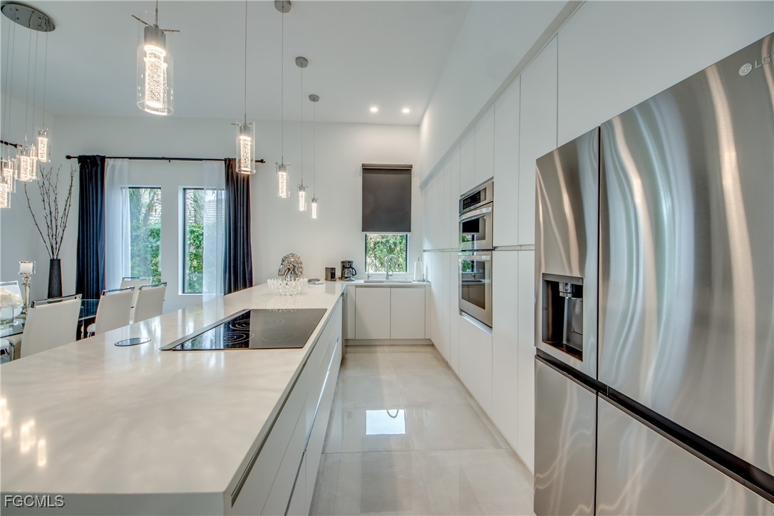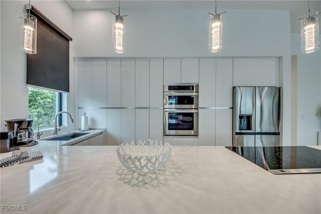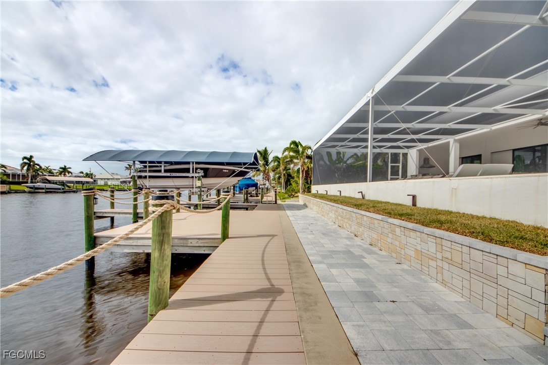 Located in the heart of SW Cape Coral, this modern 2 story home redefines luxury living with its striking contemporary design. Situated on the 200' wide Miranda Canal, the home boasts a breathtaking southern exposure, accentuating the high-end finishes that are meticulously integrated throughout the space. The open-concept layout promotes a seamless flow from room to room, creating an inviting ambiance ideal for entertaining friends and family. The Italian-quality kitchen with a white quartz waterfall island serves as the centerpiece of this exquisite home, designed for the culinary enthusiast and ready to host unforgettable gatherings. The home features two master suites, offering unparalleled comfort and privacy. The suite on the second floor showcases a private balcony that overlooks the extra wide gulf access canal, providing a stunning backdrop for morning coffee or evening sunsets. A second master suite with its own patio creates a cozy retreat for guests, complemented by two additional guest suites that ensure a peaceful night’s rest for all visitors. With 4 bedrooms, 4 bathrooms, a powder room and generous walk-in closets with custom shelving, this residence is as functional as it is beautiful, meeting the needs of today’s discerning homeowners. Adding to the property’s allure is a newly constructed PVC boat dock with a huge sitting area and a canopy , capable of accommodating boats up to 30 feet and 10k lb capacity. The integrated outdoor kitchen features elegant countertops a bar, wine cooler, built-in grill and bar sink, while the spacious pool, complete with a spa, oversized sun ledge and ivory travertine decking , transforms the outdoor space into a tranquil oasis. More features of this stunning property include 2 AC units (zoned), custom LED accents through-out, Lutron light switches, LED smart mirrors, smart water closets, epoxy garage flooring, smooth interior wall finish, smooth exterior stucco and much more. This home was professionally furnished and decorated and can be purchased Turnkey. Please check out Virtual Tour!