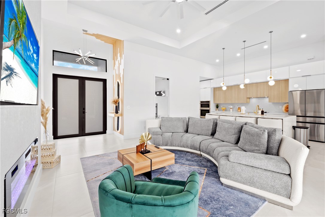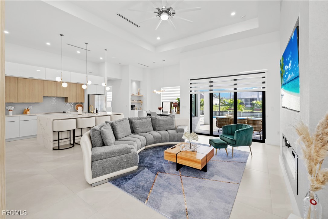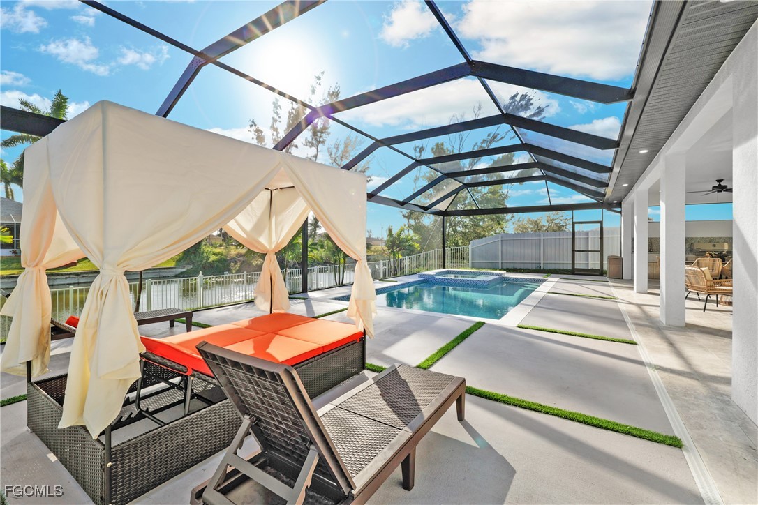 Beautiful Waterfront this spectacular POOL HOME located in the desirable area of SW Cape Coral ,The open concept offers 1931 sq.ft of fabulous living area, tray ceilings, HURRICANE IMPACT DOORS & WINDOWS, custom contemporary cabinetry, quartz countertops, zebra blinds with privacy , . TILE THROUGHOUT! Paver driveway & pool deck. When you view the pictures you will see all the upgrades this new home has to offer . Large paved lanai area , a pool cage has fabulous picture window for unobstructed water views. AMAZING LANDSCAPING! . Spacious family room with feature wall & fireplace. East Exposure for sunsets & afternoon sunlight on the Resort Pool Spa and with a salt system, and sun shelf for sunbathing, BOATERS very close to Matlacha for wet & dry boat storage, boat rentals, restaurants, dining, events. Just enough room to start a family or to retire to with all the extra storage