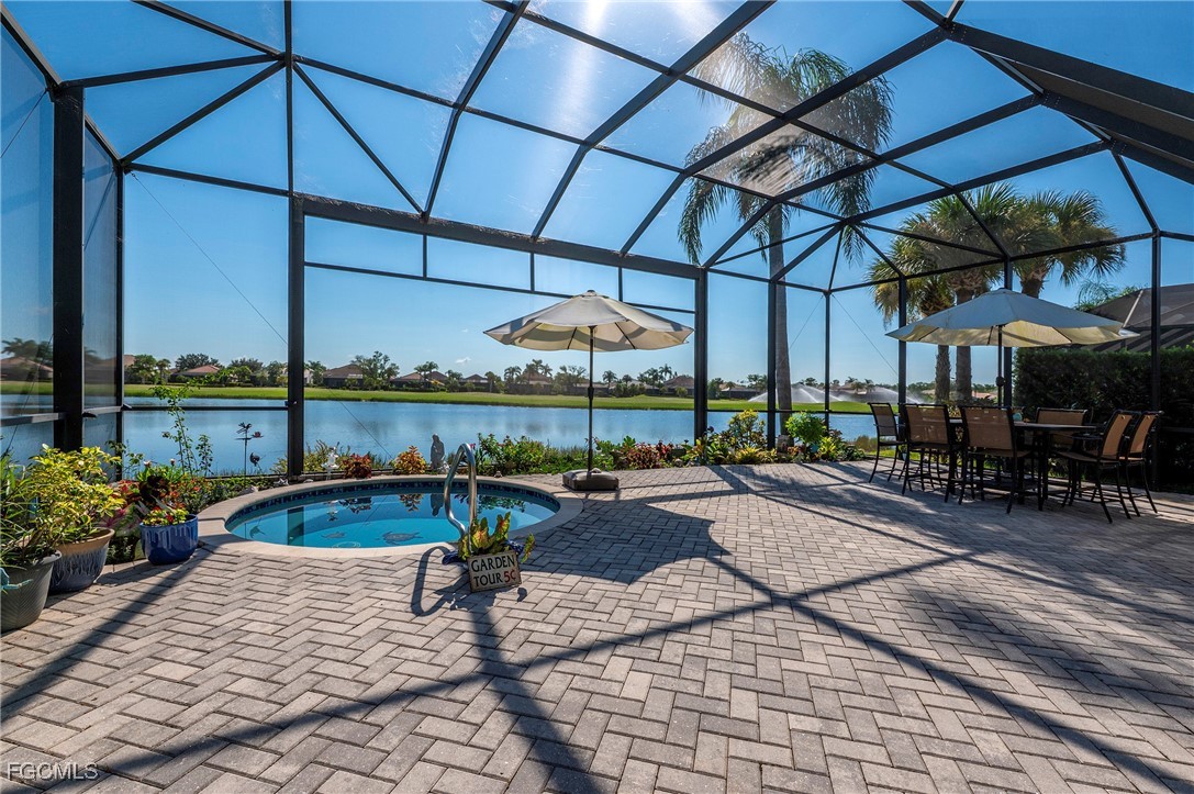 With over 2,100 square feet of living space, this residence features 3 bedrooms, 3 full bathrooms, and a loft all designed for comfort and functionality. Large, airy rooms flow seamlessly into a generous screened lanai, where northeastern views of the lake and golf course create a serene backdrop. A private built-in spa completes the outdoor retreat, perfect for relaxing year-round.