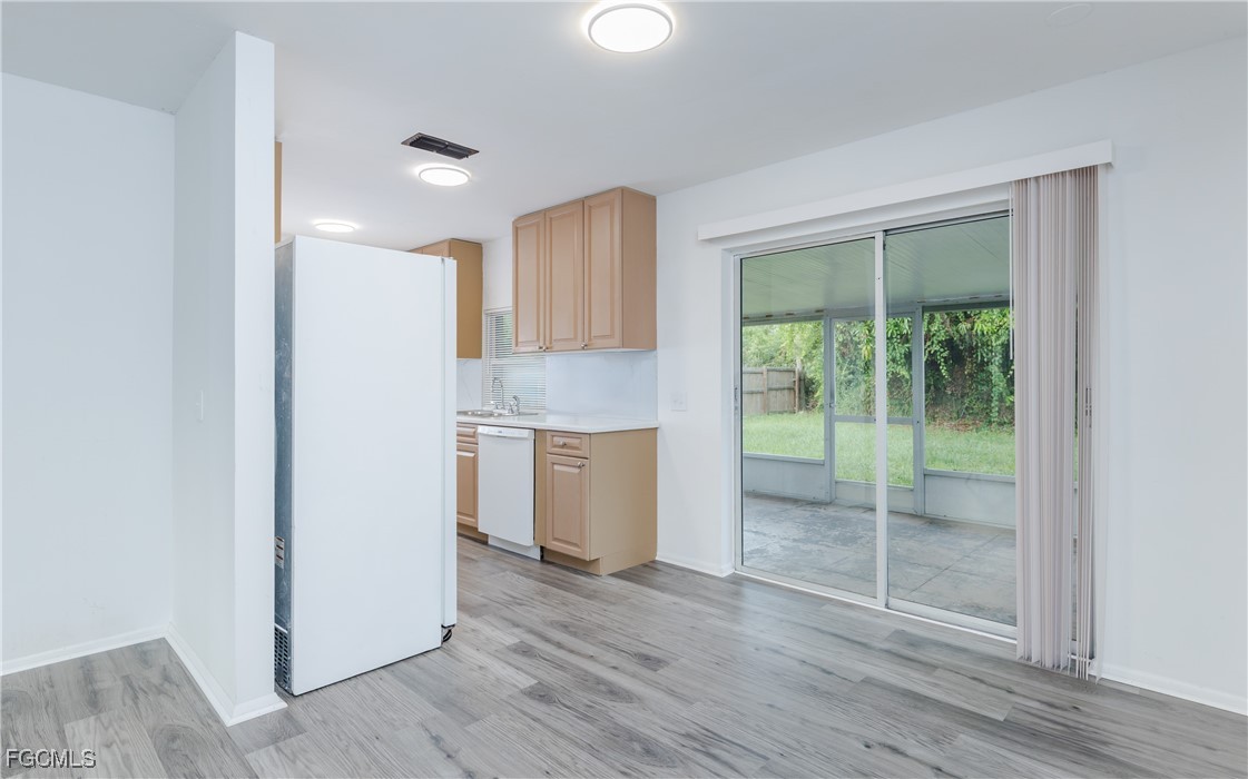 Completely remodeled 3-bedroom, 2-bath home with a 1-car garage offers a unique opportunity in booming Cape Coral. Located in Cape Coral’s unincorporated/ industrial/ Pine Island Corridor area, this property is zoned for both residential use and small business — ideal for investors or owner-occupants seeking flexibility of use and parking ability. The interior features new vinyl flooring throughout the main living areas, fresh carpet in the bedrooms, and updated paint inside and out. The kitchen has been completely refurbished with modern finishes and newer appliances. Additional updates include an extra-deep well with new equipment (property will not be subject to forced utility expansion according to the city of Cape Coral) and a roof replaced in 2019. Not located in a flood zone. Ideally located just off Pine Island Road, the property is within walking distance of shopping and dining.