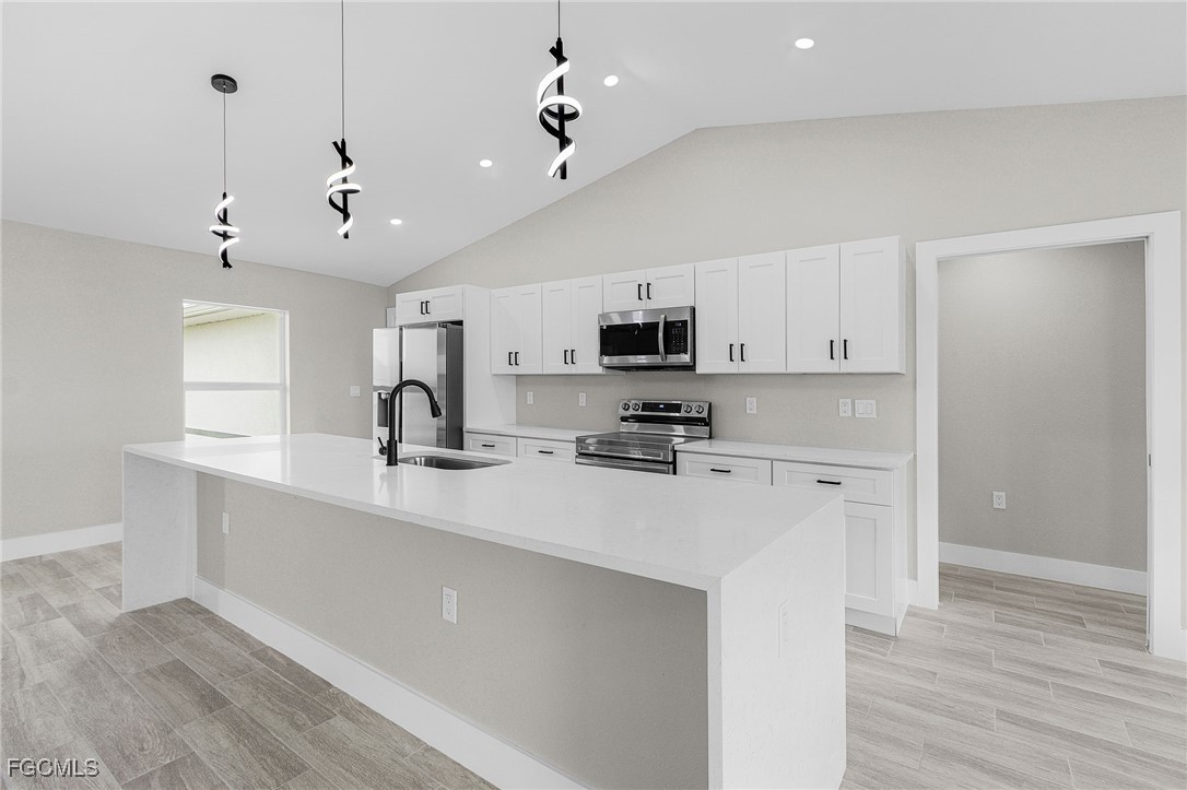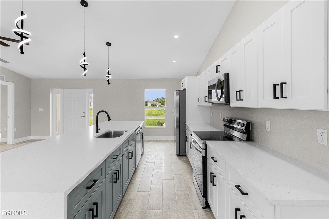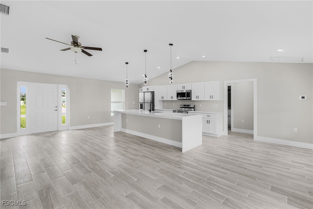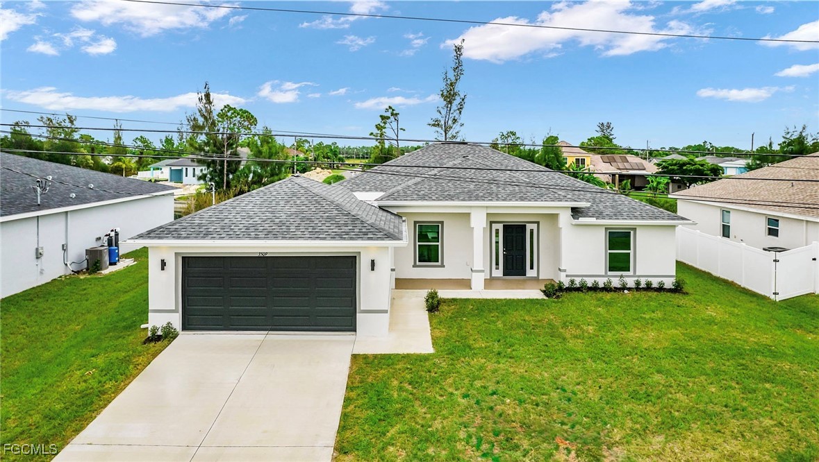 NEW - NEW - NEW - WATERFRONT - WITH SELLER CONCESSIONS (CHOOSE UP TO 2): 1. 3.875% Mortgage Rate Potential (Point Buy Down up to $5,000), 2. $5,000 closing cost credit, 3. $5,000 Builder Upgrades. Welcome Home to Waterfront Living with Thoughtful Upgrades Throughout Your New Home! Be the first owner of this amazing 4 bedroom / 3 bathroom home in highly sought SW Florida. Your new home boasts a split floor plan, two en suite bathrooms and sits on a stunning freshwater canal. It's the perfect blend of comfort and Florida charm. With its bright open floor concept, this home was designed for both relaxation and entertaining. Step inside to find soaring ceilings, abundant natural light, and seamless flow between the living, dining, and kitchen areas—ideal for gatherings of all sizes. The kitchen is the true heart of the home, offering plenty of counter space, modern appliances, and a large island perfect for casual dining. You will find tons of modern accents throughout this home including luxurious wood trim, matte black handles, gorgeous pendant lights and more. The primary suite is a private retreat with a generous walk-in closet and en-suite bathroom featuring dual sinks and walk-in shower. This home has a split level floor plan with second en suite bathroom! Outside, your private slice of paradise awaits! Enjoy peaceful mornings by the canal and relax on the patio with the calming water view. Additional features include a dedicated indoor laundry room and an attached garage. Conveniently located near shopping, dining, and all the best of Florida living, this home offers the lifestyle you’ve been waiting for.