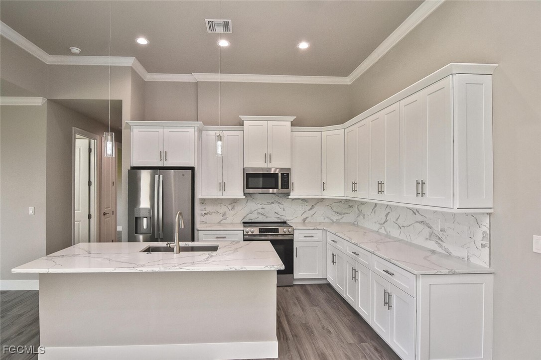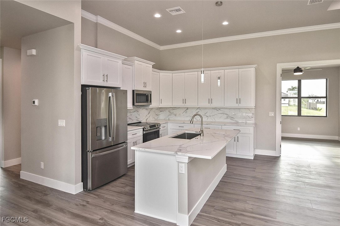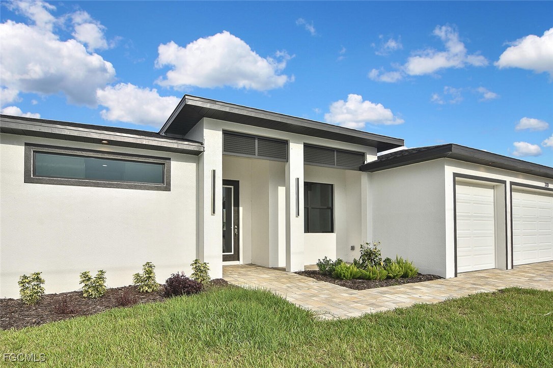 *** Priced to sell QUICK *** BRAND NEW WATERFRONT HOME in a very nice and quiet neighborhood on a beautiful wide fresh water canal with extra long canal views and a NEW SEAWALL. The home boast 3 bedrooms plus a den/office and 2.5 baths and 3 car garage with coated floor. ALL ASSESSMENTS PAID !! This home features laminate floors throughout what gives this home an extra warm feel. 12,4 feet high tray ceiling in the living room. Great upgrades like hurricane impact doors and windows. The beautiful kitchen is spacious and modern with quartz counter tops and quartz back splash with the latest appliances. Paver driveway to the 3 car garage. Move-in ready to enjoy Florida's great waterfront lifestyle. *** If you like a pool/spa to be added to this home that is not a problem the designs are already in place (you can still make adjustments and pick the colors) ***