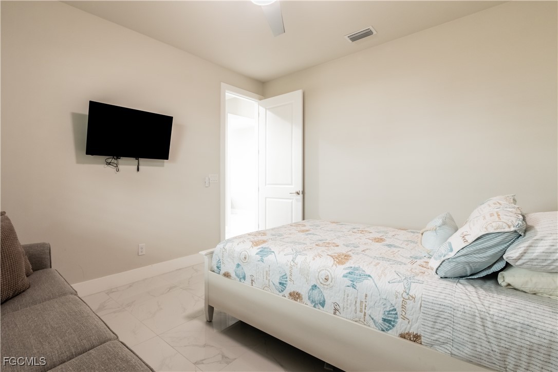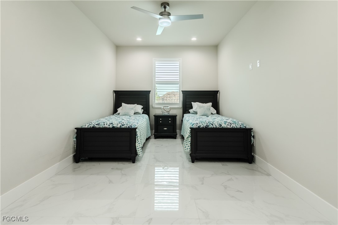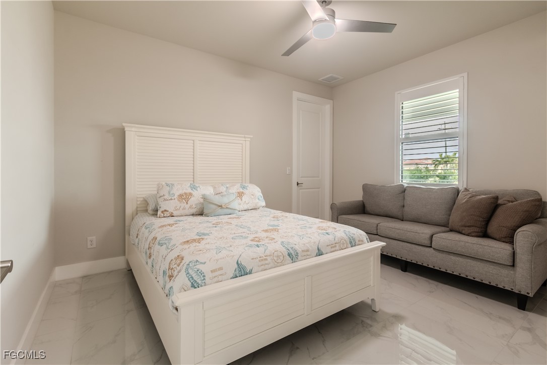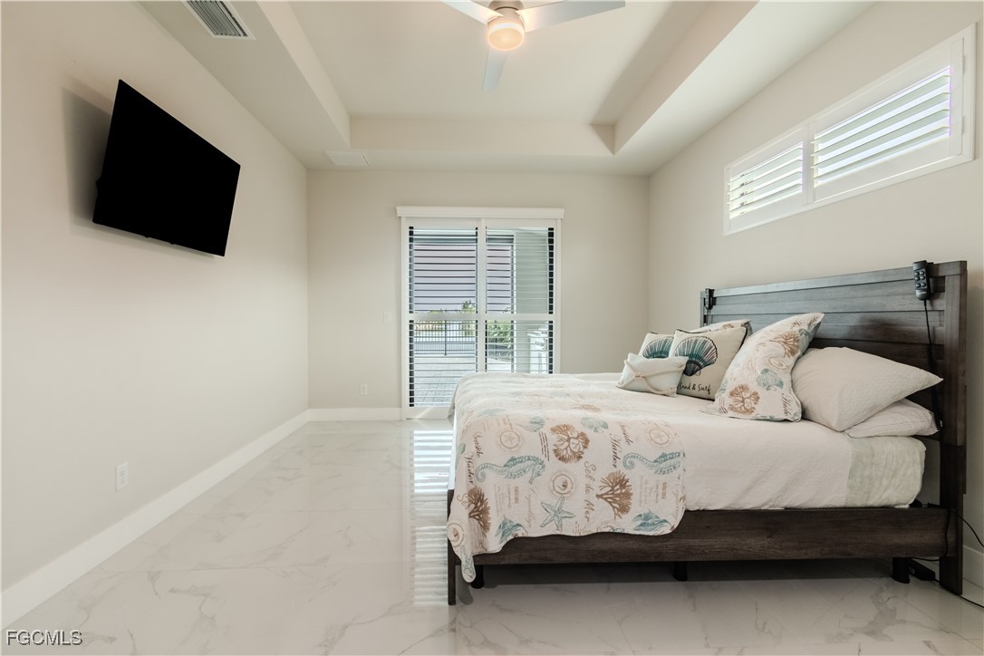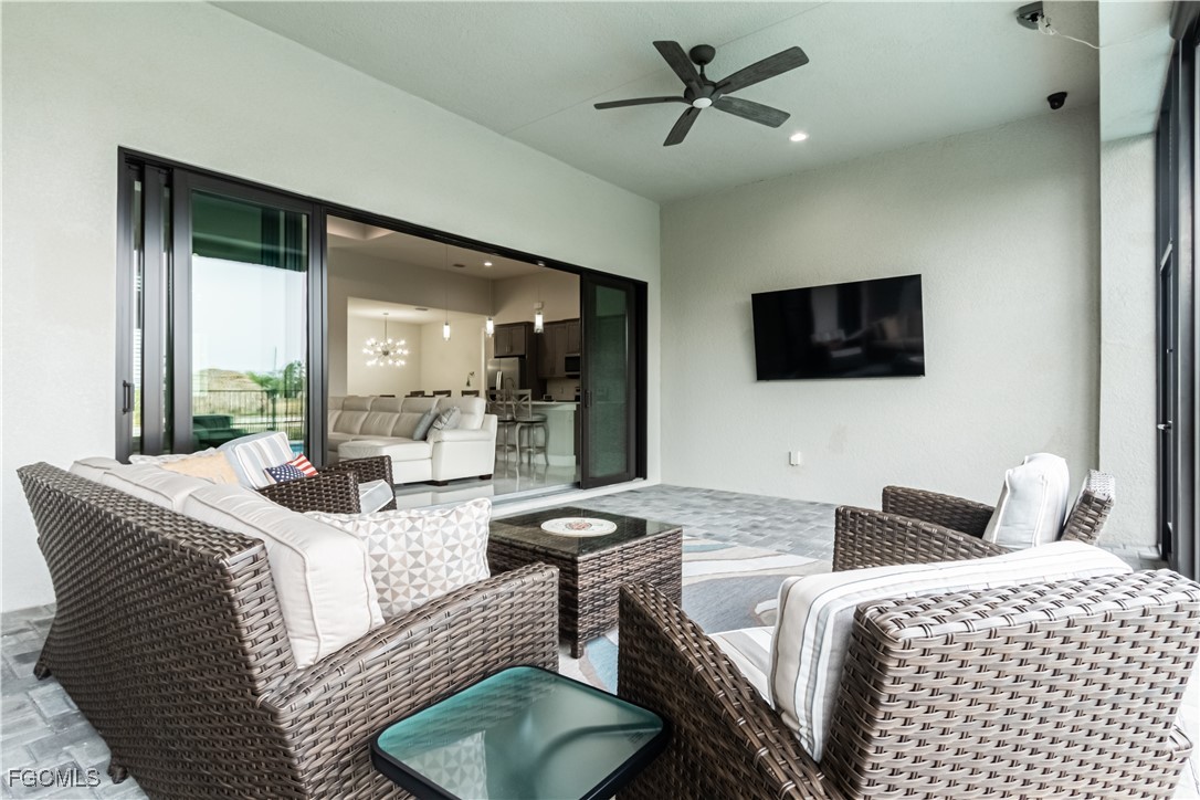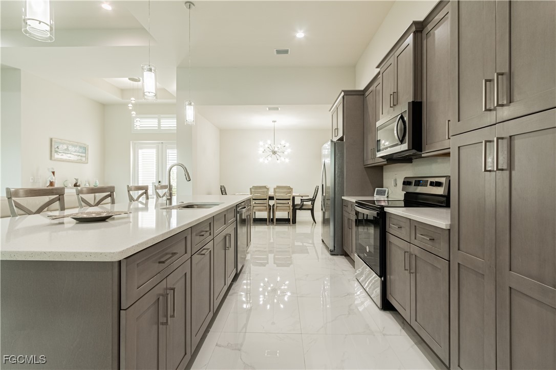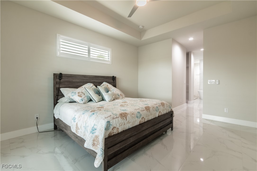This exceptional Waterfront FURNSIHED optional home in Cape Coral, offering almost 2,300 square feet of beautifully designed living space with a comprehensive CAMERA security system for peace of mind. Featuring 3 bedrooms plus a den, 2 full bathrooms, with city water and sewer this home is ideal for those seeking both comfort and location. Just off Veterans and Chiquita, with eastern exposure, you'll enjoy sunrises over the canal right from your backyard. As you enter through the double doors, you're immediately captivated by soaring 13-foot ceilings in the living room, flooding the space with natural light and creating an inviting atmosphere perfect for relaxation and entertaining. Impact windows and six-door sliders frame stunning, unobstructed views of the canal, effortlessly blending indoor and outdoor living. The chef’s kitchen is a standout, featuring sleek quartz countertops, soft-close drawers and cabinets for both style and functionality. Your waterfront view is integrated with a dock, featuring a palm frond umbrella for shade. Outdoors, the fully equipped kitchen makes outdoor dining a breeze, while the automatic screen system quickly opens the lanai to the outdoors, allowing you to enjoy the serene surroundings in seconds. The master suite is a private retreat, complete with a carwash-style shower, a soaking tub for ultimate relaxation, and private sliders leading directly to the back lanai for easy access to the pool and waterfront views. Additional highlights include a resort-style pool with a convenient pool bath, a captain’s walk dock with a tiki hut, and a three-car garage with epoxy flooring for all your vehicles and storage needs. With pavers surrounding the home and no flood insurance required, this property offers peace of mind and significant savings. Move-in ready, this home is the ultimate Florida retreat, blending modern luxury with a prime waterfront location.