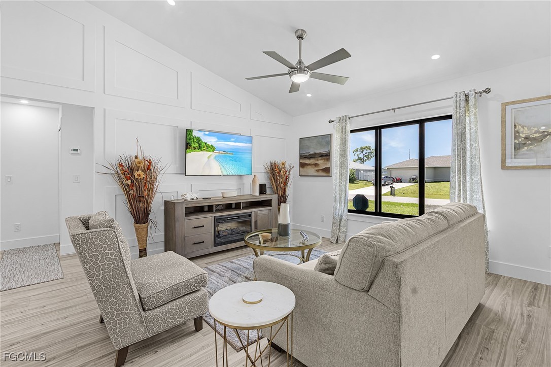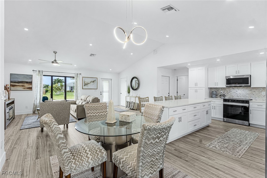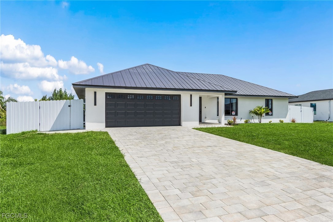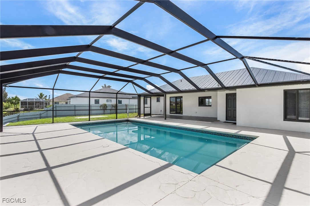 Discover Florida living at its finest in this stunning four-bedroom, three-bathroom pool home in NE Cape Coral. With a durable new metal roof, quartz countertops, brand-new appliances, and an open-concept design, this residence blends stylish comfort with effortless entertaining. The open-concept living area connects the living, dining, and kitchen for easy everyday living and memorable gatherings. A split bedroom floor plan offers a private primary suite separated from three guest bedrooms, providing a tranquil retreat with en-suite luxury. The gourmet kitchen features quartz countertops, a modern backsplash, and brand-new stainless steel appliances, creating a chef-ready workspace that’s both functional and chic. The durable metal roof is low-maintenance and designed to withstand Florida’s weather, adding lasting value and curb appeal. Step outside to a poolside oasis with a sparkling pool and sun-drenched patio—ideal for lounging, grilling, and outdoor gatherings. Indoor laundry/utility room, neutral finishes, and ample storage add seamless convenience. All practicals are taken care of: city, water, and sewer assessments are paid in full, making this a turnkey opportunity—no waiting, no extra costs, just move-in magic. Prime Cape Coral location means easy access to shops, dining, parks, waterfront activities, major roads, and schools. Schedule your tour and contact Agent for details and showings.