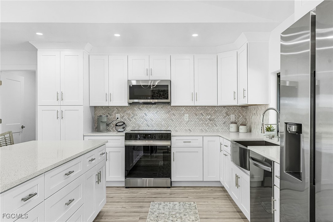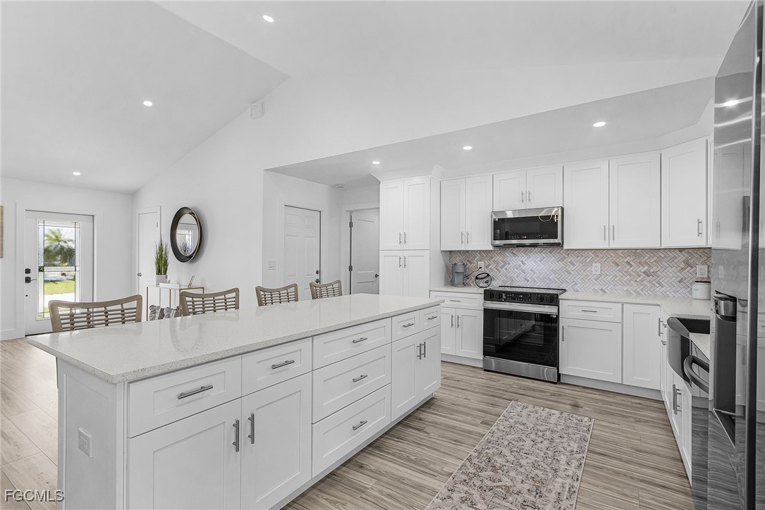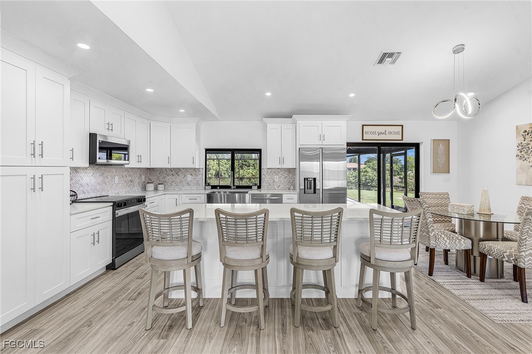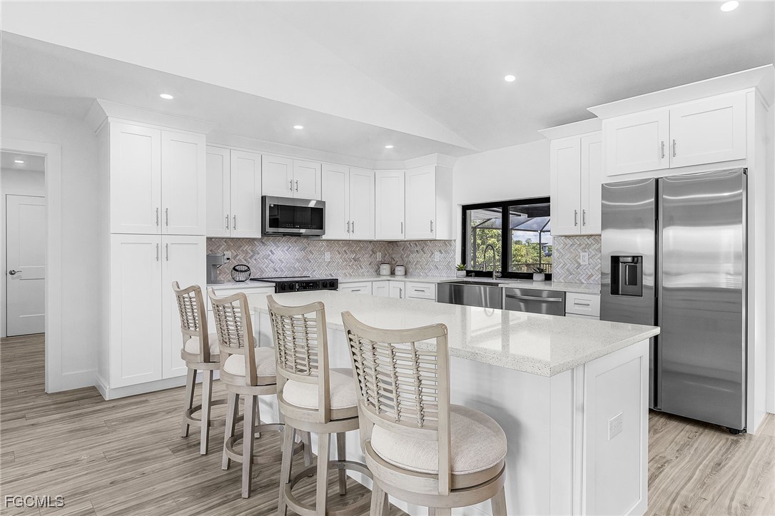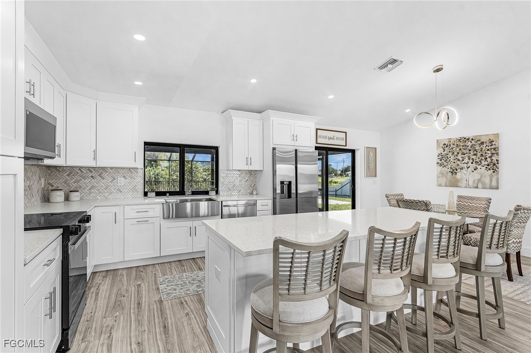 Discover Florida living at its finest in this stunning four-bedroom, three-bathroom pool home in NE Cape Coral. With a durable new metal roof, quartz countertops, brand-new appliances, and an open-concept design, this residence blends stylish comfort with effortless entertaining. The open-concept living area connects the living, dining, and kitchen for easy everyday living and memorable gatherings. A split bedroom floor plan offers a private primary suite separated from three guest bedrooms, providing a tranquil retreat with en-suite luxury. The gourmet kitchen features quartz countertops, a modern backsplash, and brand-new stainless steel appliances, creating a chef-ready workspace that’s both functional and chic. The durable metal roof is low-maintenance and designed to withstand Florida’s weather, adding lasting value and curb appeal. Step outside to a poolside oasis with a sparkling pool and sun-drenched patio—ideal for lounging, grilling, and outdoor gatherings. Indoor laundry/utility room, neutral finishes, and ample storage add seamless convenience. All practicals are taken care of: city, water, and sewer assessments are paid in full, making this a turnkey opportunity—no waiting, no extra costs, just move-in magic. Prime Cape Coral location means easy access to shops, dining, parks, waterfront activities, major roads, and schools. Schedule your tour and contact Agent for details and showings.