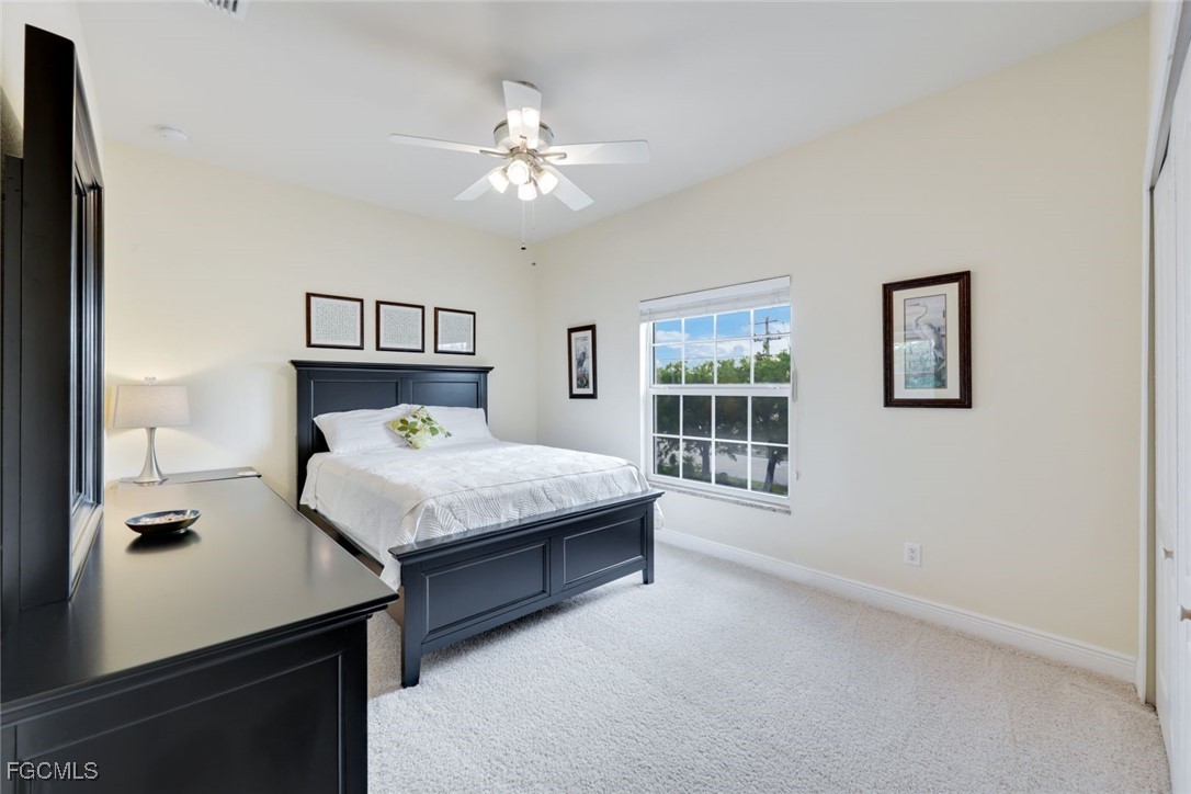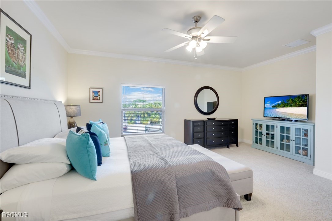 BOAT SLIP & FURNITURE INCLUDED! SMALL, PET FRIENDLY, FINANCIALLY SOUND COMMUNITY! Nestled in a rarely available, small, pet friendly, Gulf-access community, this stunning property offers the perfect blend of luxury, convenience, and serene waterfront living in SW Cape Coral. The freshly painted exterior and BRAND NEW tile roof set the stage for this meticulously maintained community. Step inside and discover a thoughtfully designed layout with HIGH vaulted ceilings, crown molding throughout, and tile flooring in the main living areas, while cozy carpet adds comfort to the bedrooms. The modern kitchen features granite countertops, a breakfast bar, maple cabinets, recessed lighting, and a large walk-in pantry that doubles as a laundry room with extra storage. The spacious living room is perfect for entertaining, while the den with frosted glass doors adds a stylish and functional flex space. Decorative niches throughout the home add unique character and charm. Relax on your screened, tiled balcony overlooking the heated pool and canal, complete with impact sliding doors AND electric shutters for added security and peace of mind. Outdoor enthusiasts will love the boat slip, dock, and captain’s walk, providing boating access to the Gulf of Mexico. The main suite is a spacious private oasis with views of the water, a large walk-in closet with attic access, and a luxurious en-suite bathroom featuring a floor-to-ceiling tiled shower with decorative listello, dual sinks, and a linen closet. Watch manatees and dolphins year-round right outside your back door, making this home a true coastal paradise. You deserve everything that SWFL has to offer: temperate weather year round, boating, kayaking, jet skiing, world class fishing and white sandy beaches at your fingertips!