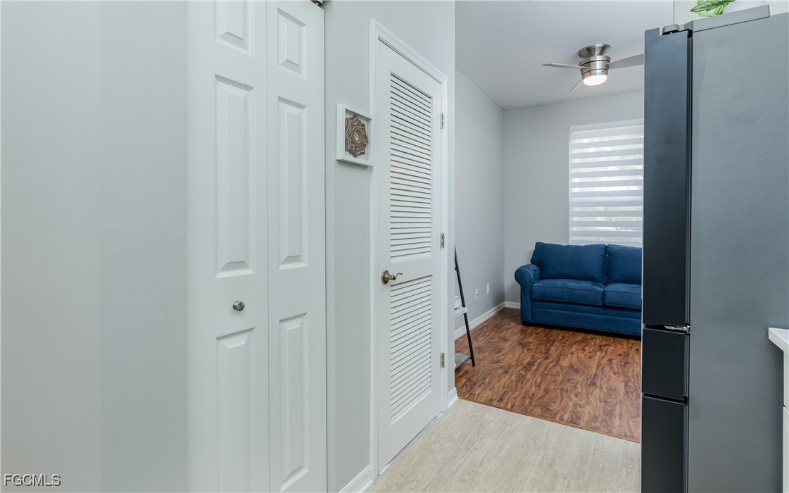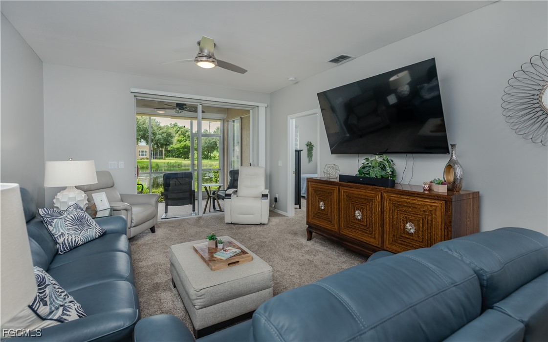 This beautiful first-floor condo with 2+DEN and 2 bathrooms is in the Willowbrook neighborhood of Parker Lakes. Nestled in the quietest part of the community, well away from main roads. The kitchen has all-NEW countertops with all-NEW appliances. This condo looks out on a beautiful lake with a stunning fountain. You can enjoy watching the tropical birds while relaxing on your screened lanai. A LARGE separate laundry room with a NEW washer and dryer combo, extra storage closet on the lanai and covered parking complete this wonderful home, which is also equipped with ELECTRIC STORM SHUTTERS. PET FRIENDLY-LOW HOA FEES- NO CDD. Parker Lakes offers so many lifestyle amenities, including a resort-style pool, lap pool, wading pool, hot tub ( Open until 11 pm), tennis and pickleball courts, basketball and racquetball, an exercise room, clubhouse, shuffleboard, and a fishing pier with lots of fish!