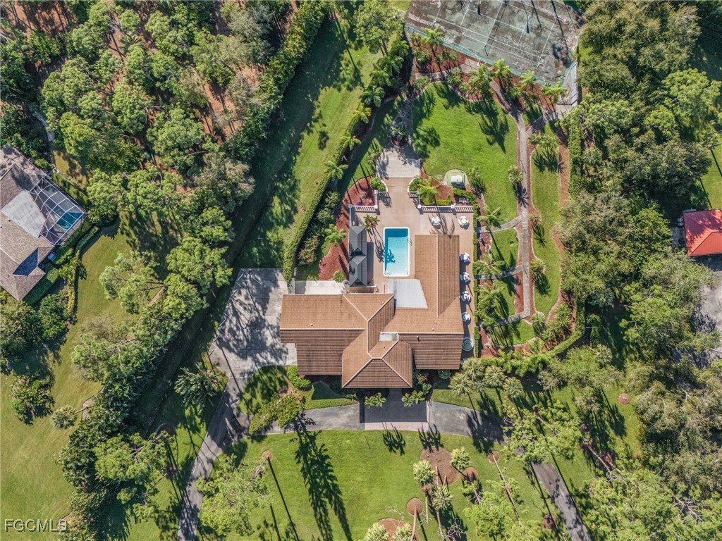 PRICED $105K BELOW APPRAISAL! This luxury, fully furnished, and equipped estate with 6,800 sf of living space on 3 acres of private estate, two 2-car garages with new epoxy finish, and six additional parking spaces off the garage, a Gourmet eat-in kitchen with a large butler’s Pantry, and laundry. Large game room and Gym is in a prime area of Fort Myers, one of only 47 homes in the Brynwood gated community, with views of the serene upscale surroundings and easy access to all South Ft. Myers offers. The estate has fully landscaped grounds featuring updated amenities, an oversized, newly resurfaced pool, and a 4,500-sf resurfaced pool lanai outdoor living space; twelve-foot-high masonry block walls with vines provide over an acre of complete privacy for the lanai, backyard, and Tennis court. Hurricane protection, proximity to Lee County Hospital and other medical facilities, plus South Fort Myers upscale retail shops and restaurants. This exquisite tri-level home includes top-of-the-line upgrades, ensuring comfort and security. The interior features soaring ceilings, vast, airy spaces, oversized porcelain and marble flooring, and premium M/bedroom carpeting. The gourmet kitchen includes a large dining area, custom cabinets, an extraordinary appliance package with a gas range, two Viking ovens, and elegant granite countertops that create an inviting atmosphere. The core level includes a living room with a 120” descending projection TV screen, a formal dining room, a gourmet kitchen and separate butler Pantry and laundry, and a spacious game room featuring a Brunswick slate pool table and flat- screen TV, enhancing grandeur and warmth. The Master suite includes high Venetian plaster ceilings, large windows and sliding doors with views of the grounds, a circular soaking Jacuzzi Tub, a huge two-entrance shower with tanning lamps, a huge closet with built-in cabinets and wet bar. The residence has three guest Suites with upscale bathrooms: a staff or In-Law apartment with a Living room, bedroom, and full kitchen. The fully equipped Gym with Kohler habitat (steam and sauna) and a bathroom. An elevator, wheelchair accessible, provides access to all three levels of the house. Security and safety are built into this estate. A 100 KW propane generator is supplied by a 2,250-gallon tank capable of powering the entire residence for over 4 weeks. In addition to the Lee County water supply, the residence has a whole-house private water system fed by a 300-foot well and Culligan filter and water softener system. The Anderson windows and sliding doors are impact glass, and Motorized Push button shutters wrap the house for security and safety. Highlights: The estate comes fully furnished and equipped, Ready to move into right down to the fully equipped Gym with flat-screen TVs in all the bedrooms, living room, and game room.