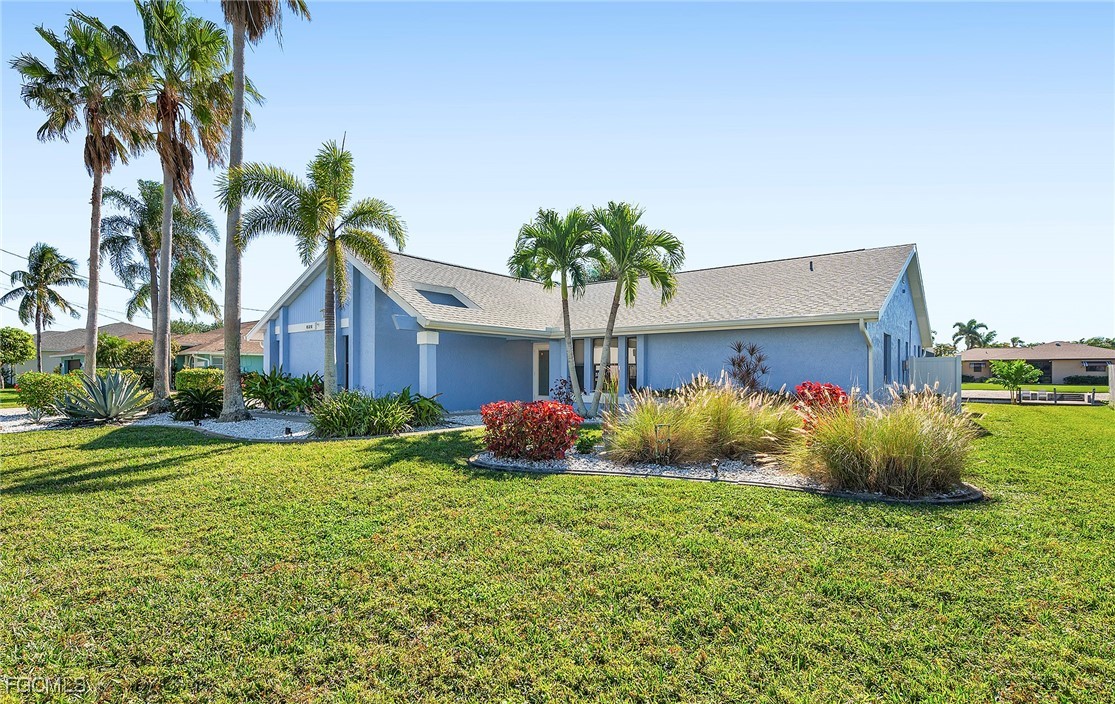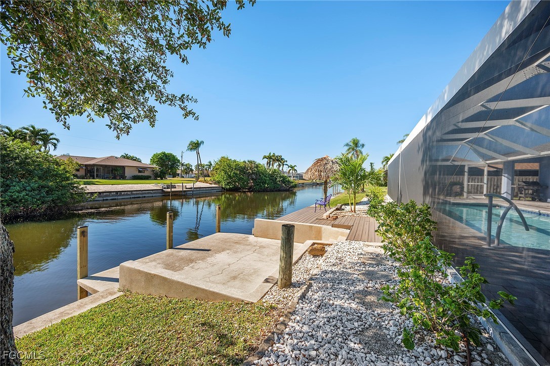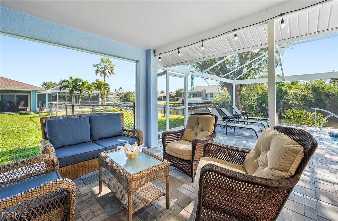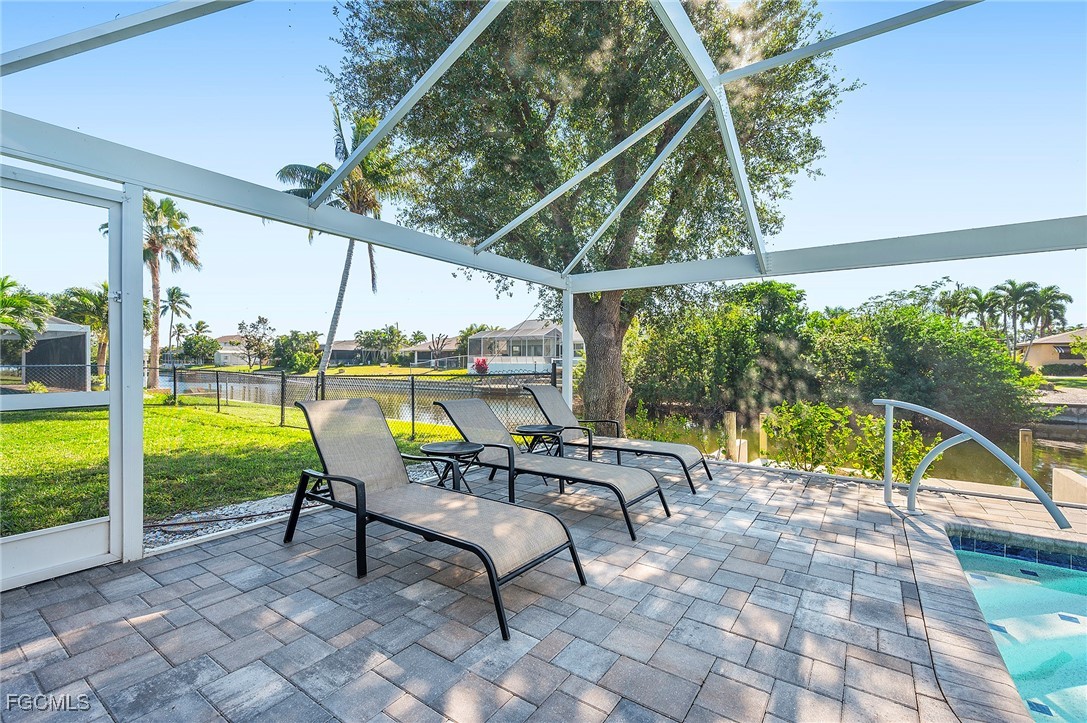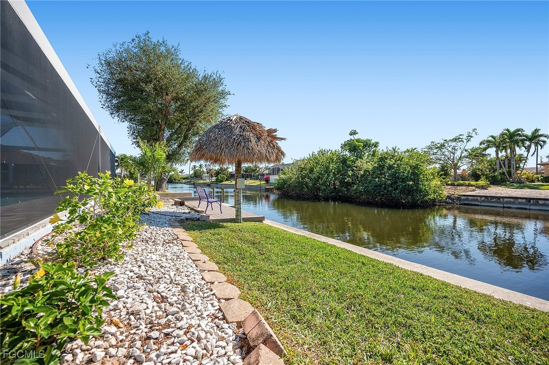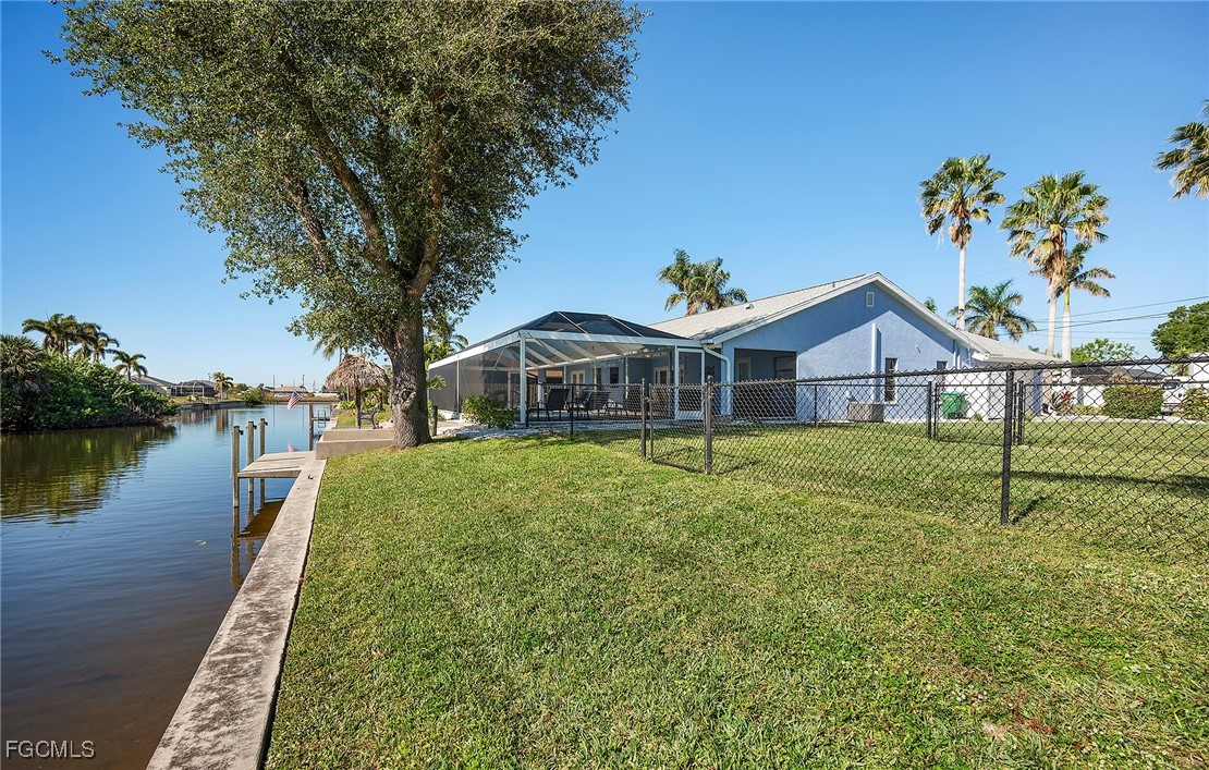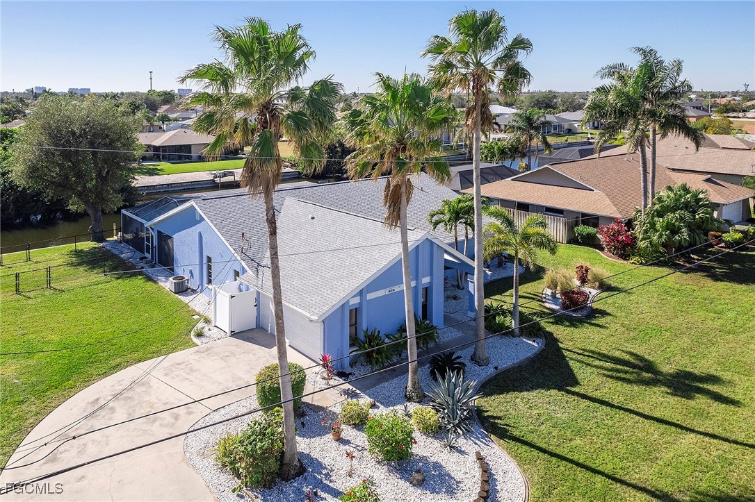 Beautiful 3 bedroom, 2 bathroom property with bonus room located on a triple lot in SW Cape Coral just off of Skyline Blvd. The property features lush landscaping, it is partially fenced which is ideal for a family with a pet and the yard offers plenty of space for outdoor entertainment. The property faces south which is ideal for maximum sun exposure and is located on a quiet canal. The property itself features a split floor plan where the primary bedroom and bathroom are located on the left side of the house while the guest bedrooms are located on the right side of the house, sharing a bathroom. The kitchen and living room are the main focal points of the house. From the kitchen there are plenty of windows to look out to the swimming pool and canal and there is ample natural light. The property features ambient lighting in the evening and the landscape around the property is lit up which makes for magnificent ambient lighting. This property was just recently upgraded and features new flooring, new kitchen appliances, new bathrooms and kitchen. The swimming pool was recently resurfaced and new pavers were installed around the swimming pool. The roof along with the pool cage were replaced within the last 3 years. Furthermore the water heater was replaced in 2025 and the pool pump was also recently replaced. The property does not require flood insurance and the home stayed high and dry during past hurricanes. Property is offered furnished minus some exclusions which are listed in the confidential comments section.