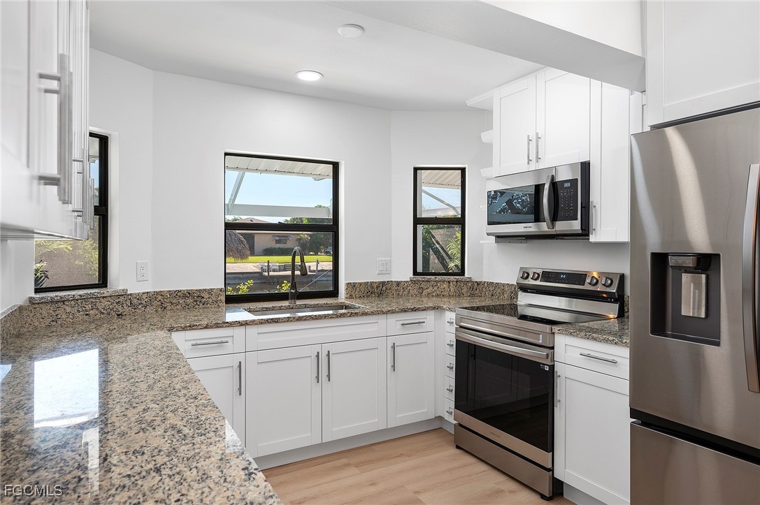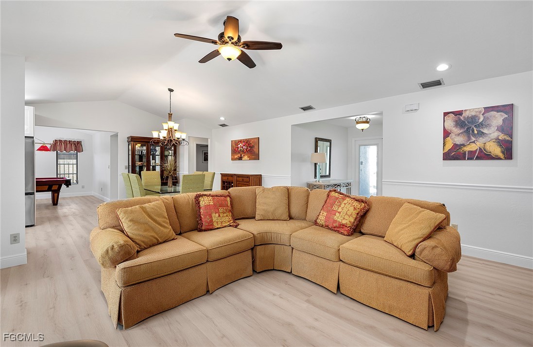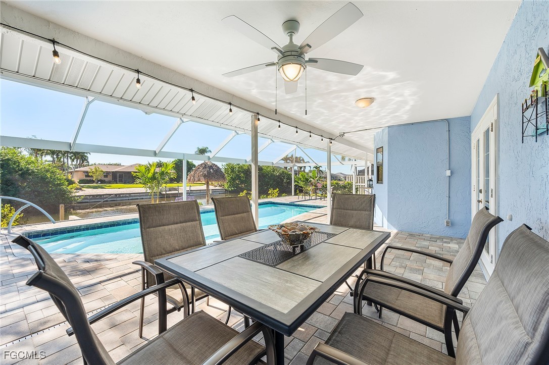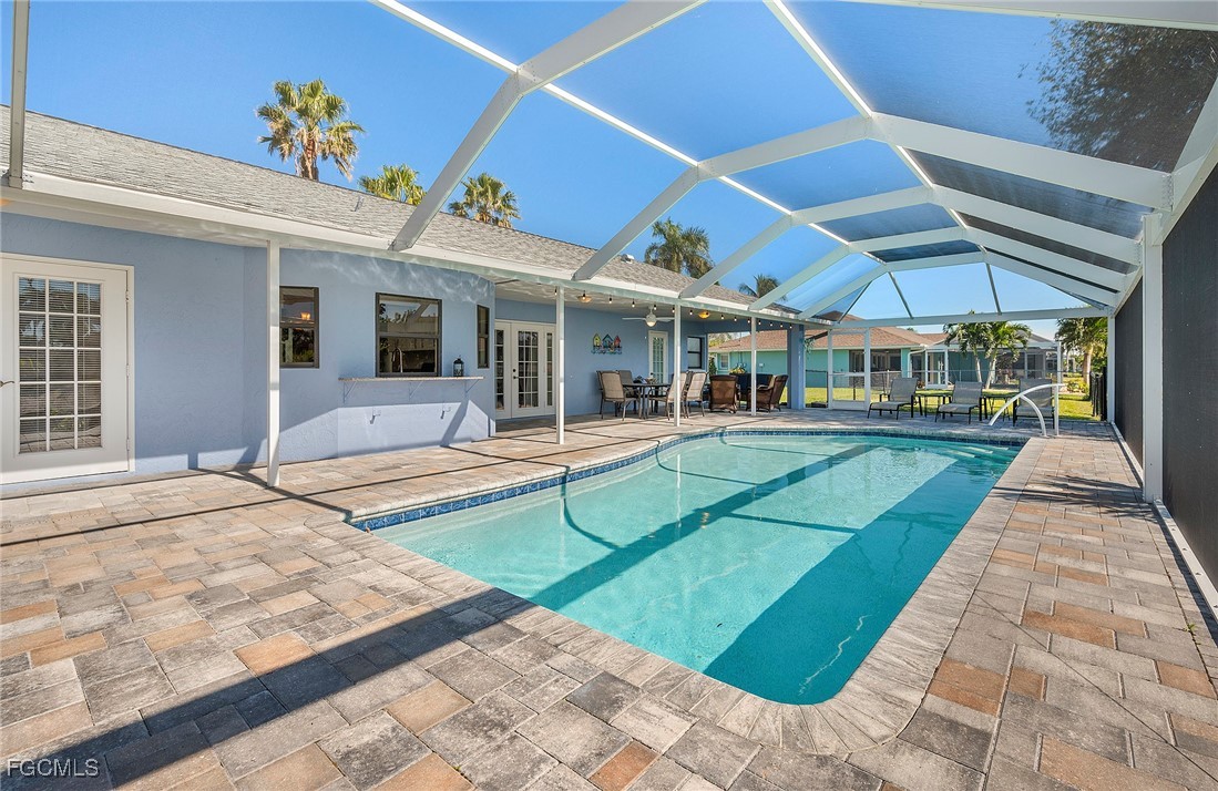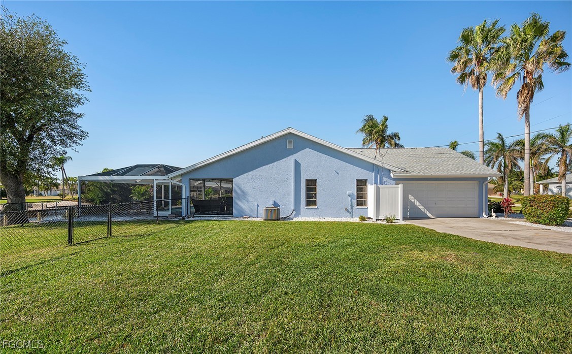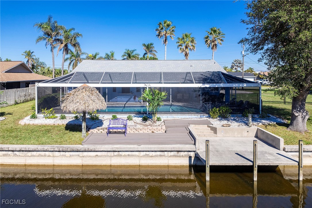 Beautiful 3 bedroom, 2 bathroom property with bonus room located on a triple lot in SW Cape Coral just off of Skyline Blvd. The property features lush landscaping, it is partially fenced which is ideal for a family with a pet and the yard offers plenty of space for outdoor entertainment. The property faces south which is ideal for maximum sun exposure and is located on a quiet canal. The property itself features a split floor plan where the primary bedroom and bathroom are located on the left side of the house while the guest bedrooms are located on the right side of the house, sharing a bathroom. The kitchen and living room are the main focal points of the house. From the kitchen there are plenty of windows to look out to the swimming pool and canal and there is ample natural light. The property features ambient lighting in the evening and the landscape around the property is lit up which makes for magnificent ambient lighting. This property was just recently upgraded and features new flooring, new kitchen appliances, new bathrooms and kitchen. The swimming pool was recently resurfaced and new pavers were installed around the swimming pool. The roof along with the pool cage were replaced within the last 3 years. Furthermore the water heater was replaced in 2025 and the pool pump was also recently replaced. The property does not require flood insurance and the home stayed high and dry during past hurricanes. Property is offered furnished minus some exclusions which are listed in the confidential comments section.