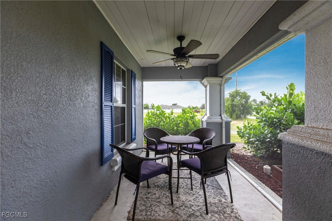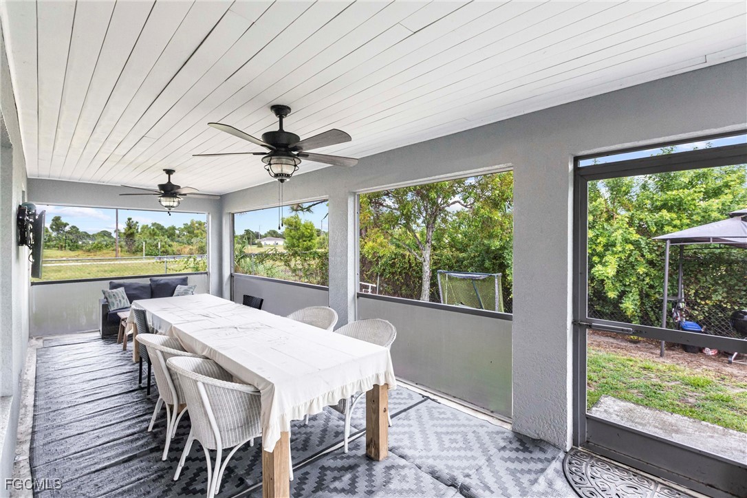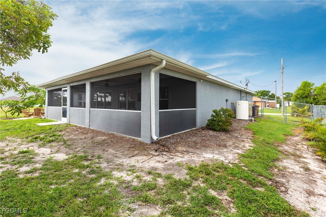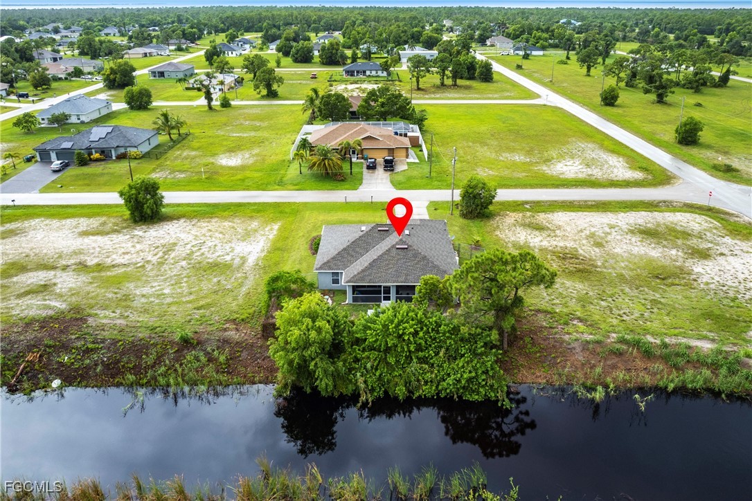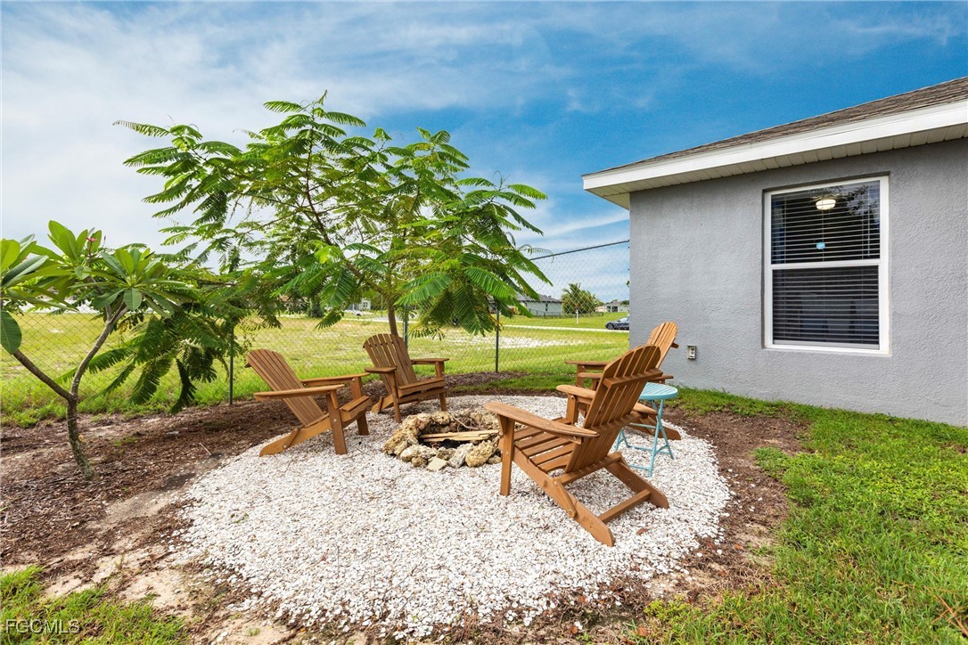 GREAT DEAL IN NW CAPE CORAL!! Charming 3 bedroom 2 bath plus Den NW Cape Coral home off Burnt Store Road close to Pine Island road shopping, and also convenient to Punta Gorda and Burnt Store Marina. Home features a large front screened porch and spacious rear screened lanai for enjoying the outdoors. Fenced home desirable for your children or pets. Relax and enjoy a fire pit in the rear yard. Home experienced no flooding with any of the hurricanes! Small canal runs behind home. Many updates in home including 2023 roof and a/c, tile plank floor throughout home, Interior painted in 2022, exterior painted in 2023, new lower kitchen cabinets and countertops in 2023. Master bath updated in 2023 with new cabinet, sink, faucet and updated custom tile master shower. Den has glass panel french doors. Dedicated 50 amp breaker in electric panel for car charger. Home has irrigation system. Great first new home for younger couple or downsize home for retirees.