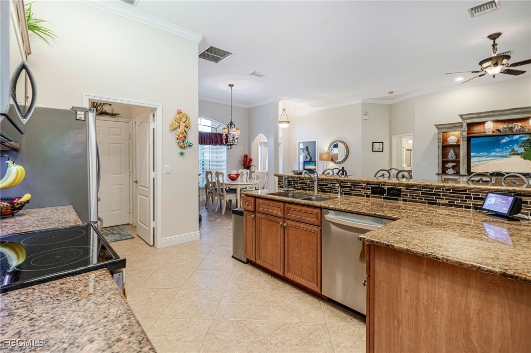 Welcome to this exceptionally clean and beautifully maintained 3-bedroom, 2-bathroom home with a 2-car garage, located in a quiet, gated neighborhood. From the moment you walk in, you're greeted by a breathtaking lake view through expansive sliding glass doors that fully open, creating a seamless indoor-outdoor living experience.