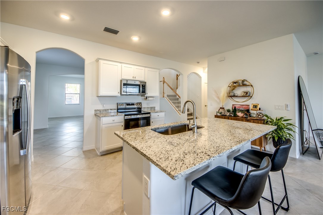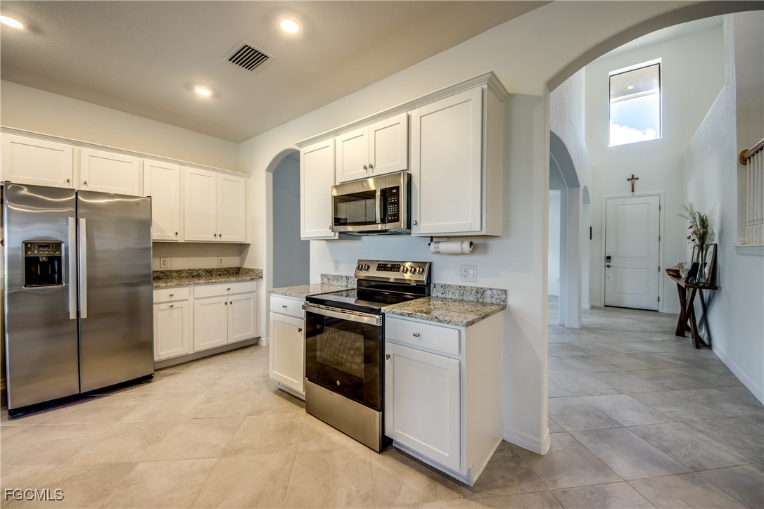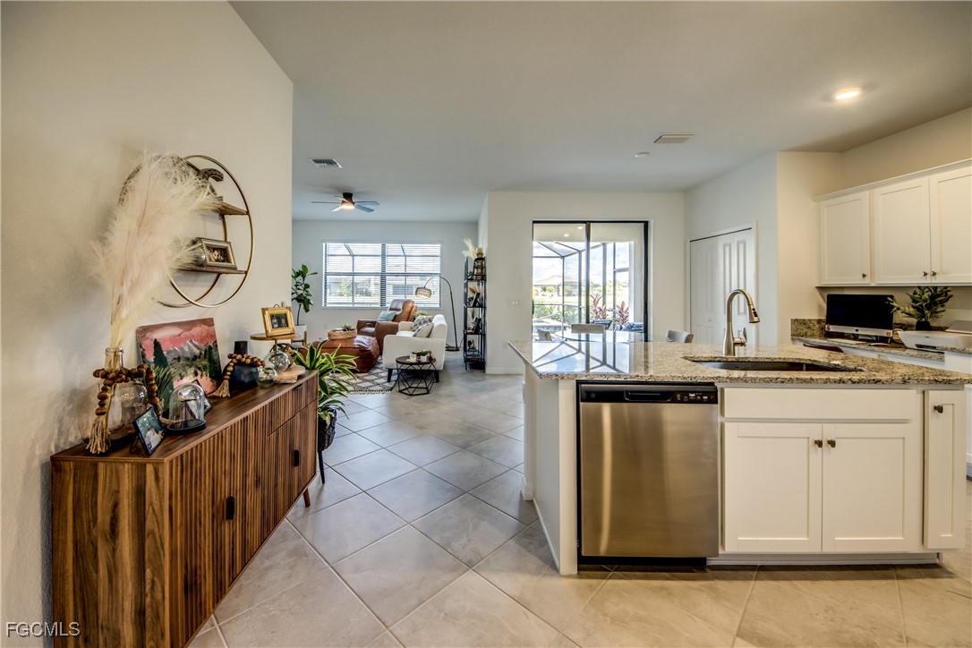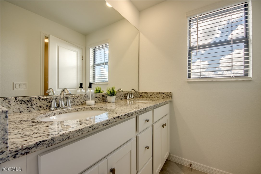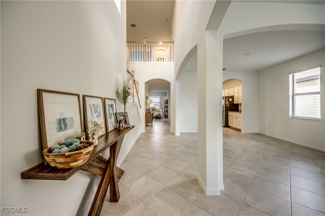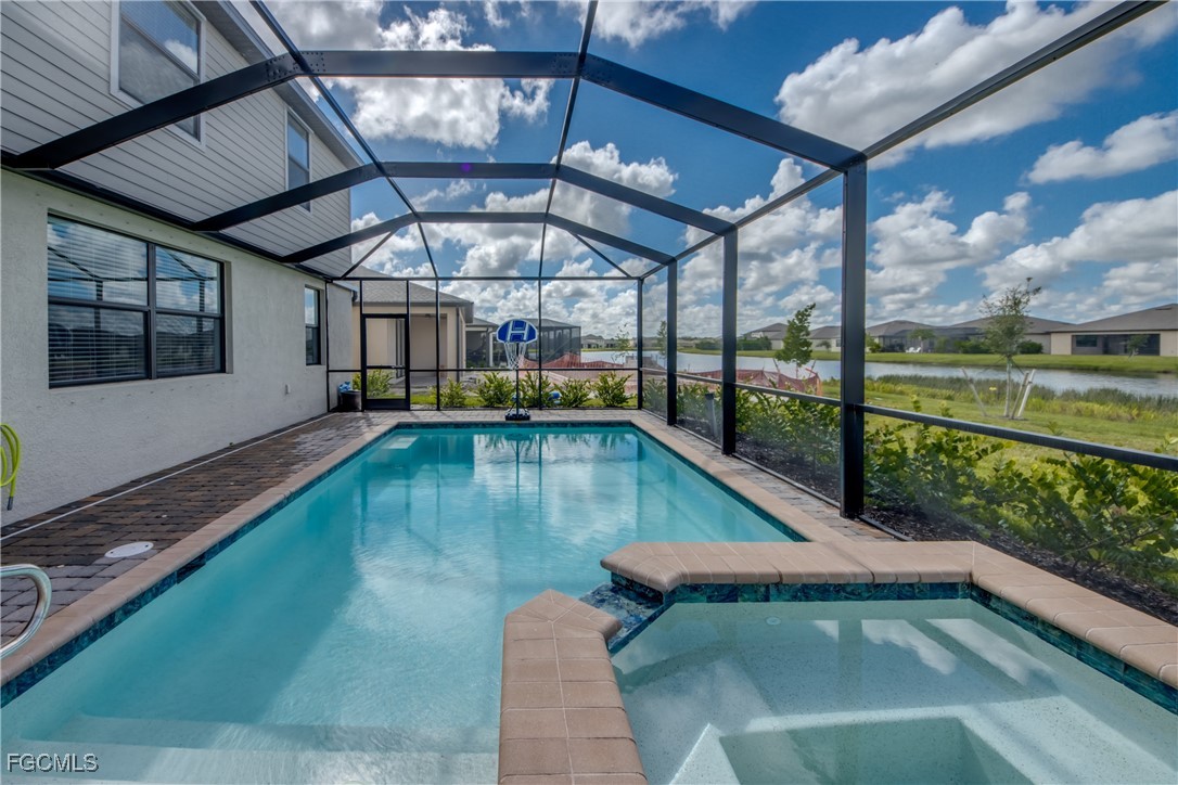 Welcome to this exquisite 5 bedroom, 3 bathroom home with a luxurious saltwater pool and spa, nestled in the sought-after community of Portico. Boasting an impressive 3,302 sq ft of living space and situated in a NON-FLOOD zone area, this newly finished home offers a blend of modern elegance and practical amenities. The property features a stunning kitchen and bathrooms with updated white cabinetry, granite countertops, and stainless steel appliances. The inclusion of hurricane glass impact windows and doors ensures both safety and energy efficiency. Enjoy the convenience and security of living in a gated community with low HOA fees and access to great amenities. Additional enhancements include gutters, ceiling fans, and a freshly applied epoxy garage floor. Relax and unwind in the backyard oasis overlooking a serene lake view. With tile flooring in main living areas and bathrooms, plush carpeting in bedrooms, and a versatile loft space ideal for an office or entertainment room, this home offers both comfort and functionality. Conveniently located near dining, shopping, and entertainment options, this property presents the ideal blend of modern comfort and upscale living within the vibrant community of Portico. Don't miss the opportunity to make this sophisticated retreat yours today. Schedule your private showing today!!!