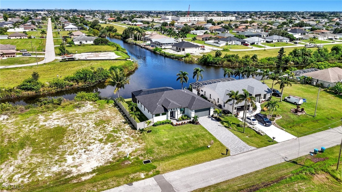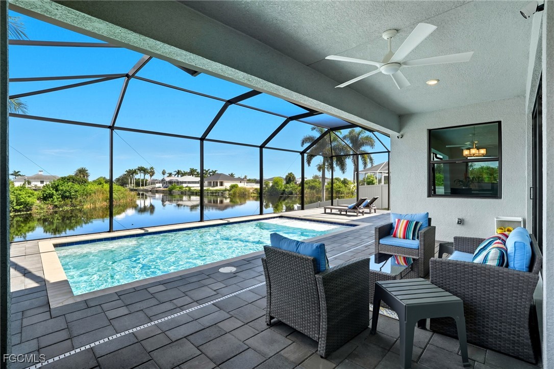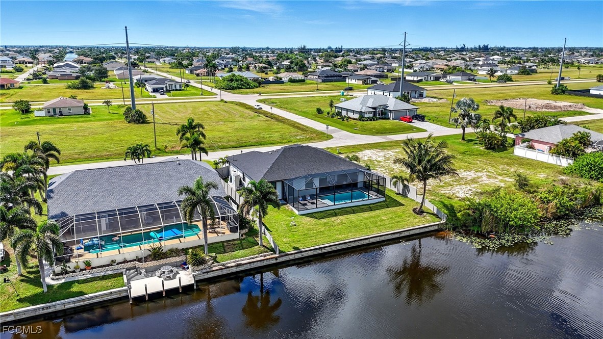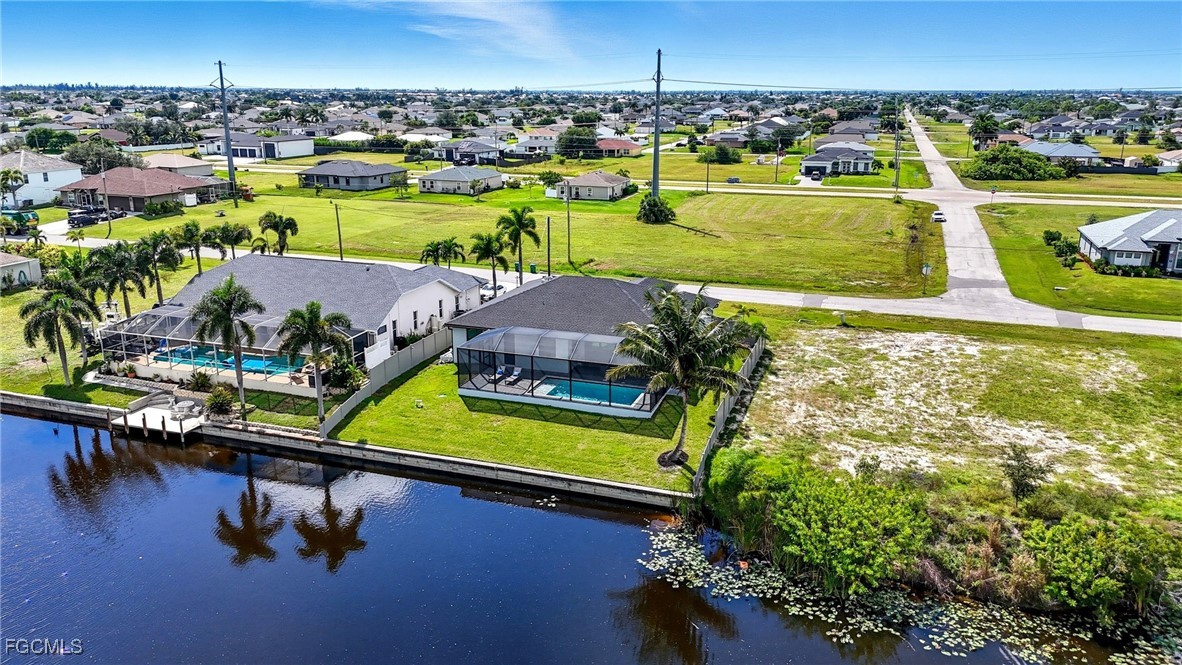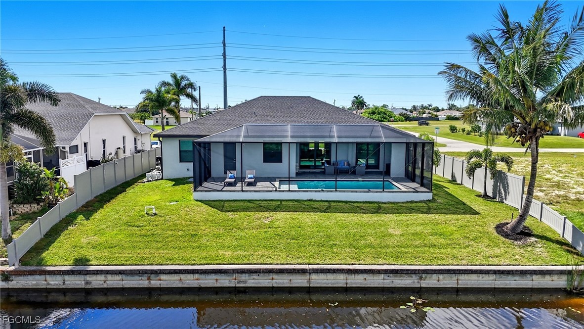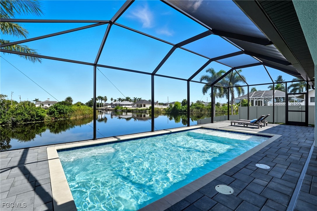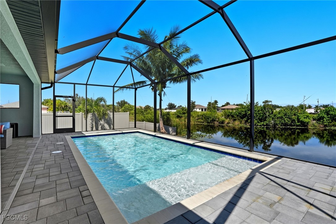 Skip the wait, stress, and hidden costs of building new—this exquisite pool home, completed just 10 months ago, is move-in ready and already includes features most new construction lacks: a privacy fence, whole-house reverse osmosis system, custom closet shelving, and a state-of-the-art security system. Set high and dry (not in a flood zone) on the shores of an intersecting freshwater canal, the property offers sweeping water views, a front-row seat to Florida’s abundant wildlife, and outstanding fishing right from your own backyard. Lush tropical landscaping, impeccable curb appeal, and a pavered driveway welcome you to this peaceful and serene retreat. Inside, modern tile floors flow seamlessly throughout the split, open-concept plan. The foyer opens to a light-filled den/office through elegant double doors, ideal for working from home or a flexible guest space. The luxurious master suite is a true retreat with lighted tray ceilings, dual walk-in closets, and a spa-style bath featuring a soaking tub, oversized walk-in shower, and separate vanities. Two additional bedrooms and a guest bath—with convenient direct pool access—are privately tucked away on the opposite side of the home. A large laundry room includes an additional full-size refrigerator, perfect for overflow or entertaining needs, leads you to the attached 2 car garage. At the heart of the home, the island kitchen blends style and function for effortless entertaining. A walk-in pantry with trendy frosted glass door keeps everything organized. White cabinetry with crown accents is paired with a chic, modern glass backsplash and gleaming granite counters. The expansive island is perfect for buffet-style meals or extra seating, and because it opens to the living and dining areas, the chef never misses a moment of the action. Nearly every room enjoys sweeping views of the pool and canal beyond. Step outside to your private oasis: a screened-in, in-ground swimming pool with a sun shelf, covered lanai, and spacious sunning area, all surrounded by a privacy fence and tropical landscaping. With 80 feet of waterfront, you can fish, launch your kayak, or simply relax and take in the view. For even more possibilities, the triple lot next door—with 120 additional feet of waterfront—is also available for purchase, offering space for a detached garage, guest home, private pickleball court, or simply extra privacy. This is modern Florida living at its finest—luxury, comfort, and endless opportunities all wrapped into one remarkable property.