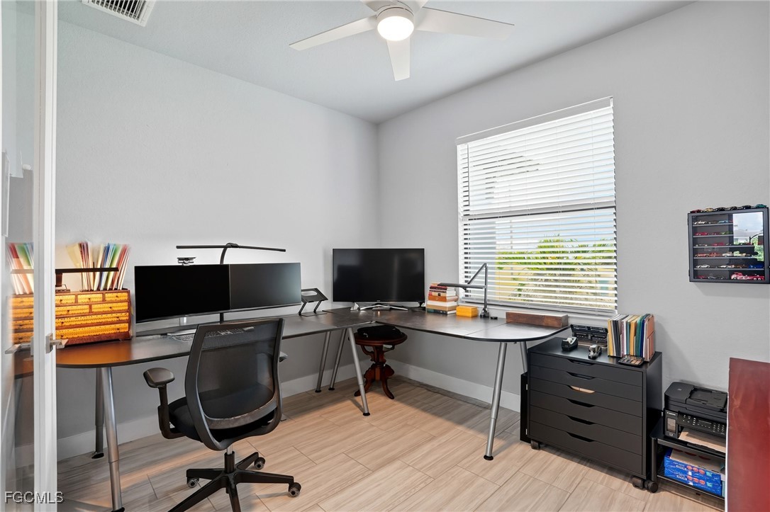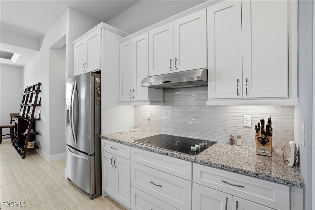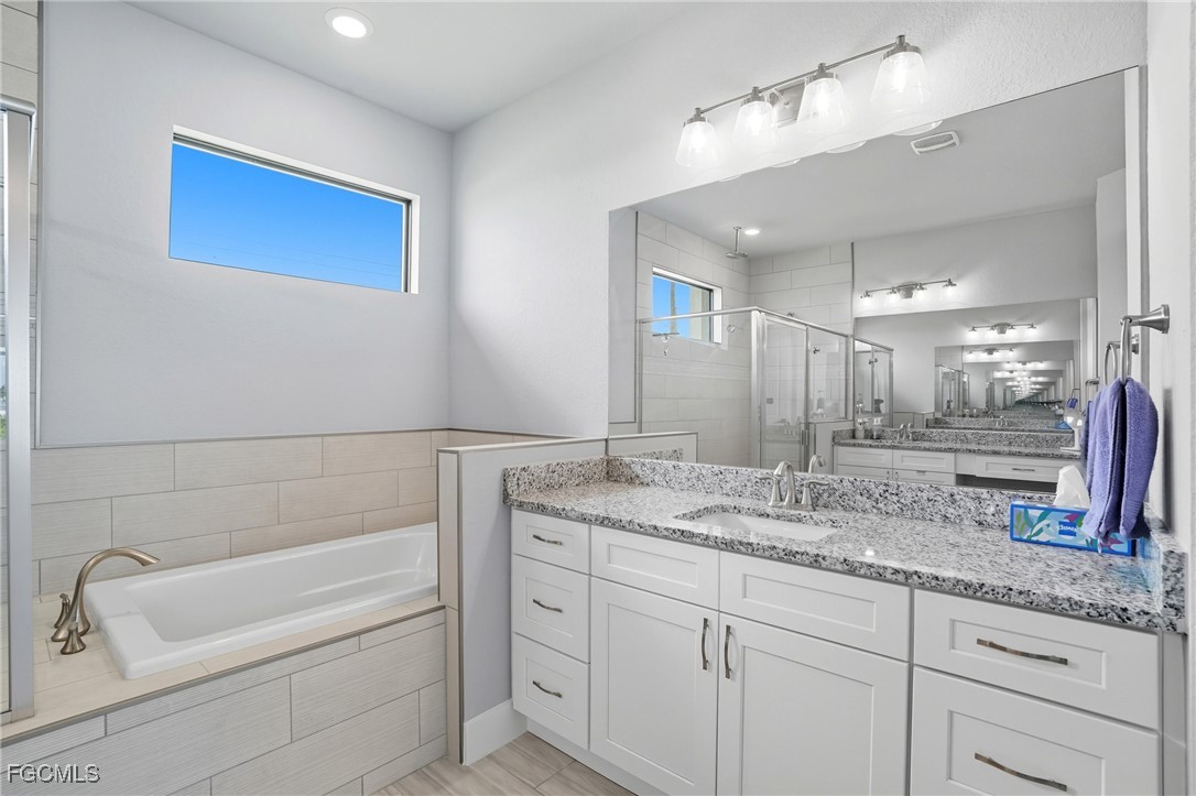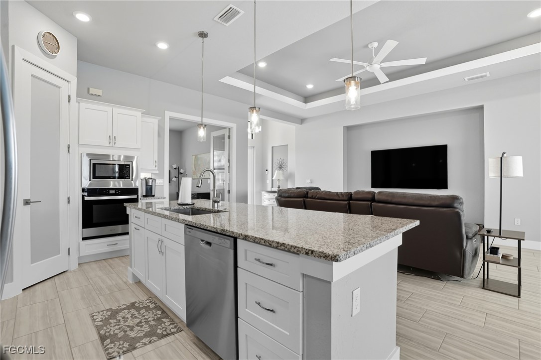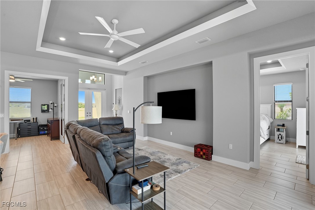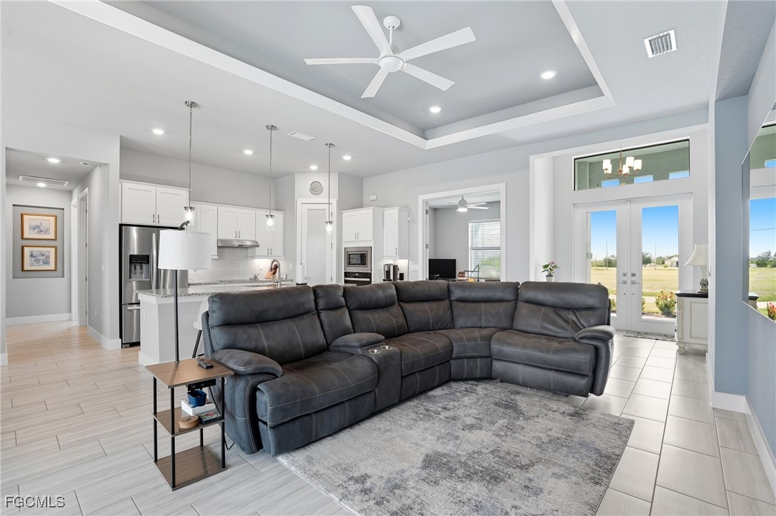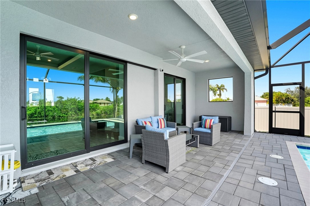 Skip the wait, stress, and hidden costs of building new—this exquisite pool home, completed just 10 months ago, is move-in ready and already includes features most new construction lacks: a privacy fence, whole-house reverse osmosis system, custom closet shelving, and a state-of-the-art security system. Set high and dry (not in a flood zone) on the shores of an intersecting freshwater canal, the property offers sweeping water views, a front-row seat to Florida’s abundant wildlife, and outstanding fishing right from your own backyard. Lush tropical landscaping, impeccable curb appeal, and a pavered driveway welcome you to this peaceful and serene retreat. Inside, modern tile floors flow seamlessly throughout the split, open-concept plan. The foyer opens to a light-filled den/office through elegant double doors, ideal for working from home or a flexible guest space. The luxurious master suite is a true retreat with lighted tray ceilings, dual walk-in closets, and a spa-style bath featuring a soaking tub, oversized walk-in shower, and separate vanities. Two additional bedrooms and a guest bath—with convenient direct pool access—are privately tucked away on the opposite side of the home. A large laundry room includes an additional full-size refrigerator, perfect for overflow or entertaining needs, leads you to the attached 2 car garage. At the heart of the home, the island kitchen blends style and function for effortless entertaining. A walk-in pantry with trendy frosted glass door keeps everything organized. White cabinetry with crown accents is paired with a chic, modern glass backsplash and gleaming granite counters. The expansive island is perfect for buffet-style meals or extra seating, and because it opens to the living and dining areas, the chef never misses a moment of the action. Nearly every room enjoys sweeping views of the pool and canal beyond. Step outside to your private oasis: a screened-in, in-ground swimming pool with a sun shelf, covered lanai, and spacious sunning area, all surrounded by a privacy fence and tropical landscaping. With 80 feet of waterfront, you can fish, launch your kayak, or simply relax and take in the view. For even more possibilities, the triple lot next door—with 120 additional feet of waterfront—is also available for purchase, offering space for a detached garage, guest home, private pickleball court, or simply extra privacy. This is modern Florida living at its finest—luxury, comfort, and endless opportunities all wrapped into one remarkable property.