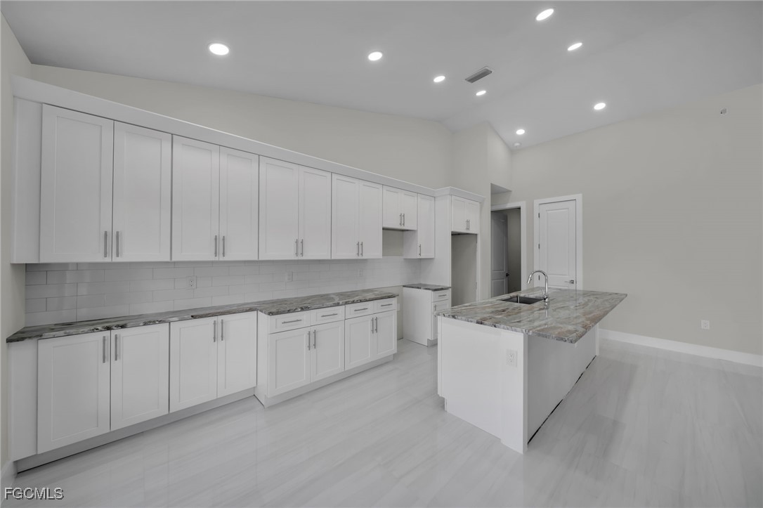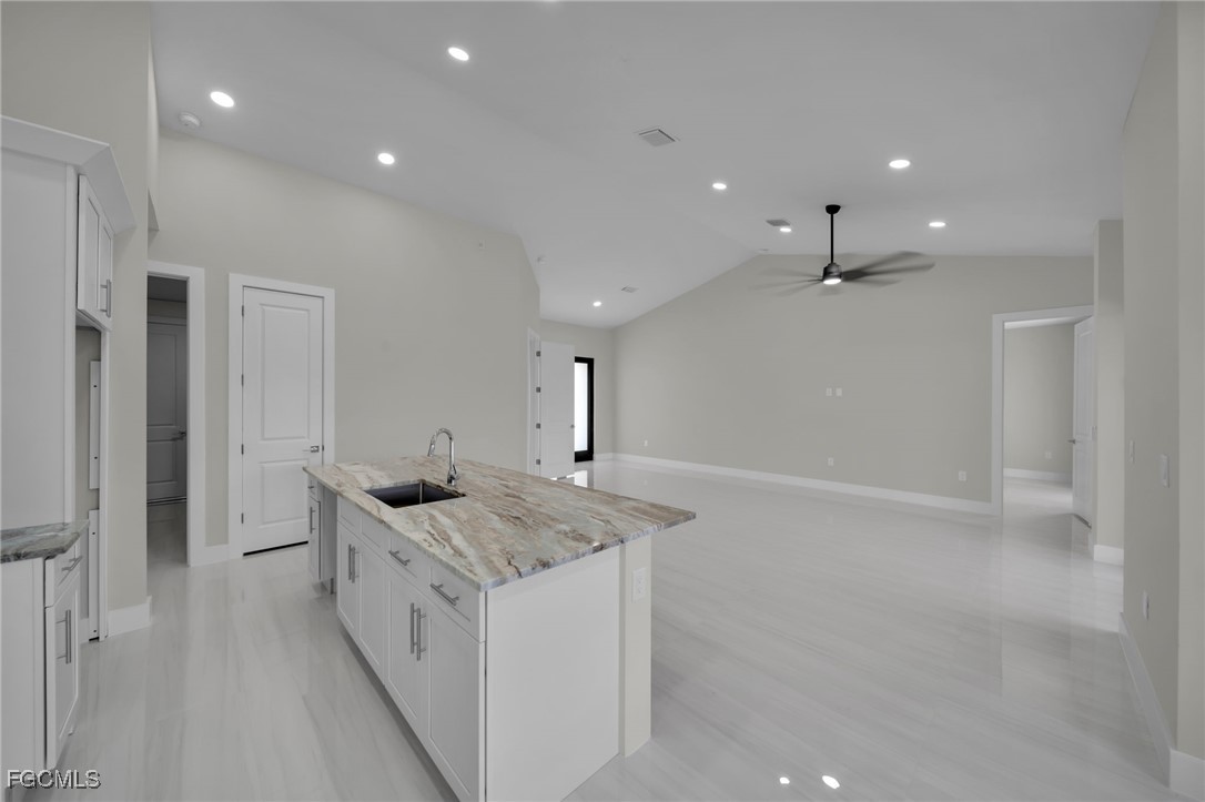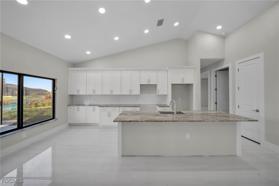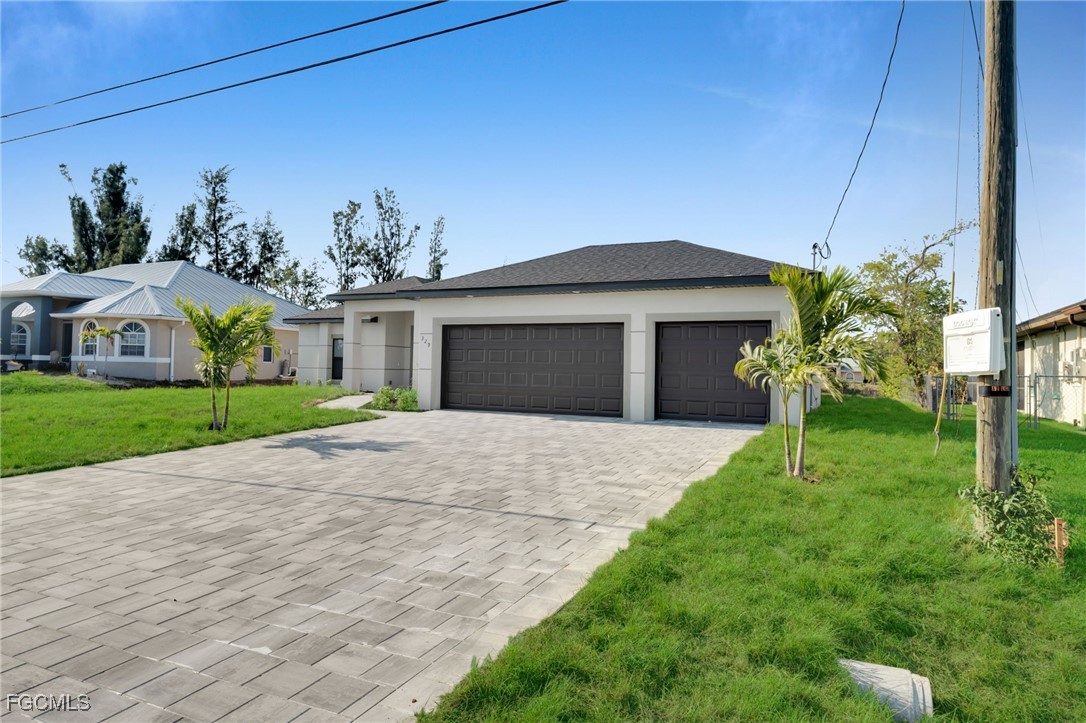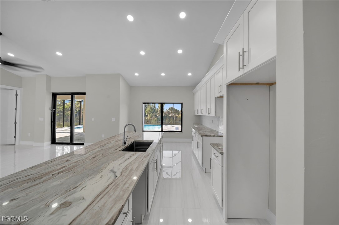 BEST PRICED NEW CONSTRUCTION WATERFRONT POOL HOME IN CAPE CORAL! CITY WATER! Experience luxury coastal living in this stunning 2025 new construction featuring 3 bedrooms + den, 2 bathrooms, and a 3-car garage. Enjoy 12’ ceilings, 8’ doors, and porcelain tile throughout. The modern kitchen boasts quartz countertops and sleek finishes.
