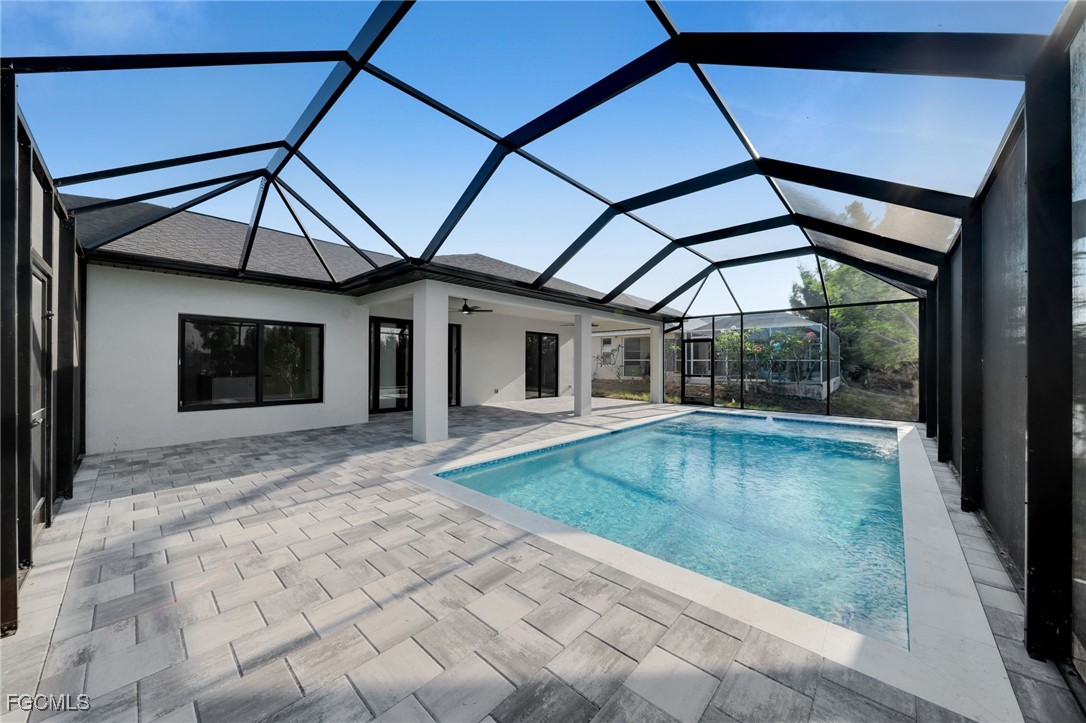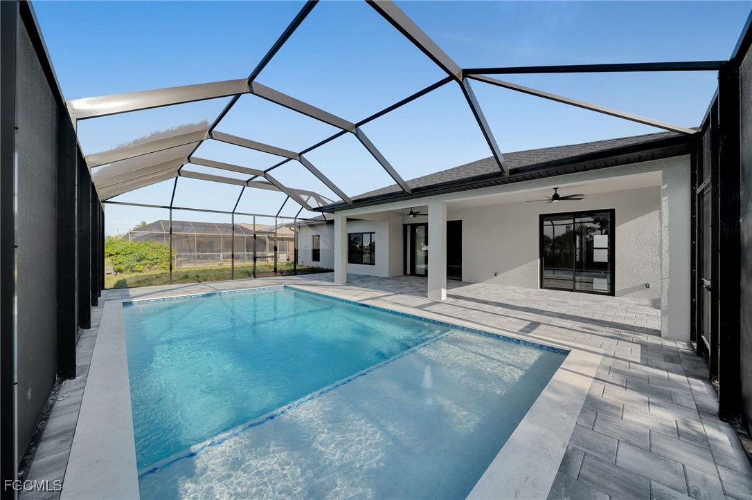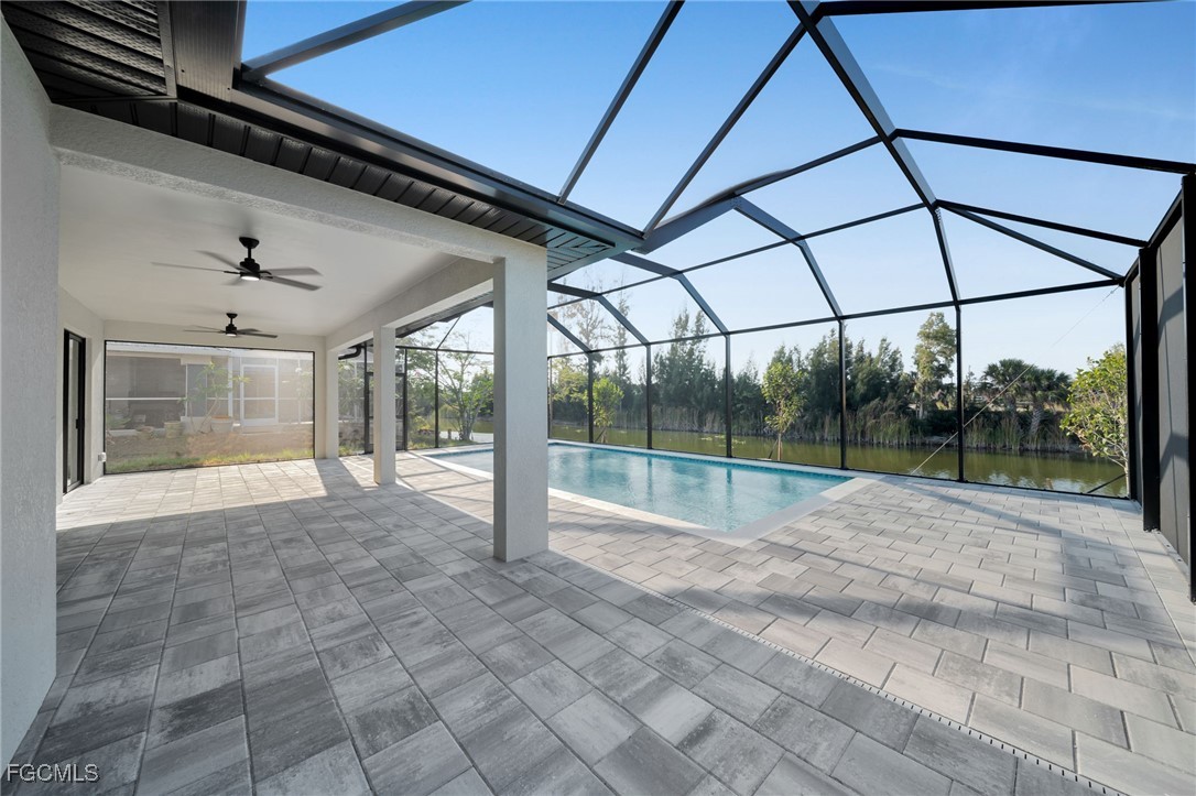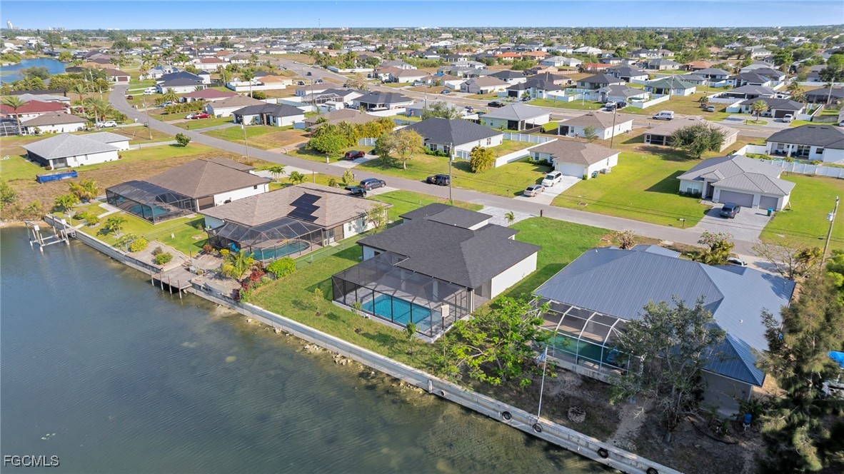 Relax in your 14x28 pool with screened lanai and pool cage, overlooking the water with a seawall in place. The spacious backyard and extra-large driveway offer comfort and convenience. All located in an amazing neighborhood in the heart of Cape Coral! Builder offering closing costs and 10 year warranty!