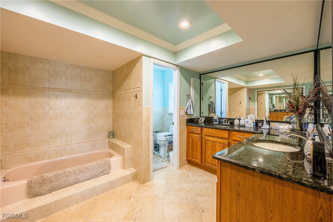 The generous primary bedroom features two walk-in closets and an ensuite bath with separate tub and shower. The thoughtful split floor plan provides privacy for guests, and the inside laundry room includes washer and dryer. The massive family room overlooks the water with windows across the entire back, providing abundant natural light and space for theater-style furniture.