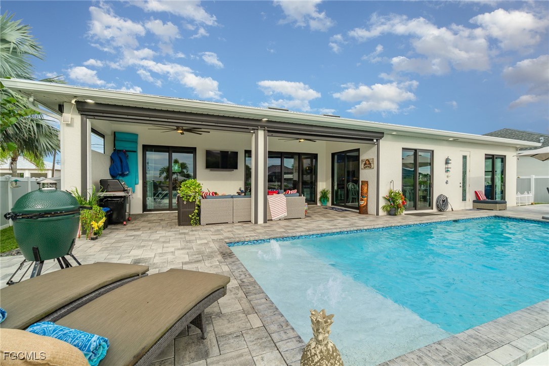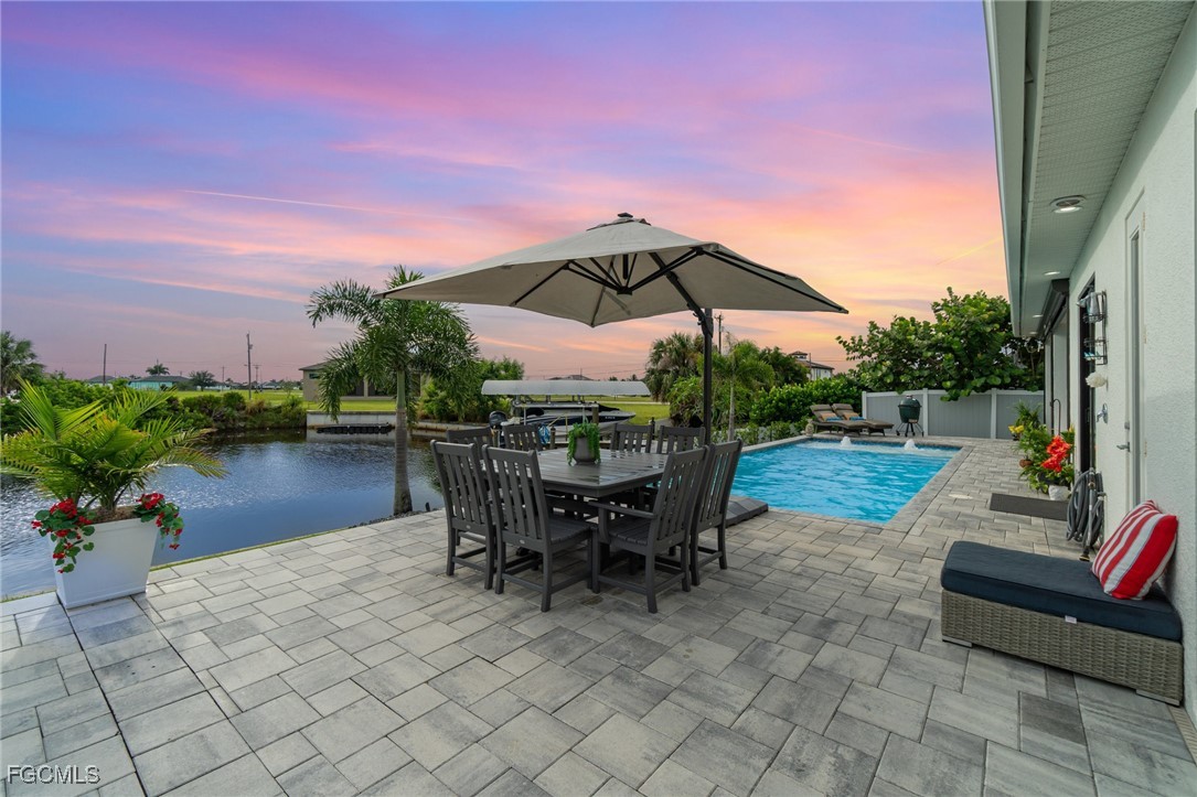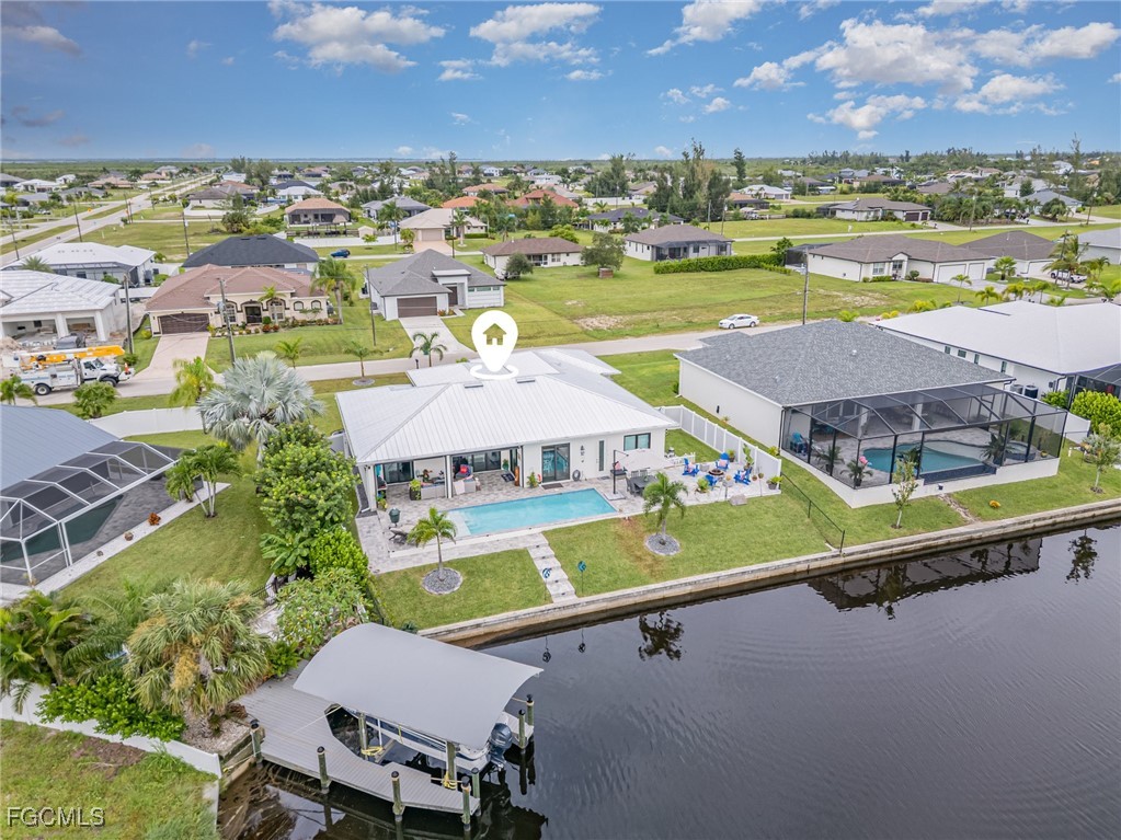 The lifestyle you’ve dreamed of is truly affordable in this immaculate 4 bedroom, 4 bath gulf access home pool home. With 3 ensuite bedrooms, including two with sliders to the lanai, this home is perfect for a family or entertaining guests. It could also be purchased with the optional furnishings so it could quickly be turned into a fantastic vacation rental property. The most important aspect when buying a new home is the safety and security features, and this home has it all including impact glass throughout, an upgraded 2023 50-year metal roof, roll down shutters to protect the lanai furnishings, whole home RO system and it is elevated higher than older homes and has a low-cost assumable flood insurance policy. The interior has all the features a discerning buyer is looking for. The double impact glass entry door with transom window above and three 8’ tall sliders across the back floods the home with natural light. The main living area with tall tray ceiling and crown molding, open to the kitchen with large four seat waterfall granite island on modern white cabinetry and spacious dining area combine to create a large open bright and airy feel in the main living area. The kitchen also includes a tiled backsplash, under cabinet lighting, a pantry closet and an upgraded 2 drawer French door refrigerator. You’ll find tile flooring and 8’ doors throughout the home including all the bedrooms. The spacious master suite will not disappoint with a large dual sink vanity, beautiful soaking tub and spacious walk-in shower. All bathrooms have modern white cabinetry, granite and custom walk in shower stalls. Two bathrooms have dual sink vanities. Even the huge laundry room has modern cabinetry and a large granite countertop with sink, plus a storage closet and a door leading to the large 3-car epoxy coated garage floor. It's the back yard that makes this home special. Step outside to a large, covered lanai and a massive open lanai. There is plenty of room for a dining area and a fire pit surrounding the beautiful pool with large sunshelf, and there is a pool bath and a fully fenced yard, great for the family pets, all sitting on a wide gulf access canal. Recent upgrades include a 2024 hot water heater, 2023 pool pump, 2023 exterior paint and a 2022 AC condenser. You will not find a better value gulf access home on the market.