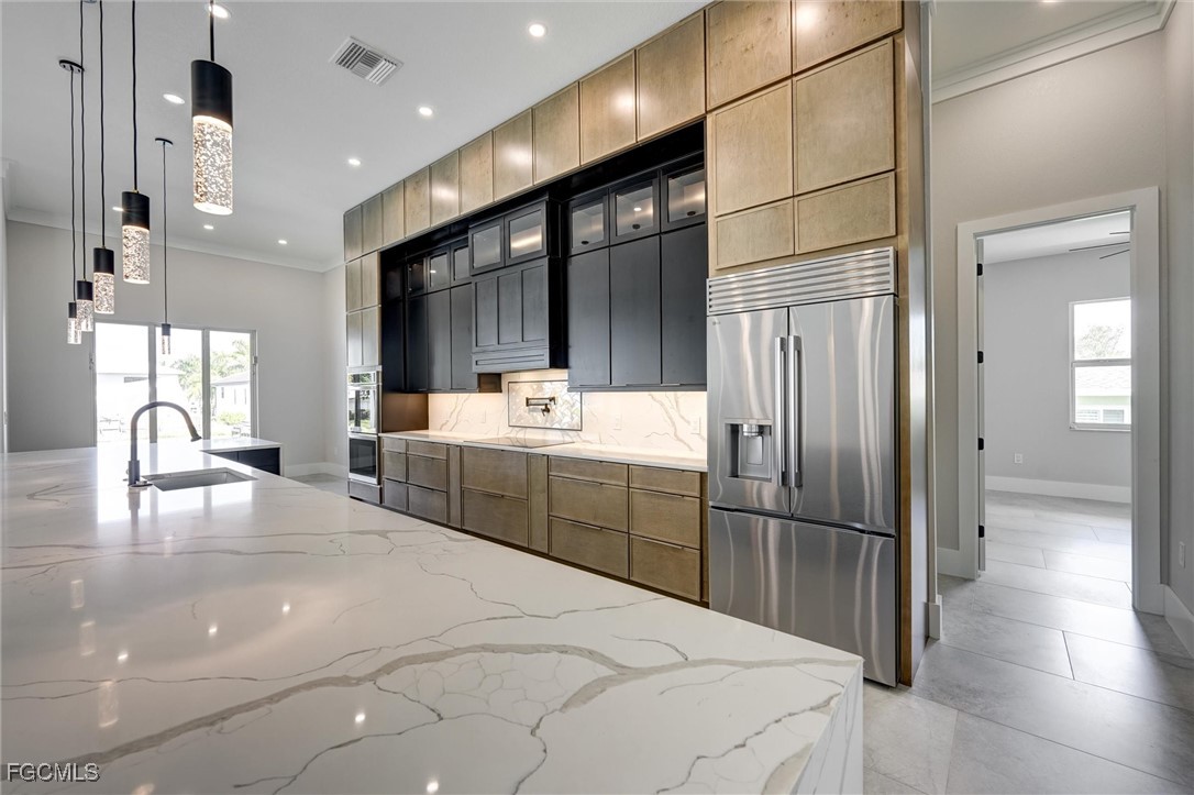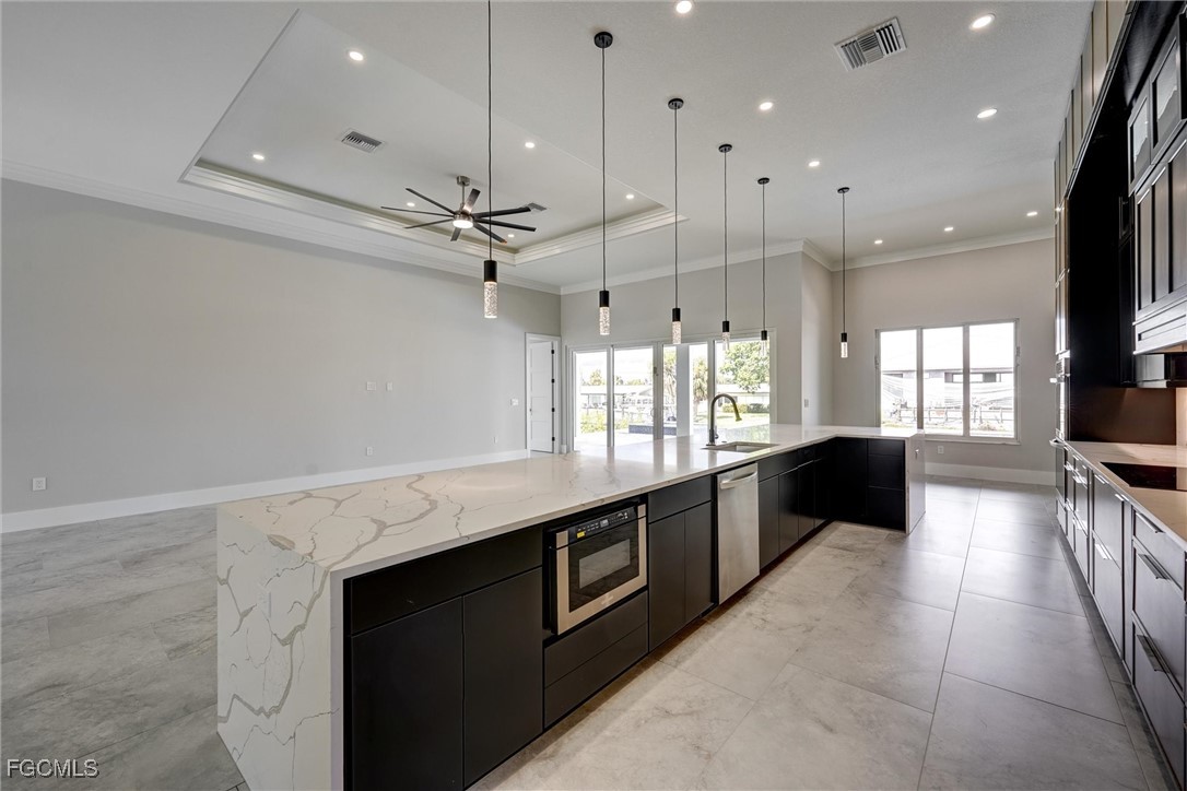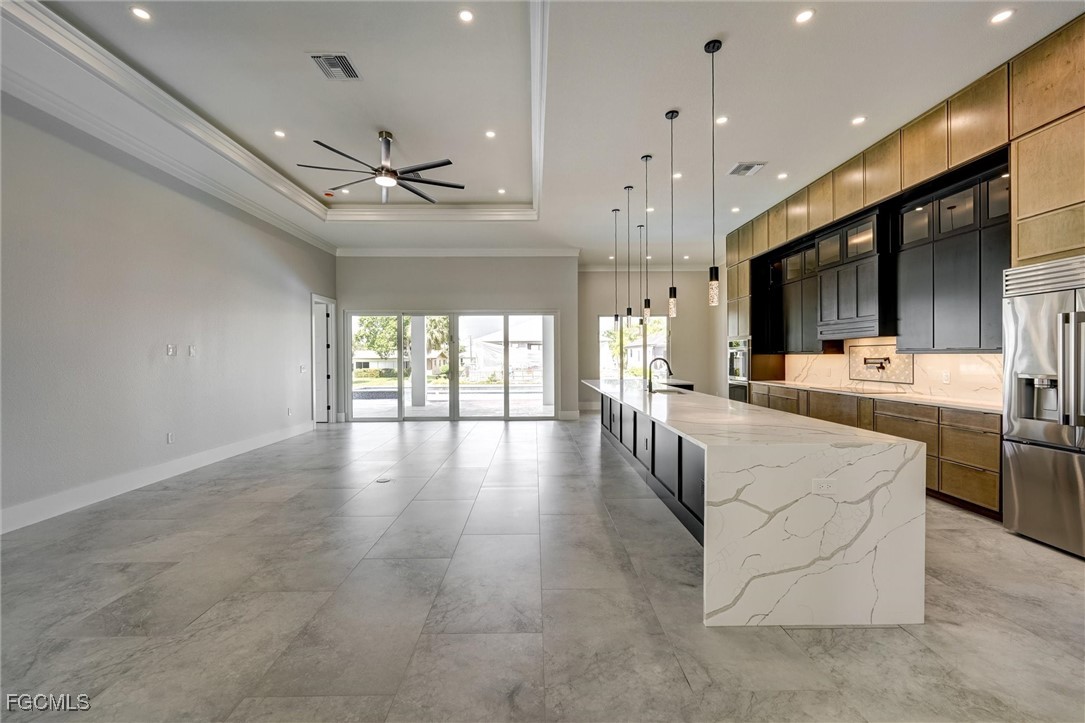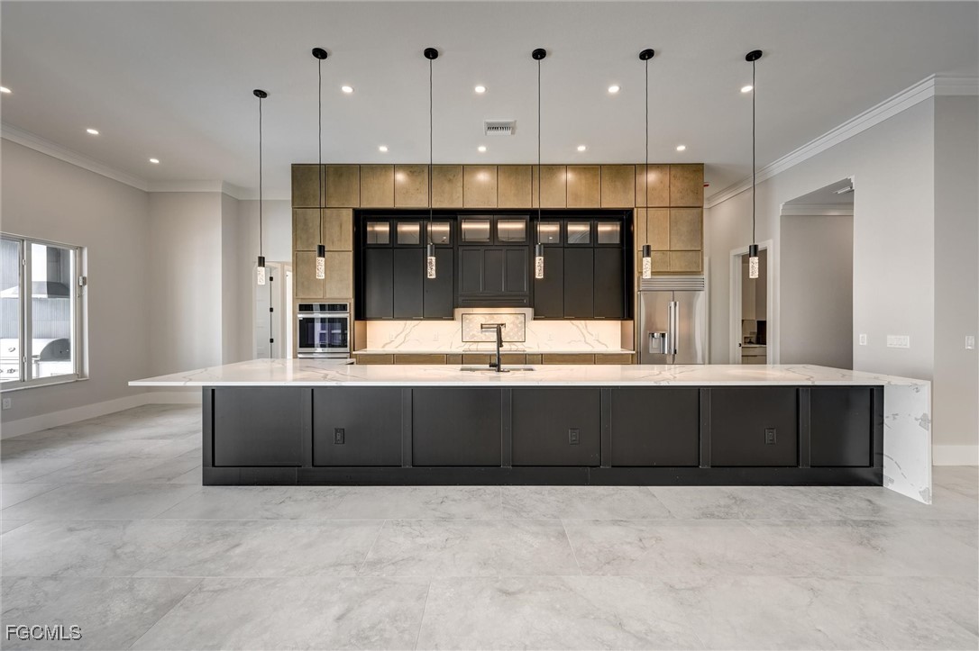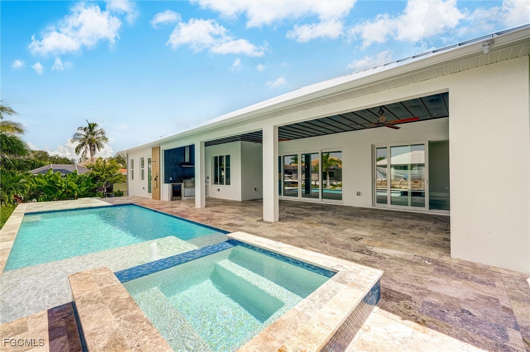 Welcome to 809 Miramar Ct Cape Coral! Incredible Custom Design from Local Cape Coral Custom Home Builder! This stunning custom-built home offers 4,409sq ft of luxurious space. Featuring 4 spacious bedroom, each with its own en-suite bathroom and walk in closet, this home ensures comfort and privacy for everyone. The heart of this home is a massive custom kitchen, perfect for entertaining. Step outside to the expansive lanai and enjoy the swimming pool with built-in hot tub. Then step down to the captain's walk with firepit, new elevated sea wall and direct sailboat access to the Gulf. Take a short walk out the front door to Cape Coral's Yacht Club. Additional features include High Efficient variable speed HVAC, High Efficient 65 Gallon Water Heater, Glass Wall office, Wet Bar, Spacious Laundry Room, Outdoor Kitchen. Available Options: Custom Dock, Smart Glass for Office, Frosted Glass covering for Front Door, Pool Cage or Railings for Pool. This home truly offers luxury and convenience!