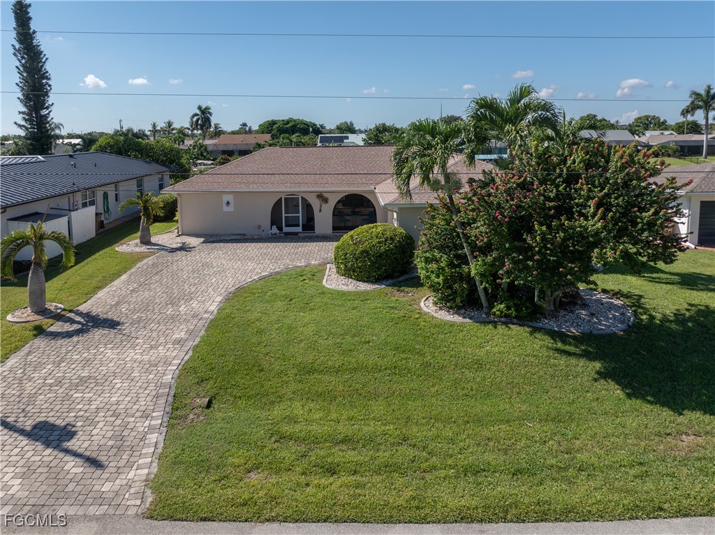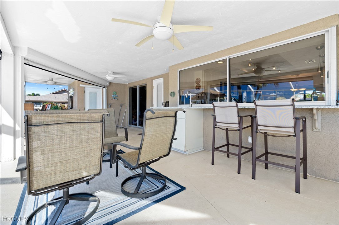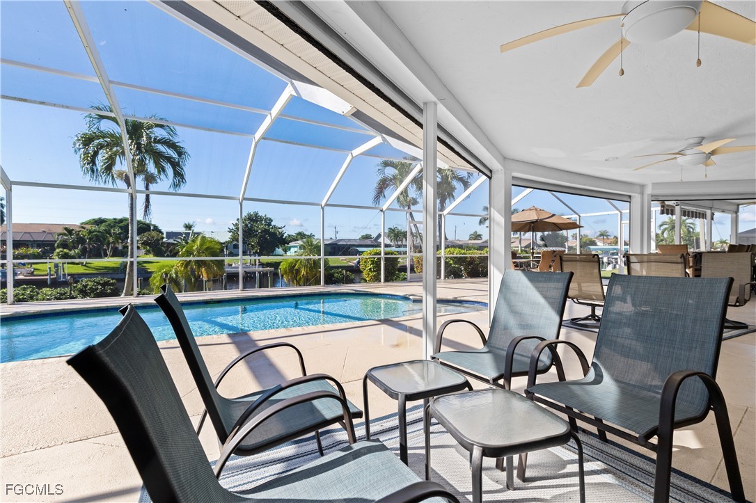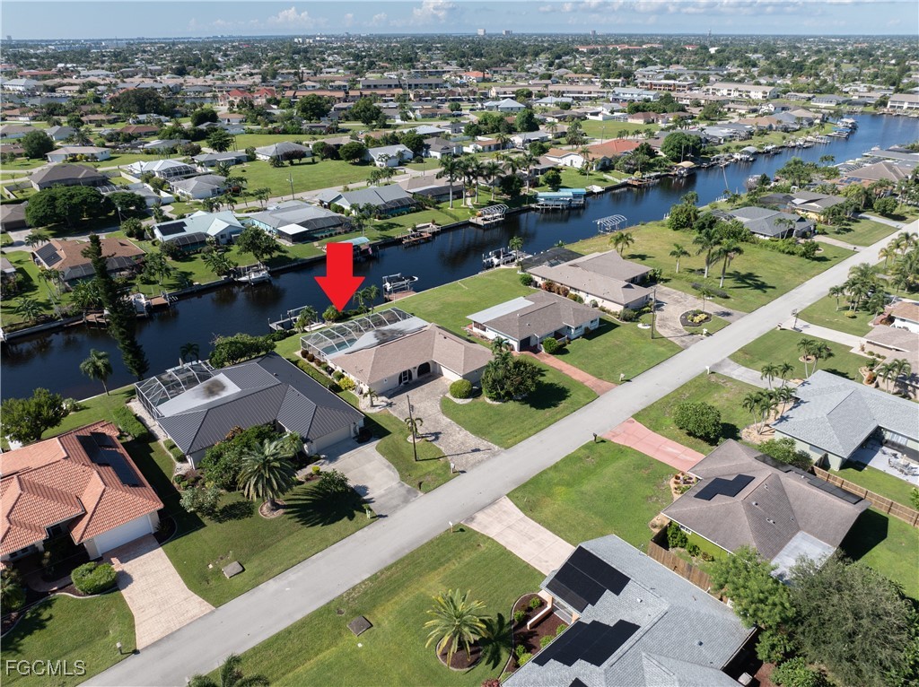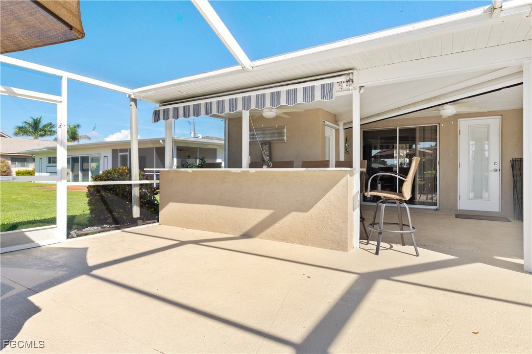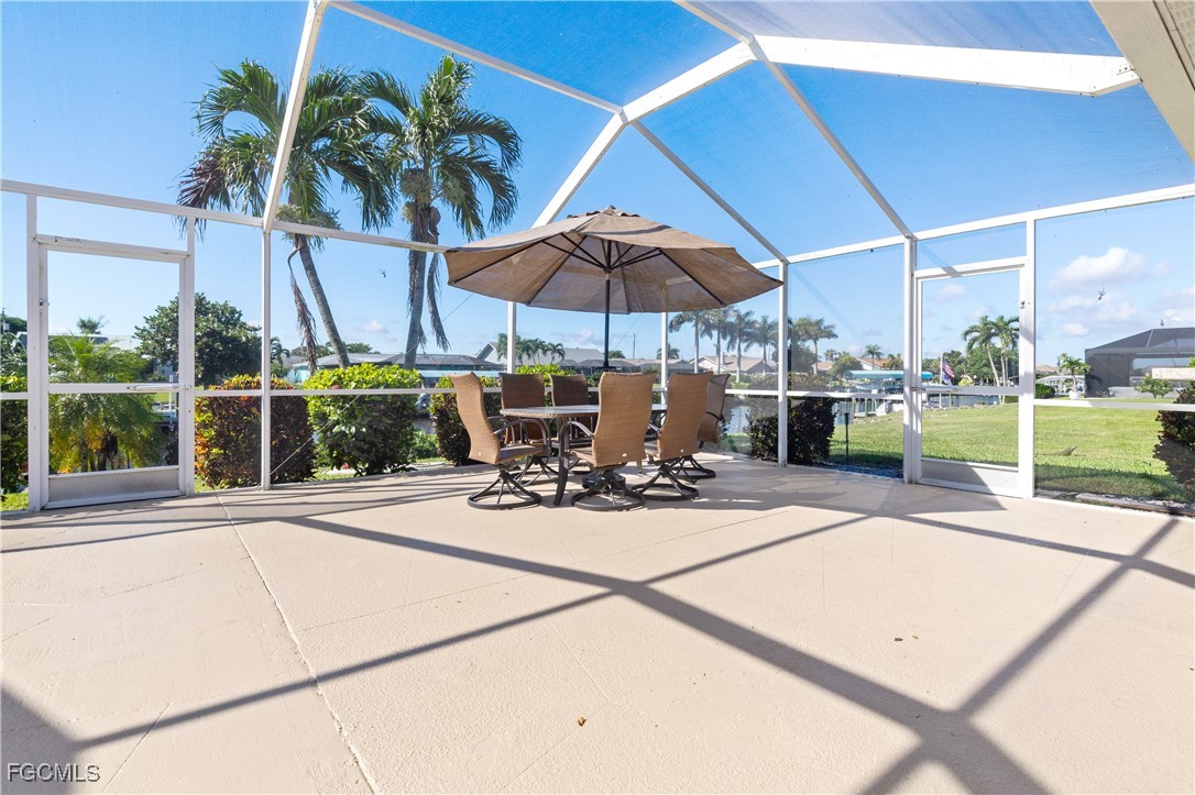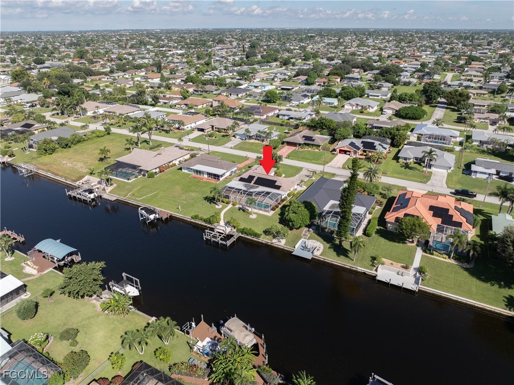 Your Gulf Access Retreat in SE Cape Coral! This home offers quick boating access to the River and Gulf with just one bridge. Peace of mind comes with being located in Flood Zone X, so flood insurance is not required. Inside, the inviting open floor plan is filled with natural light and showcases sought-after southern exposure overlooking a wide canal. The beautifully renovated kitchen is a true centerpiece with granite counters, an island accented by pendant lighting, stainless steel appliances including a 2023 induction range, and a large pass-through window to the lanai. The spacious master suite offers a huge walk-in closet and an updated bathroom with a tiled shower and modern vanity. Guest bedrooms are positioned on the opposite side of the home for privacy, sharing a stylishly updated bathroom. The outdoor living space is designed for authentic Florida enjoyment, featuring a generous screened lanai with both shaded areas and open spaces for sunning. An electric-heated pool with sun shelf invites relaxation, while the lanai’s fun bar area with retractable awning makes entertaining easy and enjoyable. Adding to the convenience is a dedicated pool bath, giving the home a total of three full bathrooms. Boaters will love the concrete dock with lift and wraparound dock, making days on the water effortless. Inside laundry adds everyday practicality, while thoughtful upgrades provide comfort and value throughout. Recent improvements include a new roof in 2023, solar panels in 2024, a new AC in 2021, and a new electric panel in 2021. The home is also wired for a generator and is equipped with electric and accordion shutters for peace of mind. Furniture is negotiable, and the prime SE Cape location places you near shopping, dining, downtown, and all the conveniences Cape Coral has to offer.