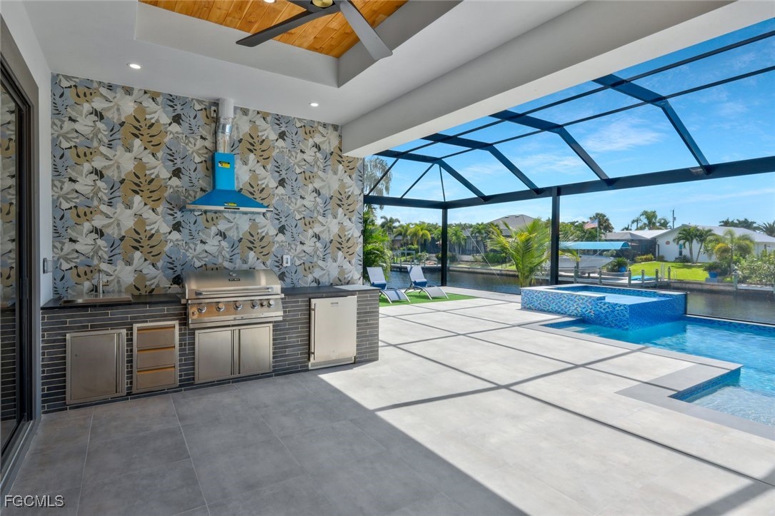 Additional features include smart-controlled ceiling fans, a 75-inch Samsung Frame TV, and high-quality construction throughout. The location offers close proximity to shopping, dining, and highly regarded charter schools. This is a safe, well-established neighborhood that highlights the best of Cape Coral living.