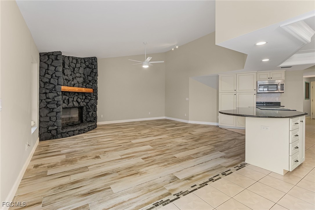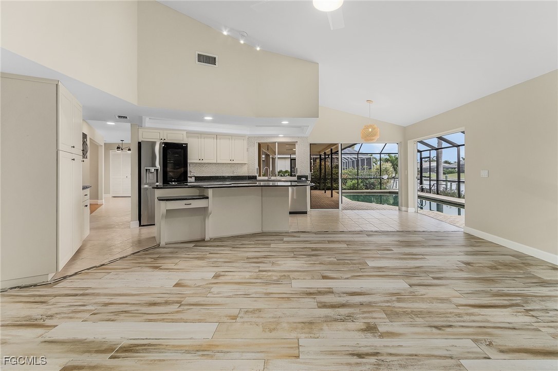 Welcome to your dream waterfront oasis! This spacious 3-bedroom, 2-bathroom, den/flex space, with a 3-stall Garage, is ideally situated on a Gulf access canal with south-facing rear exposure for the beautiful Florida Sunshine all day! Offering breathtaking water views and a tranquil atmosphere. The living and family rooms provide ample space for relaxation and entertainment. The split floor plan ensures that the master suite is a serene retreat, complete with a master bath boasting a solid surface finish and a large garden soaking tub – perfect for unwinding