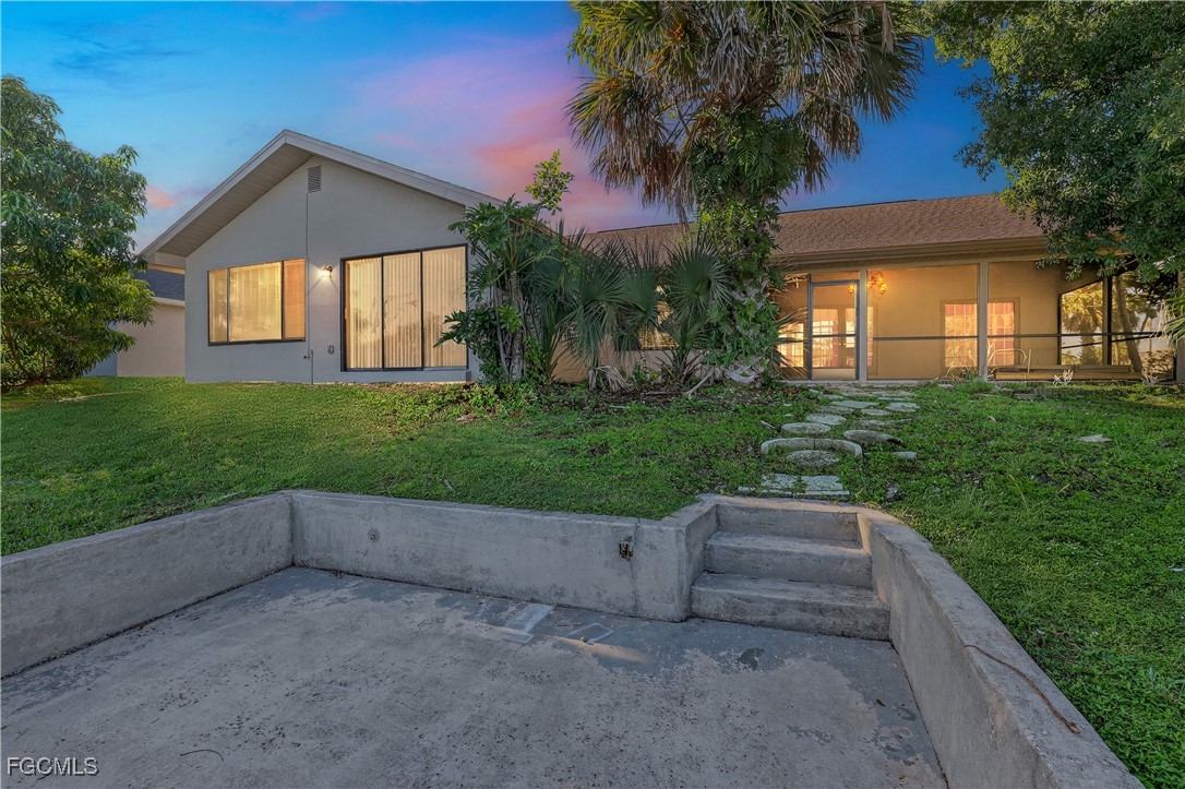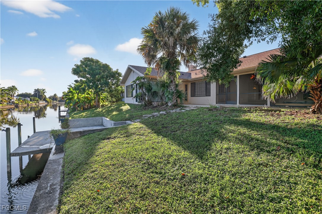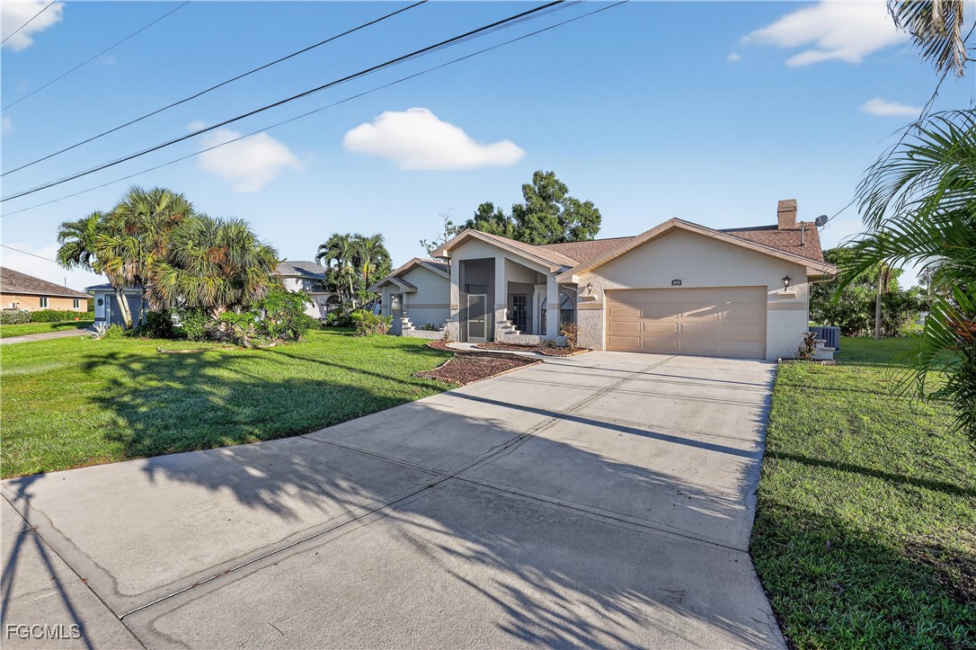 In the heart of Cape Coral you will find this stand out home located on a quiet canal.  This freshwater canal has a concrete dock, and the perfect spot to tie up your kayaks. Patio furniture will fit perfectly on the dock or maybe a fish cleaning area will be a better fit for you. From the water, take a walk through the backyard to the concrete patio, and a screened lanai with an exceptional entertaining area including a hot tub overlooking the canal.  This piece of paradise is so lovely, you may even forget to head inside to see the home.  Featuring 2 Owners suites with spacious bedrooms, roomy closets and outstanding ensuite baths, you will feel pampered every morning while you get ready for your day.  You'll find plush carpet and crisp tile throughout the home, a perfect balance between cozy and cooling.  Cuddle up in front of the fireplace with a blanket and a good book or head to the sunroom for a little sunshine on your face. It's the perfect place to put your green thumb to good use. Plants are the perfect addition. The kitchen is ready to make your life easier with a layout perfect for the budding chef in the family.  Enjoy a great flow with stainless appliances, tile backsplash, amazing prep areas, including a fabulous center island, and a pantry to hold all your small appliances. This home is an exceptional blend of interior and exterior living space leaving you happy to be home no matter what the weather. This 3 bedroom, 2 bath home has 2 stall garage ready to hold your tools, sports equipment and vehicles. Welcome Home!