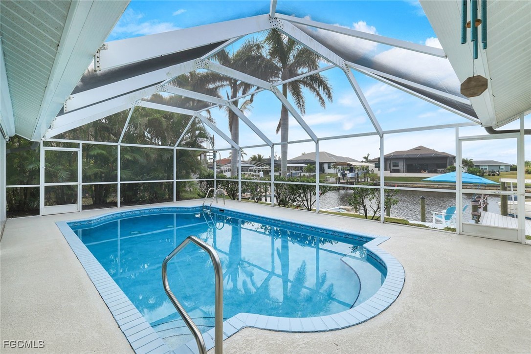 As you walk into this spacious 4-bedroom, 2 bath home you are greeted with high ceilings, lots of windows and glass doors allowing an abundance of natural light in to compliment the neutral color palette of this lovely home. Lightly lived in by the sellers and situated on a gulf access canal in NW Cape Coral with only 1 bridge and a quick boat ride to Miceli's restaurant and Matlacha, this home is sure to please. Whether you are enjoying a good book in the comfortable living room or cooking a meal in the kitchen while chatting with friends and family in the adjacent family room, you'll have views looking out to the pool and canal. Plenty of room to entertain on the lanai or enjoy a relaxing swim in the heated pool. A new roof, composite dock and 10k lb. lift were installed in 2022. Hurricane shutters for all the windows and roll down hurricane protection across the lanai. Picture yourself living here in your own personal paradise! Sun, swim and boating!