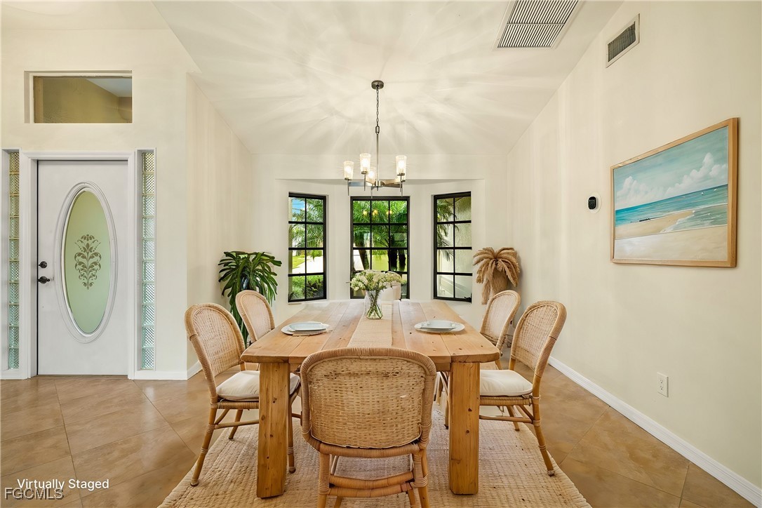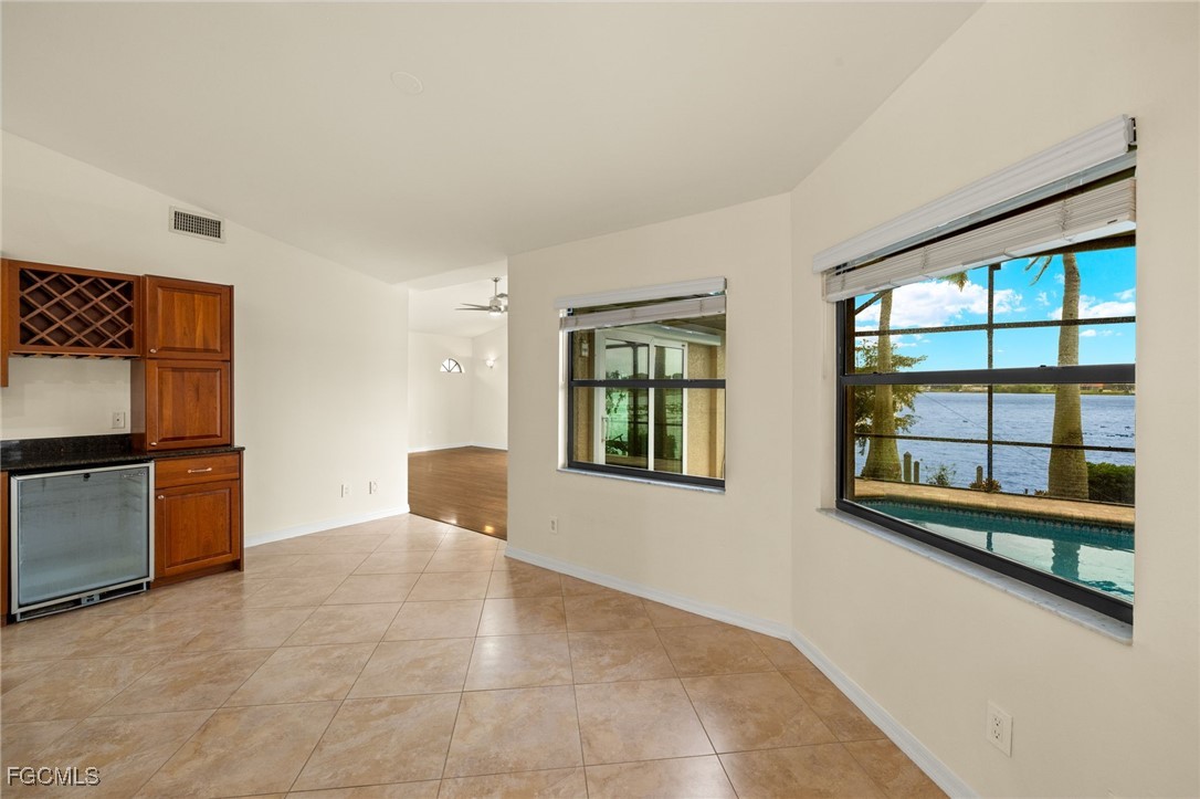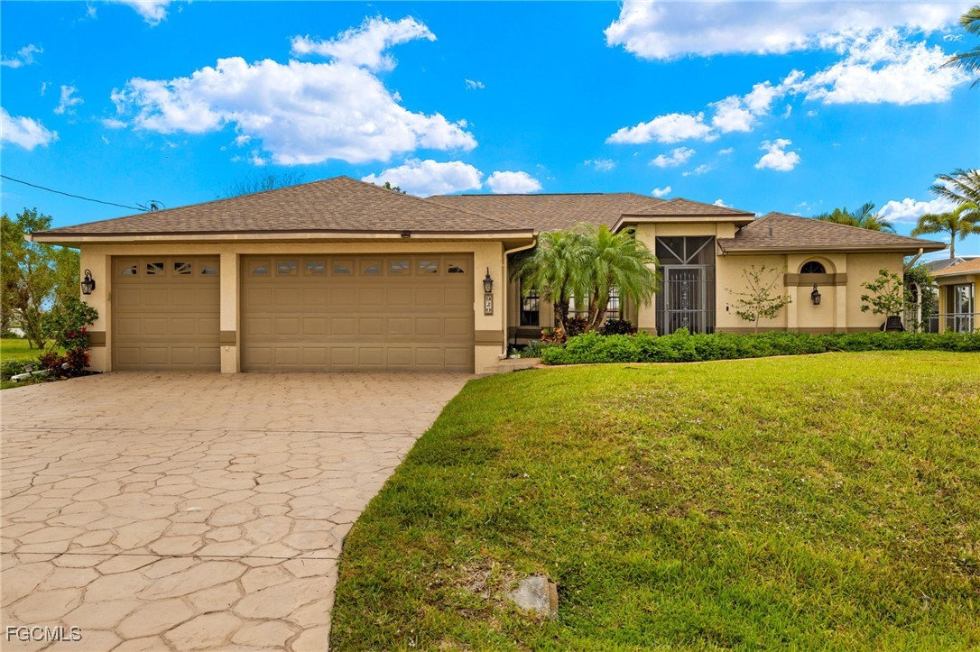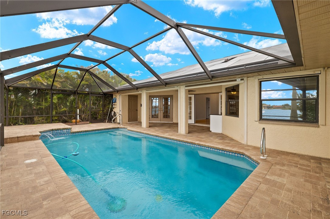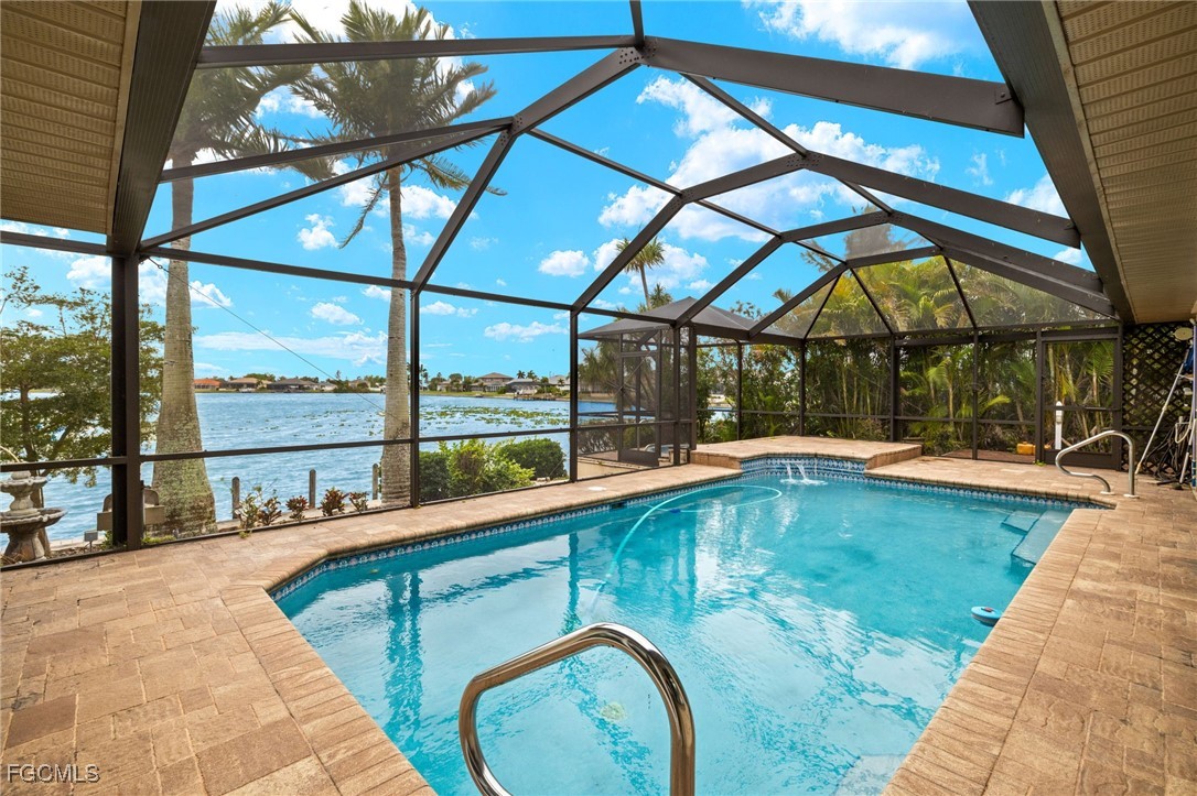 LARGE PRICE REDUCTION - Own Your Dream Home! Unlock the door to your future! Discover this exceptional 3-bedroom, 2.5-bathroom home with a 3-car garage, featuring a beautifully landscaped, solar-powered, and heated pool/spa. Enjoy significant savings on your electric bill while living in luxury. The spacious floor plan is perfect for entertaining, with a large kitchen that boasts a counter with sit-up stools and a cozy breakfast nook. The layout also includes both a family room and a living room, providing ample space for relaxation and gatherings. An outdoor pool bath adds to the convenience for your guests. Step outside to the large dock, ideal for soaking in the serene surroundings and fishing right from your backyard. The expansive pool and lanai area is perfect for entertaining or soaking up the sun. Located in the desirable SW Cape area, this home requires no flood insurance and is equipped with a new roof, new A/C, and a central whole-house vacuum. Experience access to numerous lakes and miles of canals for water skiing, jet skiing, boating, and fishing. Relax on the tree swing, swim, or unwind in the spa while enjoying nature's best views across the lake. This home is Certified Pre-owned including a warranty, and inspection. Don't miss out on your dream home today!