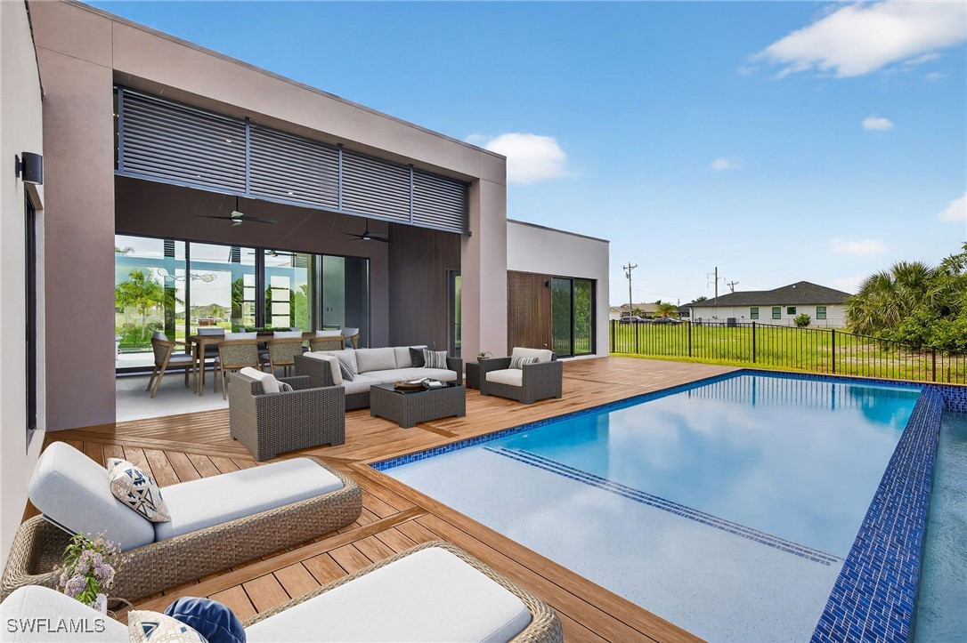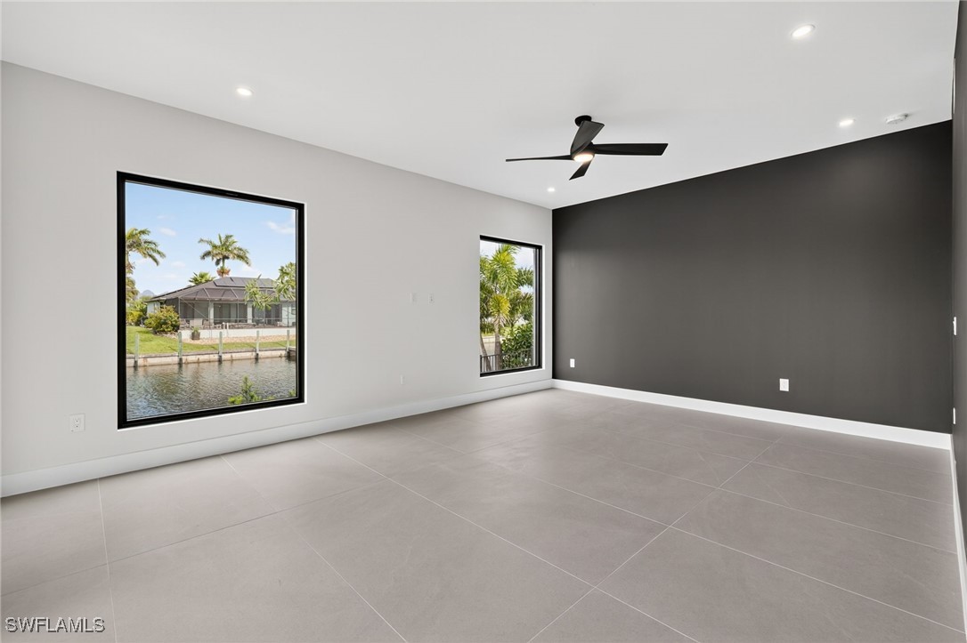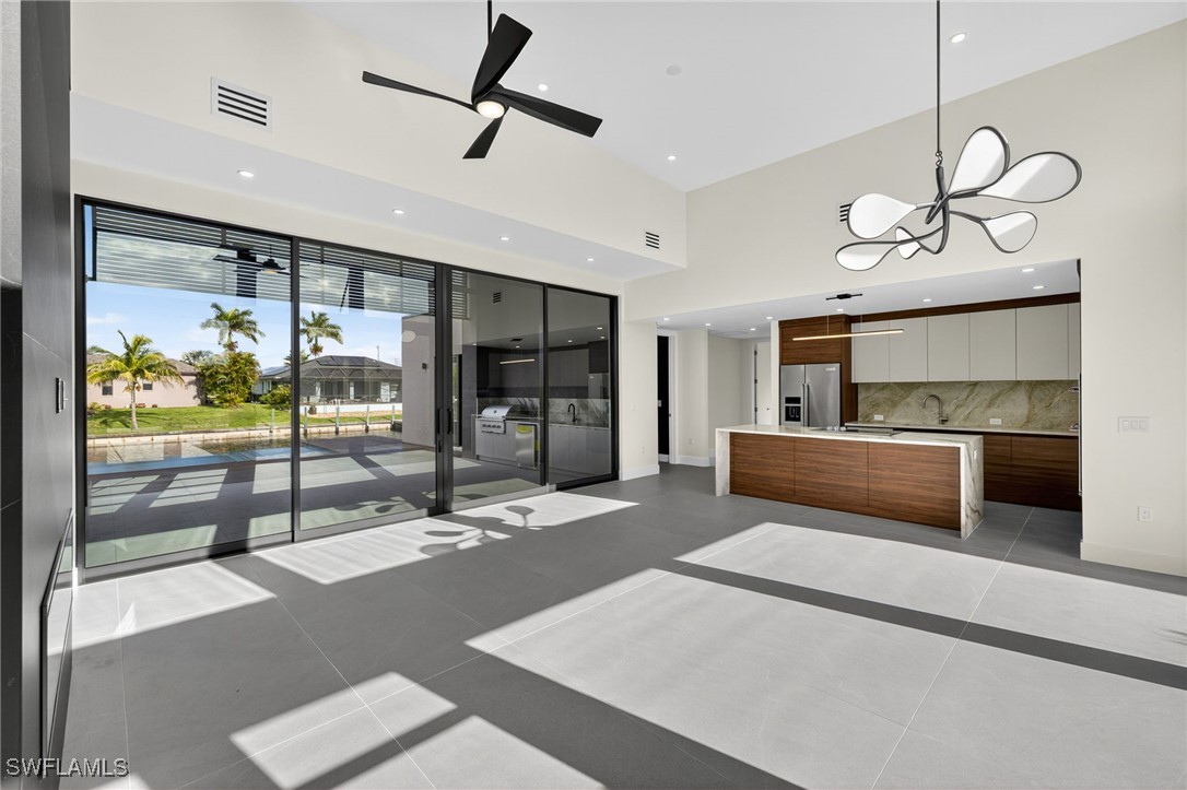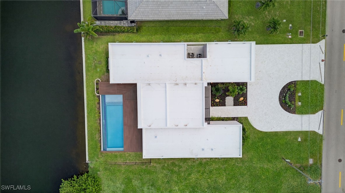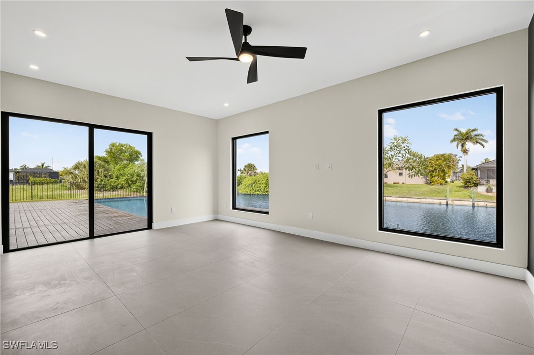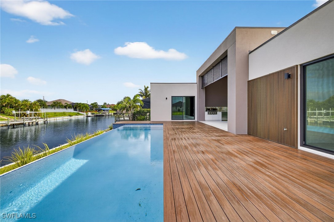You are cordially invited to a private showing of the sophistically modern New Brand - Move-in-Ready - Waterfront Luxury single family residence located at 2608 SW 20th Ave in beautiful SW Cape Coral, Florida. Award winning architect included every element to reflect thoughtful upscale living including generously sized 4 bedrooms, an office with a private entrance, and 4 full size bathrooms. In addition to the primary suite, there are two guest bedrooms with full size bathrooms - perfect for visitors, multigenerational households, or AirB&B accommodations. The 4th full bathroom has access to the pool area. Functionality and impressive aesthetic appeal - perfection. His & her walk-in closets and vanities in the primary suite. Custom solid wood modern contemporary cabinetry with slow close doors and drawers. Large kitchen island with waterfall edges, and a 36" cooktop with backdraft venting. Quartzite leather-finish countertops. Top quality interior KitchenAid kitchen and laundry room appliances and Coyote appliances in the summer kitchen. Recognized lighting designer chose the modern light fixture package, including Volare dining chandelier with SkyX mounting. Custom wood closet organizers. Custom build-in wardrobe cabinet. Whole-house interior flooring: Italian 32” X 72” porcelain Burlington Cream. Exterior tile: Italian 24” X 48” anti-slip Burlington cream. Natural stone slab accent walls spotlight the primary suite Roman tub and the living room TV/fireplace accent wall. Upgradable smart home amenities including automated window treatments - premium brands: Lutron • Bandalux • Ubiquiti. Expansive hurricane resistant sliding glass doors and windows flood the open concept main living area with natural light, for seamless indoor-outdoor integration to your tropical oasis; where you’ll experience an average of 265 sunny days a year and a sultry average of 90 degree temperatures during the Spring and Summer months. Interior laundry room. Oversized two car garage. Upgraded landscape package and front entry courtyard water feature. Marble paver driveway. Exterior accent walls, lanai ceiling, and pool decking: wood composite European Norwegian Brazilian IPE tech deck and grooved siding. Relax in the cool blue pool water, an infinity edge, and tanning shelf. Exterior pre-colored stucco finish to ensure consistent color throughout and offer long-lasting fade-resistant coloration. The structural construction exceeds the building code with a 175MPH wind rating, instead of the code required 160MPH wind rating. No HOA fees. High speed internet available. Centralized utilities. The home is being partially staged. Furniture is negotiable. Whether you’re an angler or a boater, you’ll have stellar access to miles of winding canals, the Caloosahatchee River, and the Gulf of America from your backyard for some of the best boating and fishing opportunities in the State of Florida. You're a short drive away from beaches, dining, and shopping.