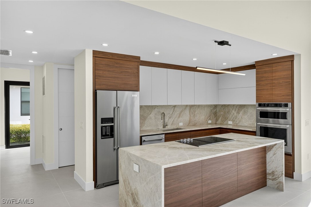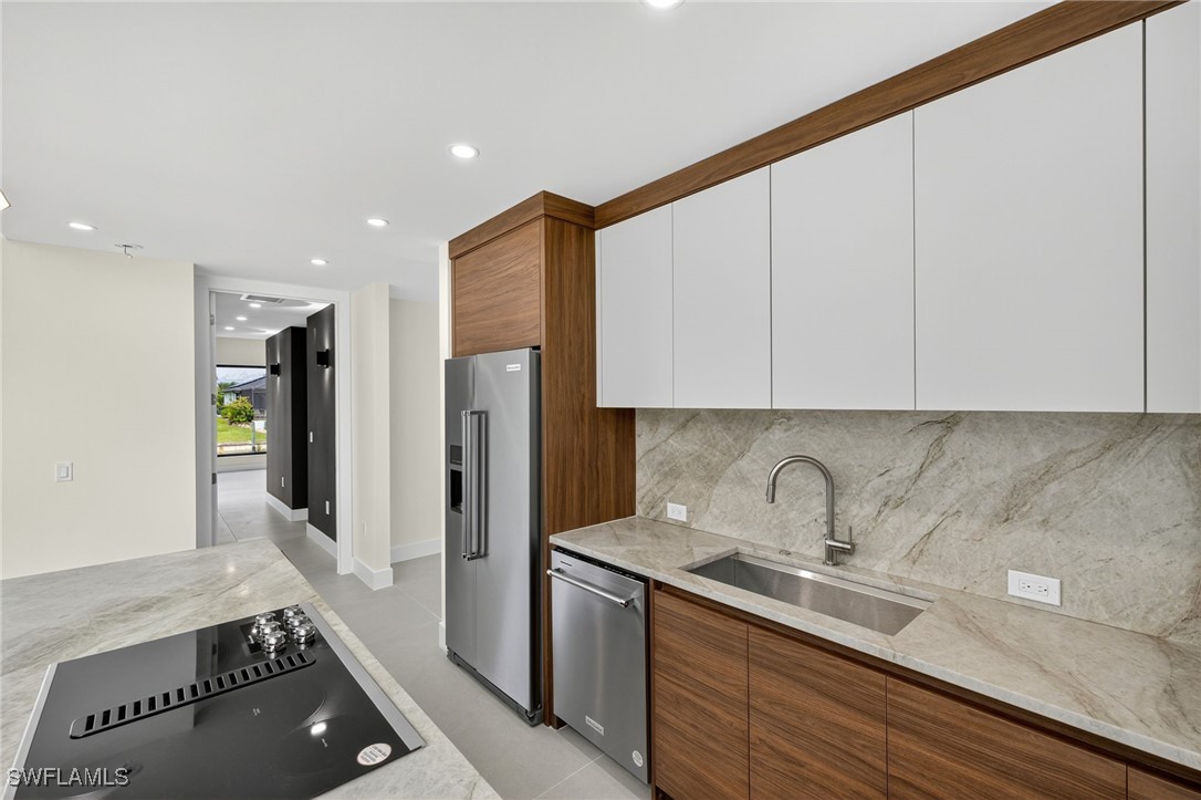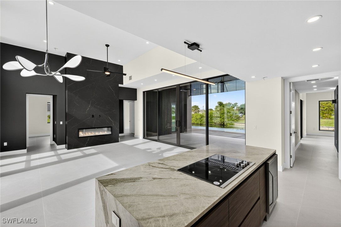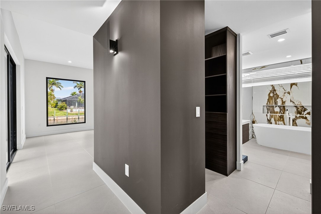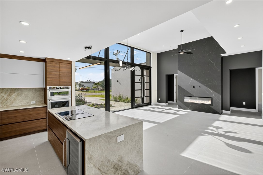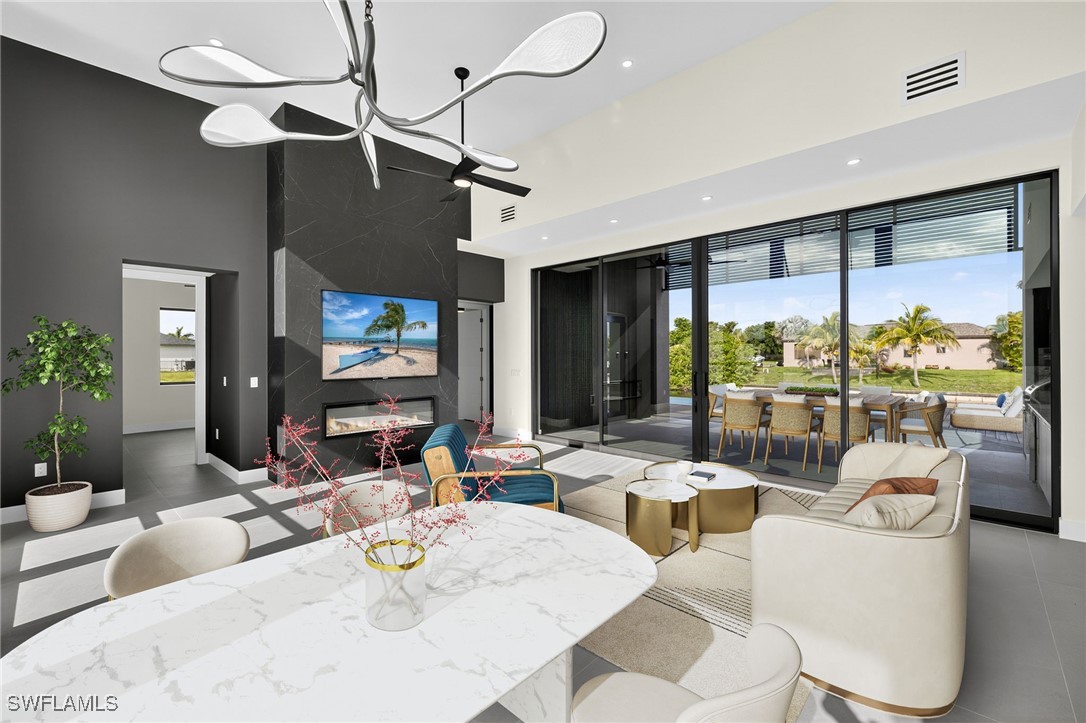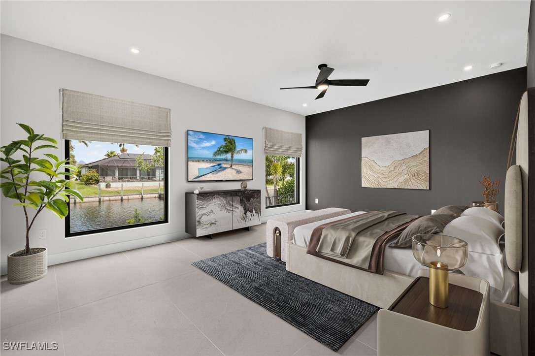 You are cordially invited to a private showing of the sophistically modern New Brand - Move-in-Ready - Waterfront Luxury single family residence located at 2608 SW 20th Ave in beautiful SW Cape Coral, Florida. Award winning architect included every element to reflect thoughtful upscale living including generously sized 4 bedrooms, an office with a private entrance, and 4 full size bathrooms. In addition to the primary suite, there are two guest bedrooms with full size bathrooms - perfect for visitors, multigenerational households, or AirB&B accommodations. The 4th full bathroom has access to the pool area. Functionality and impressive aesthetic appeal - perfection. His & her walk-in closets and vanities in the primary suite. Custom solid wood modern contemporary cabinetry with slow close doors and drawers. Large kitchen island with waterfall edges, and a 36" cooktop with backdraft venting. Quartzite leather-finish countertops. Top quality interior KitchenAid kitchen and laundry room appliances and Coyote appliances in the summer kitchen. Recognized lighting designer chose the modern light fixture package, including Volare dining chandelier with SkyX mounting. Custom wood closet organizers. Custom build-in wardrobe cabinet. Whole-house interior flooring: Italian 32” X 72” porcelain Burlington Cream. Exterior tile: Italian 24” X 48” anti-slip Burlington cream. Natural stone slab accent walls spotlight the primary suite Roman tub and the living room TV/fireplace accent wall. Upgradable smart home amenities including automated window treatments - premium brands: Lutron • Bandalux • Ubiquiti. Expansive hurricane resistant sliding glass doors and windows flood the open concept main living area with natural light, for seamless indoor-outdoor integration to your tropical oasis; where you’ll experience an average of 265 sunny days a year and a sultry average of 90 degree temperatures during the Spring and Summer months. Interior laundry room. Oversized two car garage. Upgraded landscape package and front entry courtyard water feature. Marble paver driveway. Exterior accent walls, lanai ceiling, and pool decking: wood composite European Norwegian Brazilian IPE tech deck and grooved siding. Relax in the cool blue pool water, an infinity edge, and tanning shelf. Exterior pre-colored stucco finish to ensure consistent color throughout and offer long-lasting fade-resistant coloration. The structural construction exceeds the building code with a 175MPH wind rating, instead of the code required 160MPH wind rating. No HOA fees. High speed internet available. Centralized utilities. The home is being partially staged. Furniture is negotiable. Whether you’re an angler or a boater, you’ll have stellar access to miles of winding canals, the Caloosahatchee River, and the Gulf of America from your backyard for some of the best boating and fishing opportunities in the State of Florida. You're a short drive away from beaches, dining, and shopping.