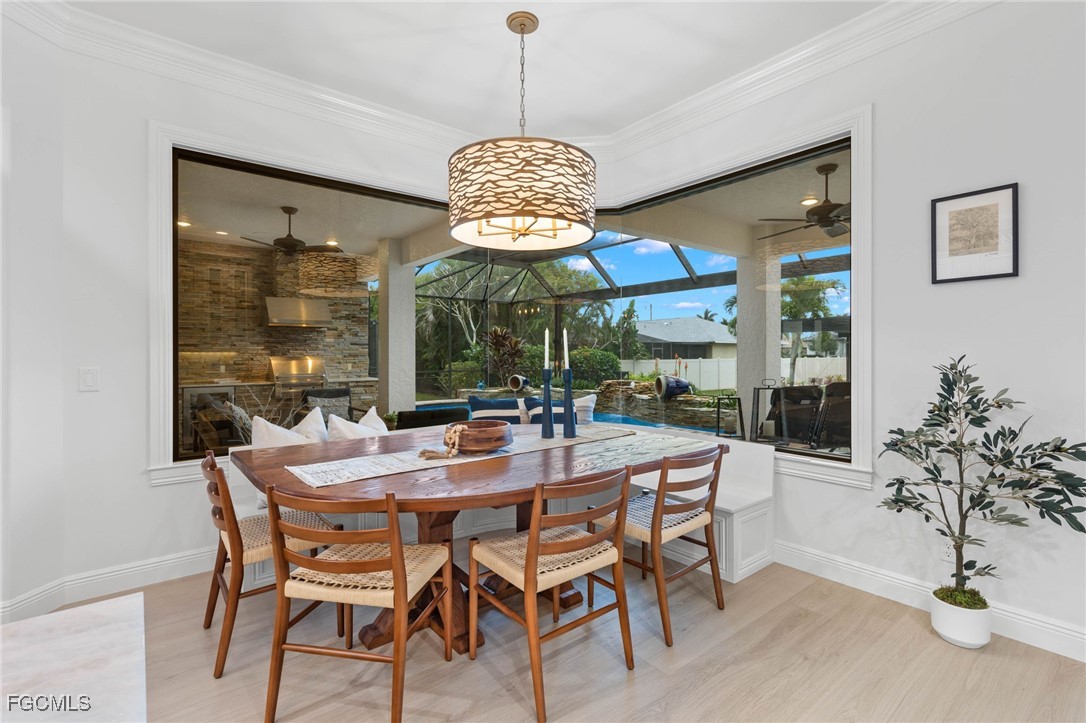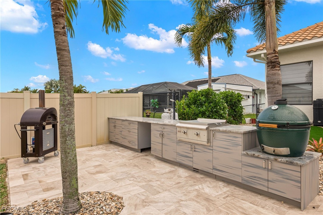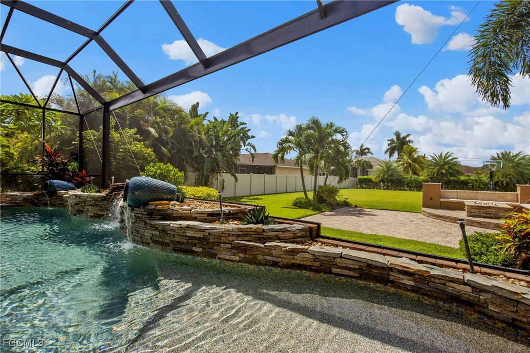 LUXURY. LIFESTYLE. LEISURE. This CUSTOM-DESIGNED masterpiece was created with extraordinary attention to detail, crafted to a level of quality and finish rarely seen at this price point. With more than 2,800 square feet of pure perfection, this 3 BEDROOM + DEN, 2.5 BATH home was COMPLETELY REMODELED in 2023 and reimagined for today’s buyer who expects everything. From the moment you enter, you’ll see the difference in the CRAFTSMANSHIP—SPECIALTY CEILINGS soaring from 10’ to 16’, DESIGNER MILLWORK, and finishes chosen for both elegance and endurance. The kitchen is a SHOW-STOPPING GOURMET SPACE with CAMBRIA QUARTZ counters and a RIVERSTONE QUARTZITE island. Hidden THERMADOR appliances, a COMMERCIAL-GRADE HOOD, built-in oven, INDUCTION COOKTOP, and a pot filler make this the KITCHEN OF DREAMS. The BUTLER’S PANTRY is anchored by a SUB-ZERO 70-BOTTLE WINE CHILLER, THERMADOR CAPPUCCINO MAKER, and a THREE-WAY WATER DISPENSER delivering sparkling, hot, and chilled water on demand—every detail designed for elevated living and effortless entertaining. Even the converted den has been elevated—now a LUXE LAUNDRY SUITE complete with CUSTOM PET KENNELS and a PET FOOD FRIDGE. (Yes—even FIDO lives the high life here!) The PRIMARY SUITE pampers with a SPA-LIKE BATH—6’ SOAKING TUB, walk through shower and POLISHED MARBLE FLOORS that elevate the sense of LUXURY. Technology lovers will swoon over the SMART AUTOMATION SYSTEM, EV CHARGER plus 2nd pre-wire, GENERATOR HOOK-UP and audio/video/security system. IMPACT GLASS WINDOWS and DOORS throughout, reinforced by NO PRIOR FLOODING and LOW FLOOD INSURANCE (just $1,500/year), bring ultimate peace of mind. And then there’s the OUTDOOR EXPERIENCE—where this home shifts into overdrive. A CUSTOM BEACH-ENTRY HEATED SALTWATER POOL with WATERFALLS is only the beginning. Host EPIC gatherings with TWO OUTDOOR COOKING STATIONS, FIRE BOWLS, FIREPIT and PUTTING GREEN. The PRO-TILED SPORTS COURT with an ADJUSTABLE NET is designed for VERSATILITY—customize for BASKETBALL, VOLLEYBALL, PICKLEBALL and more. With its PROFESSIONAL-GRADE FLOORING and flexible setup, it’s the ultimate spot where kids and their friends will always want to HANG OUT. This BACKYARD is nothing short of a PRIVATE RESORT. Practical perks abound: TWO BRAND-NEW HVAC SYSTEMS (2023), WHOLE-HOUSE WATER FILTRATION, BUG MISTING SYSTEM, AC GARAGE with 581 SF, VAPOR FIREPLACE, FRESH INTERIOR/EXTERIOR PAINT and EXTENSIVE LIGHTING inside and out. In a city known for cookie-cutter homes, this HIGH-END CUSTOM BUILD stands apart—crafted for those who expect individuality and distinction. All of this in a PRIME SW CAPE CORAL LOCATION, close to waterfront dining, boating, shopping, and the highly rated Oasis Charter Schools K–12. Some homes are built to be admired—this one is built to be lived in and loved. A property both worthy of the pages of ARCHITECTURAL DIGEST and of everyday enjoyment. Private showings available by appointment—come experience the lifestyle for yourself.