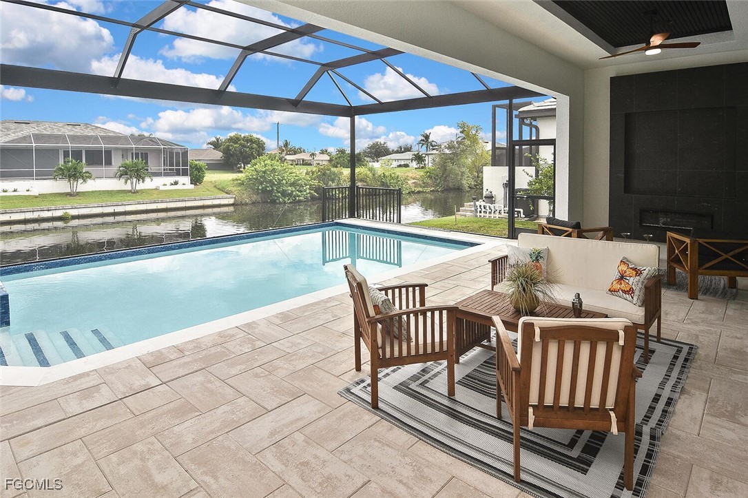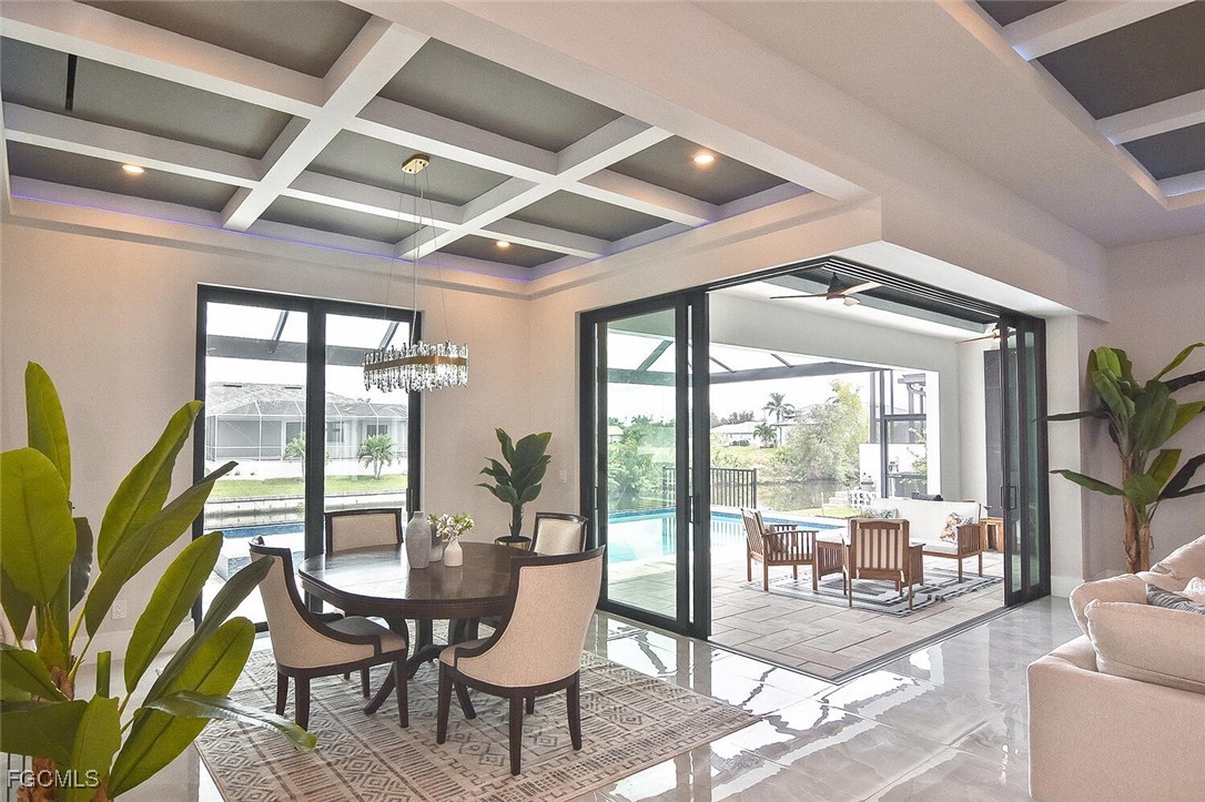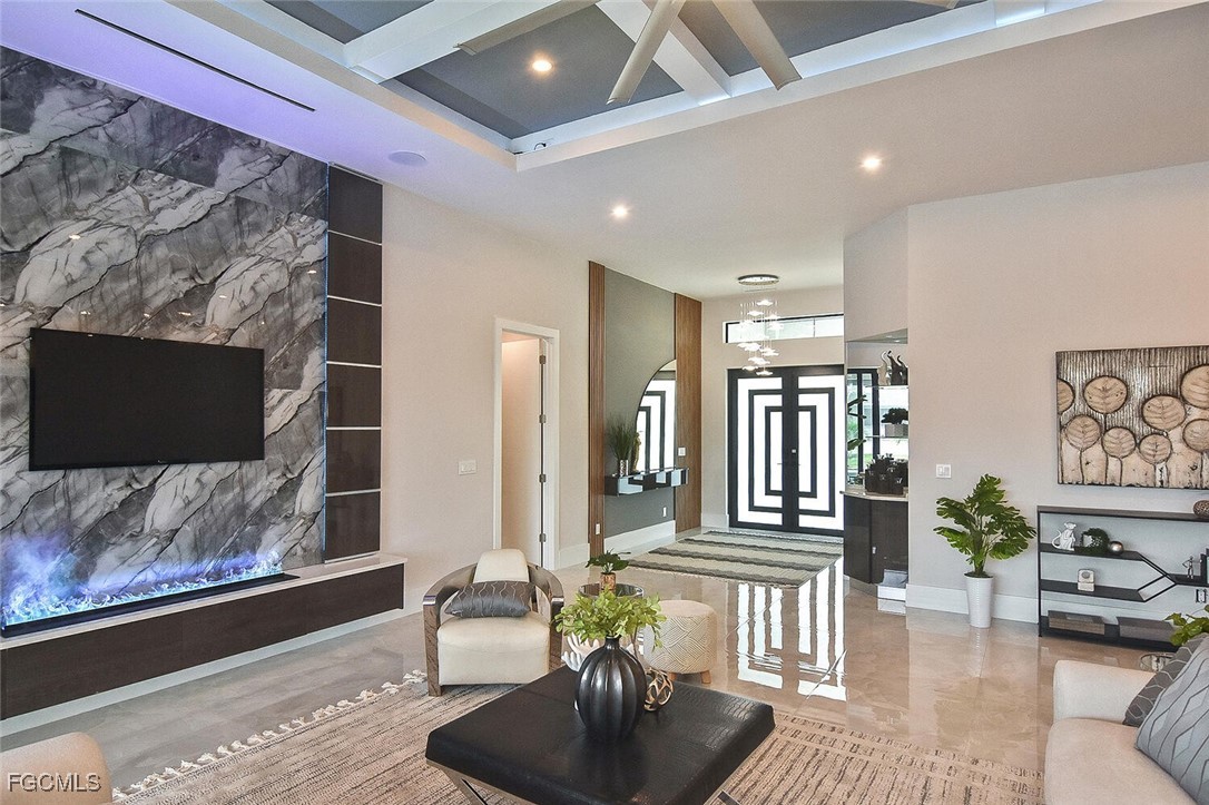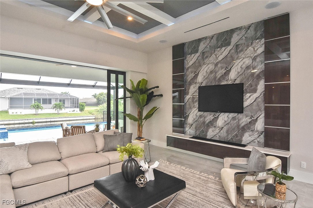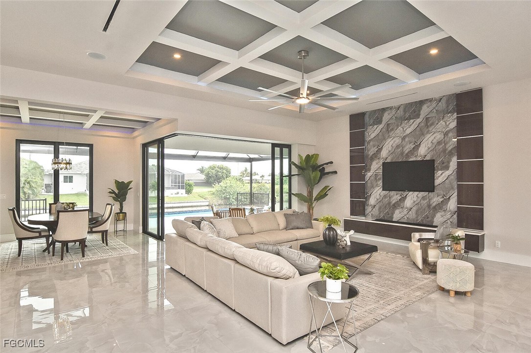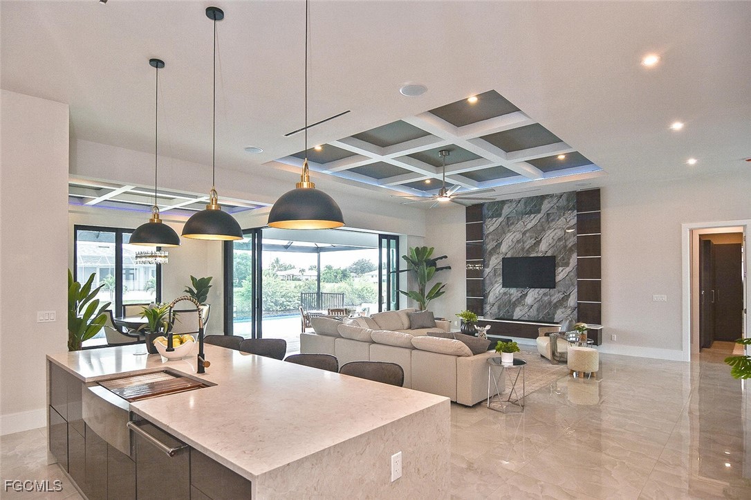 Welcome to this stunning NEW CONSTRUCTION GULF ACCESS HOME located at the most desirable Surfside Blvd. When you walk in you're being welcomed by a pristine porcelain floor and an open floor plan with a ballroom sieze living area. This home is the epitome of luxury and design, take a look at the very special water vapor fireplace and all high- end amazing light fixtures. There is an integrated blue tooth sound system with indoor and outdoor speakers. The office has this amazing luxury feel and warmth with very special wallpaper and tall impact windows. The well thought out designs of the XXL pool spa with infinite edge look will give you the waterfront Florida living style. We have a grey metal roof that will keep you and your family safe whatever happens. The outdoor kitchen has a black BBQ grill and black cabinets doors that will not rust as all the chrome ones do, the designer thought about everything to make this home stand out compared to anything else out there with all these high-end upgrades. The outdoor kitchen also has an outdoor refrigerator to keep your wine and beverages nice and cold right next to the pool. Take a look at the hidden walk-in kitchen pantry with a lot of extra storage space and a bar with another refrigerator. A luxury kitchen with top of the line appliances with Taj Mahal quartz countertop and waterfall edges it's a chefs dream kitchen. A separate wine cellar for 18 bottles. And ALL ASSESSMENTS are paid in full.