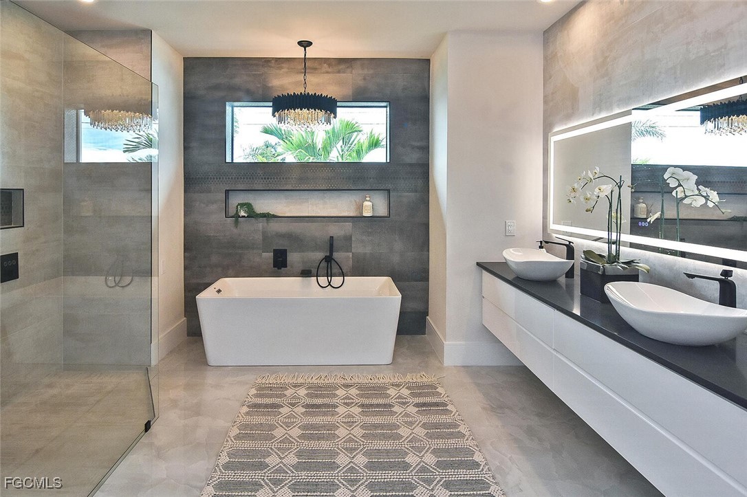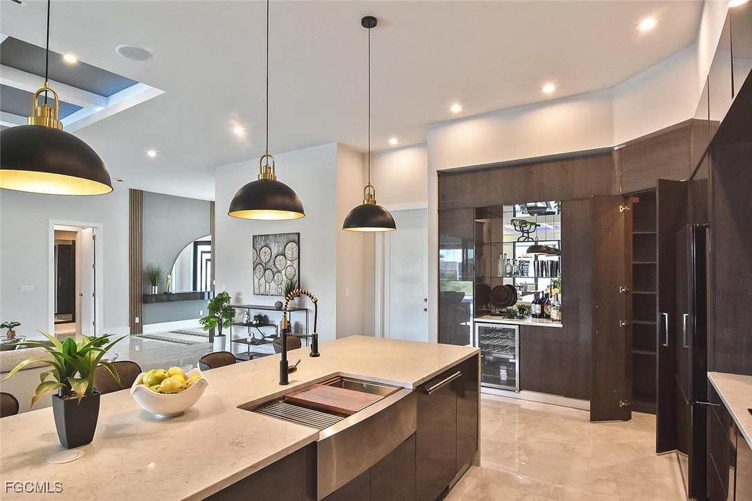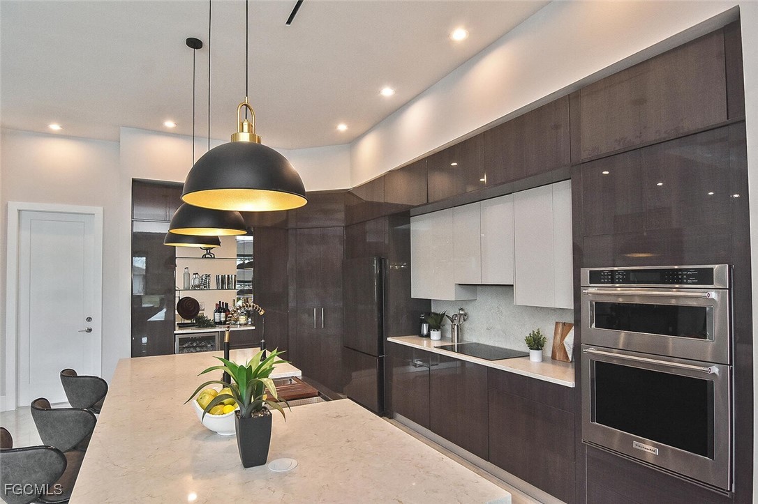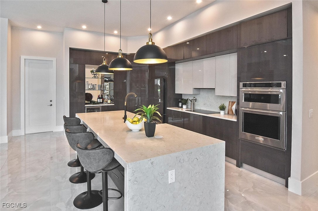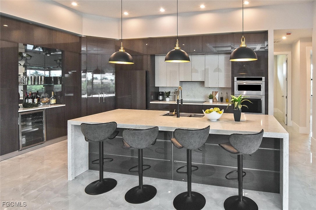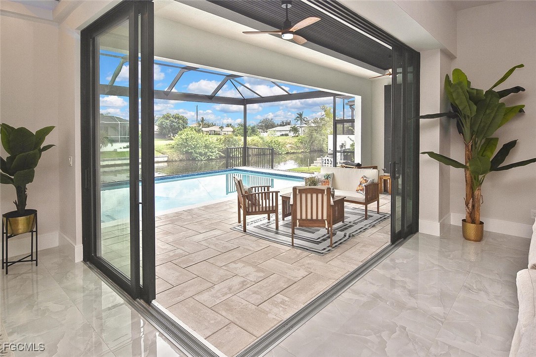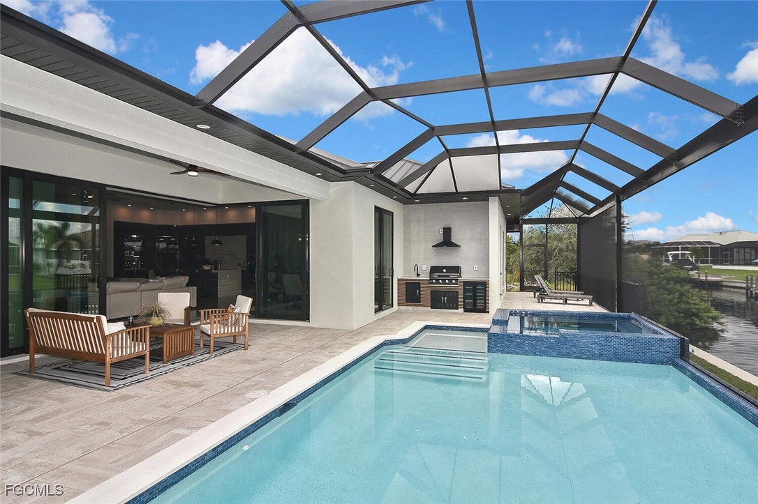 Welcome to this stunning NEW CONSTRUCTION GULF ACCESS HOME located at the most desirable Surfside Blvd. When you walk in you're being welcomed by a pristine porcelain floor and an open floor plan with a ballroom sieze living area. This home is the epitome of luxury and design, take a look at the very special water vapor fireplace and all high- end amazing light fixtures. There is an integrated blue tooth sound system with indoor and outdoor speakers. The office has this amazing luxury feel and warmth with very special wallpaper and tall impact windows. The well thought out designs of the XXL pool spa with infinite edge look will give you the waterfront Florida living style. We have a grey metal roof that will keep you and your family safe whatever happens. The outdoor kitchen has a black BBQ grill and black cabinets doors that will not rust as all the chrome ones do, the designer thought about everything to make this home stand out compared to anything else out there with all these high-end upgrades. The outdoor kitchen also has an outdoor refrigerator to keep your wine and beverages nice and cold right next to the pool. Take a look at the hidden walk-in kitchen pantry with a lot of extra storage space and a bar with another refrigerator. A luxury kitchen with top of the line appliances with Taj Mahal quartz countertop and waterfall edges it's a chefs dream kitchen. A separate wine cellar for 18 bottles. And ALL ASSESSMENTS are paid in full.