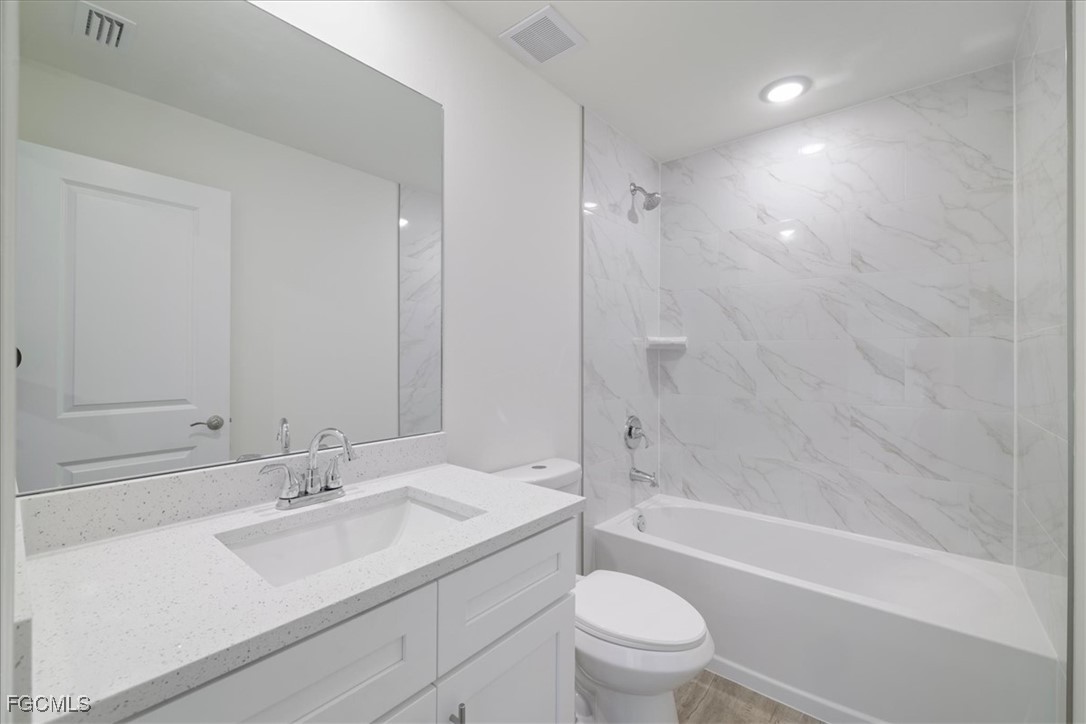 WATERFRONT PARADISE WITH DUAL PRIMARY SUITES & HEATED POOL! Welcome to the Paradise Cove Plan, a stunning waterfront retreat designed for luxurious living and effortless entertaining! Nestled on a scenic freshwater canal, this expansive 4-bedroom, 3-bath home offers serene water views and the perfect blend of comfort and elegance. Tile Throughout! Step inside to a bright and airy great room, where soaring ceilings and a slider invite natural light and seamless indoor-outdoor living. The gourmet kitchen is a chef’s dream, featuring soft-close, all-wood cabinetry, quartz countertops, stainless steel appliances, and an oversized walk-in pantry—perfect for hosting and everyday convenience. This home boasts two luxurious primary suites! The main suite is a private retreat, large enough for a king-sized bed and a cozy seating area. Enjoy direct lanai and pool access, plus a spa-inspired ensuite with a freestanding soaking tub and walk-in shower. The second primary suite includes its own full bath—ideal for guests or multi-generational living—and also serves as a convenient pool bath. Outside, take in the breathtaking canal views from lanai, or enjoy year-round swimming in the heated pool. Whether you love kayaking, fishing, or simply unwinding by the water, this home delivers the ultimate Florida lifestyle! Built by a trusted local builder, this home offers exceptional value with impact windows for added security and lower insurance costs, no flood zone for peace of mind and savings, and a 10-year structural warranty for lasting confidence. This is The Paradise Cove Plan