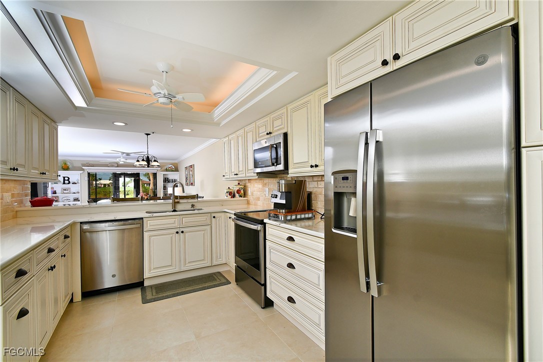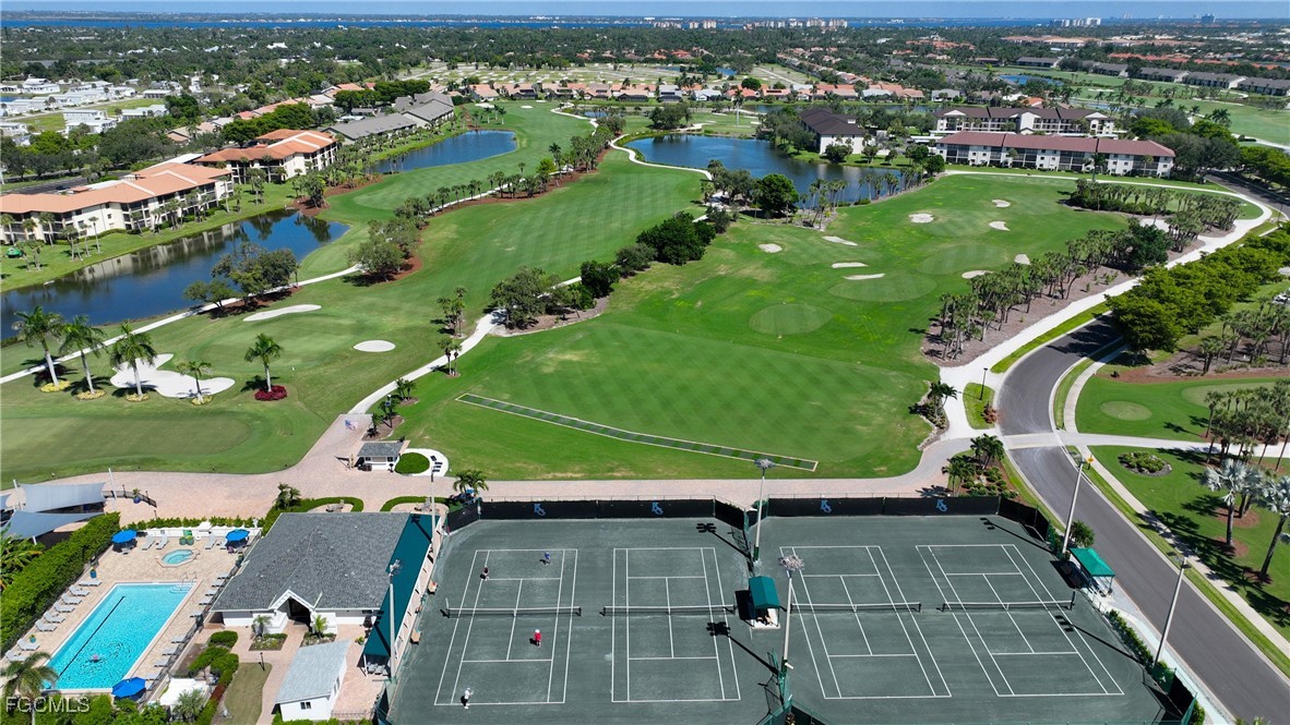 Welcone to this beautifully appointed and stylishly furnished condo in the sought after golf and tennis community of Kelly Greens. With a private driveway leading into your one car garage, this residence offers convenience and comfort from the moment you arrive. Tastefully renovated, this home boasts too many upgrades to mention them all, but include: hurricane impact doors and windows, remote controlled living room window treatment/shade, hardwood floors and tile throughout, crown molding, built in cabinets in living room, custom closets in master and guest bedrooms as well as laundry room, and much more. The well designed kitchen features upgraded cabinetry, appliances, countertops and backsplash. Every detail is carefully crafted, blending luxury with timeless comfort. Both front and back lanais are enclosed, allowing a seamless traffic flow, ideal for both everyday living as well as entertaining. Spectacular water and golf views from the back lanai set the stage for unforgettable Florida sunsets. Kelly Greens is a bundled golf community with a Gordon Lewis designed, meticulously maintained course challenging and fun for all levels of golfers. An active tennis and pickleball community, indoor and outdoor dining, new fitness center and clubhouse, and numerous activities are featured as well. Truly a slice of paradise! Arrange an in person or video showing today!