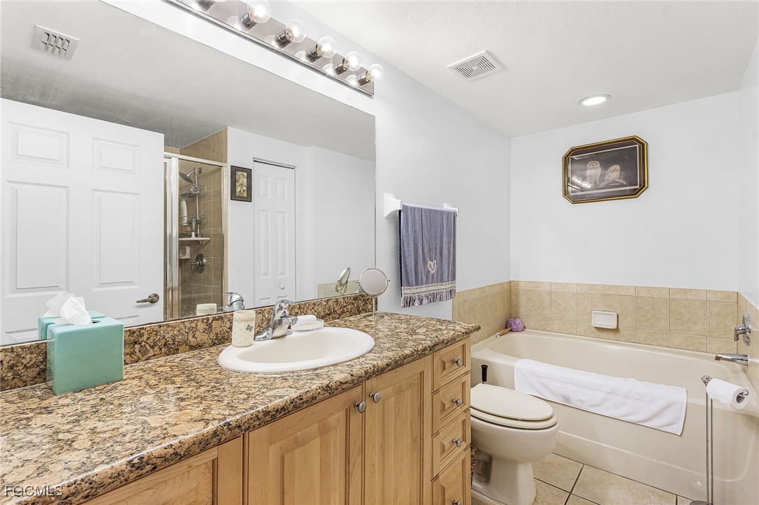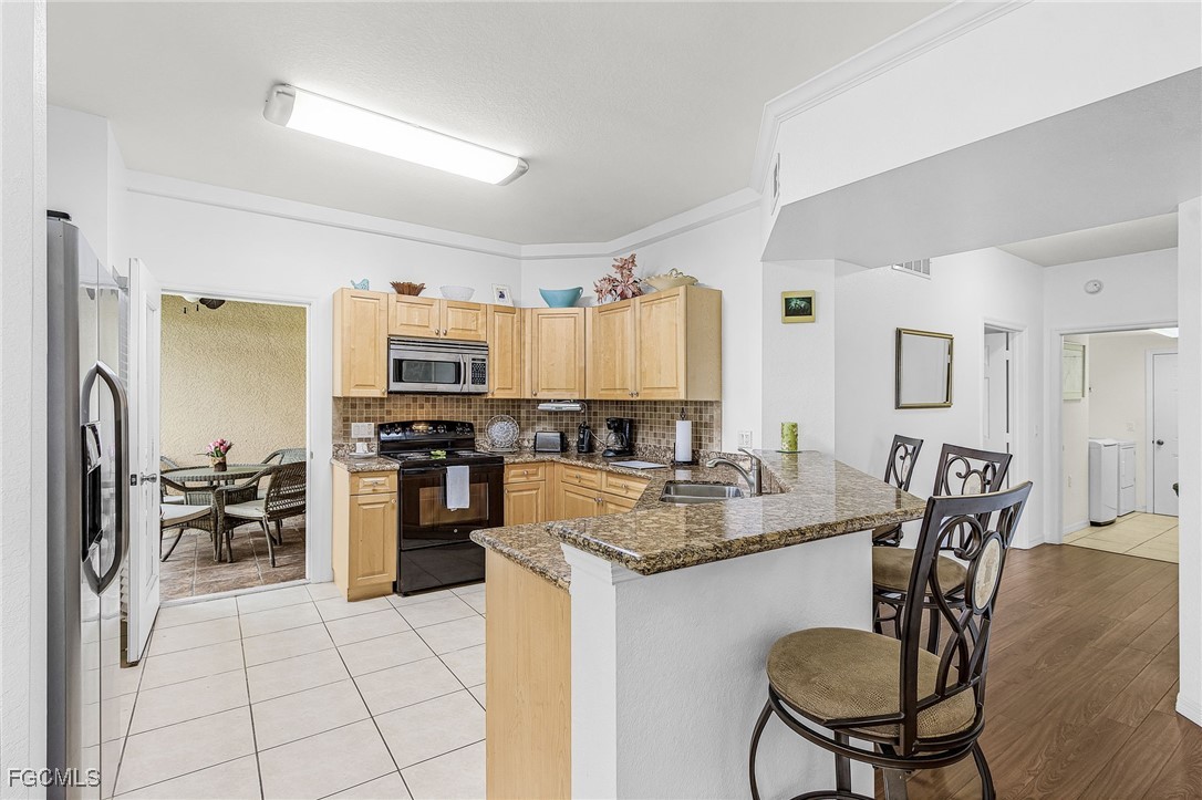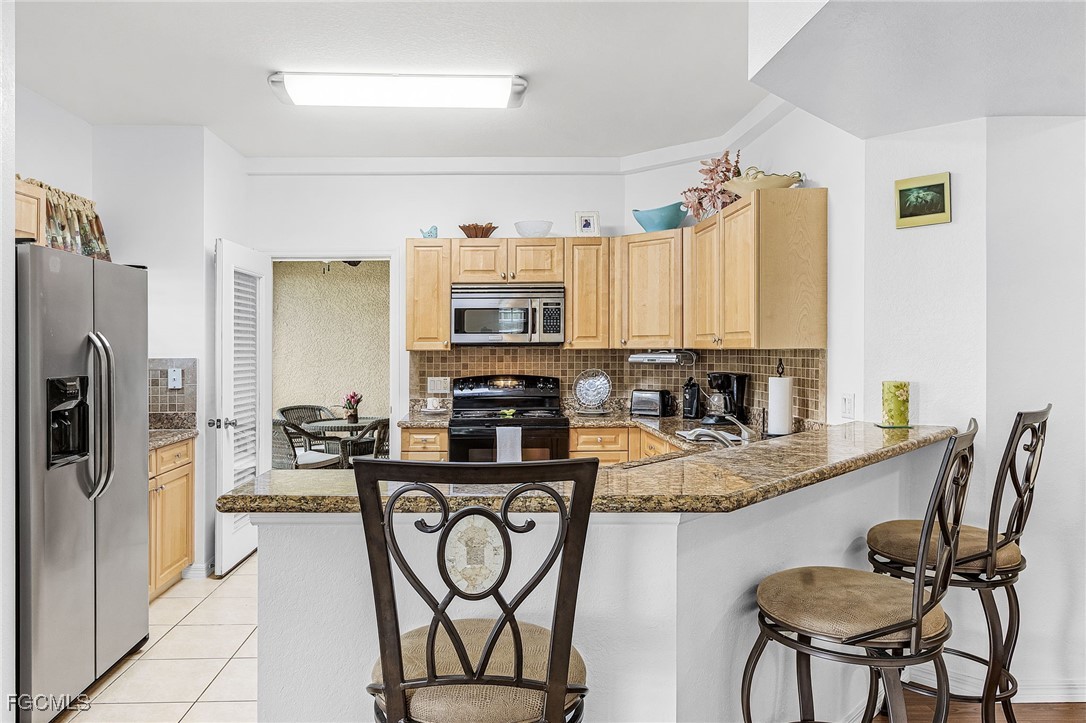 The kitchen features granite countertops, plenty of storage, and a dining bar, flowing seamlessly into the living area. Just off the kitchen, a private lanai overlooks the sparkling lake, perfect for enjoying your morning coffee or evening cocktails while taking in the view. A rare find, this condo also includes a two-car attached garage, adding convenience and value.